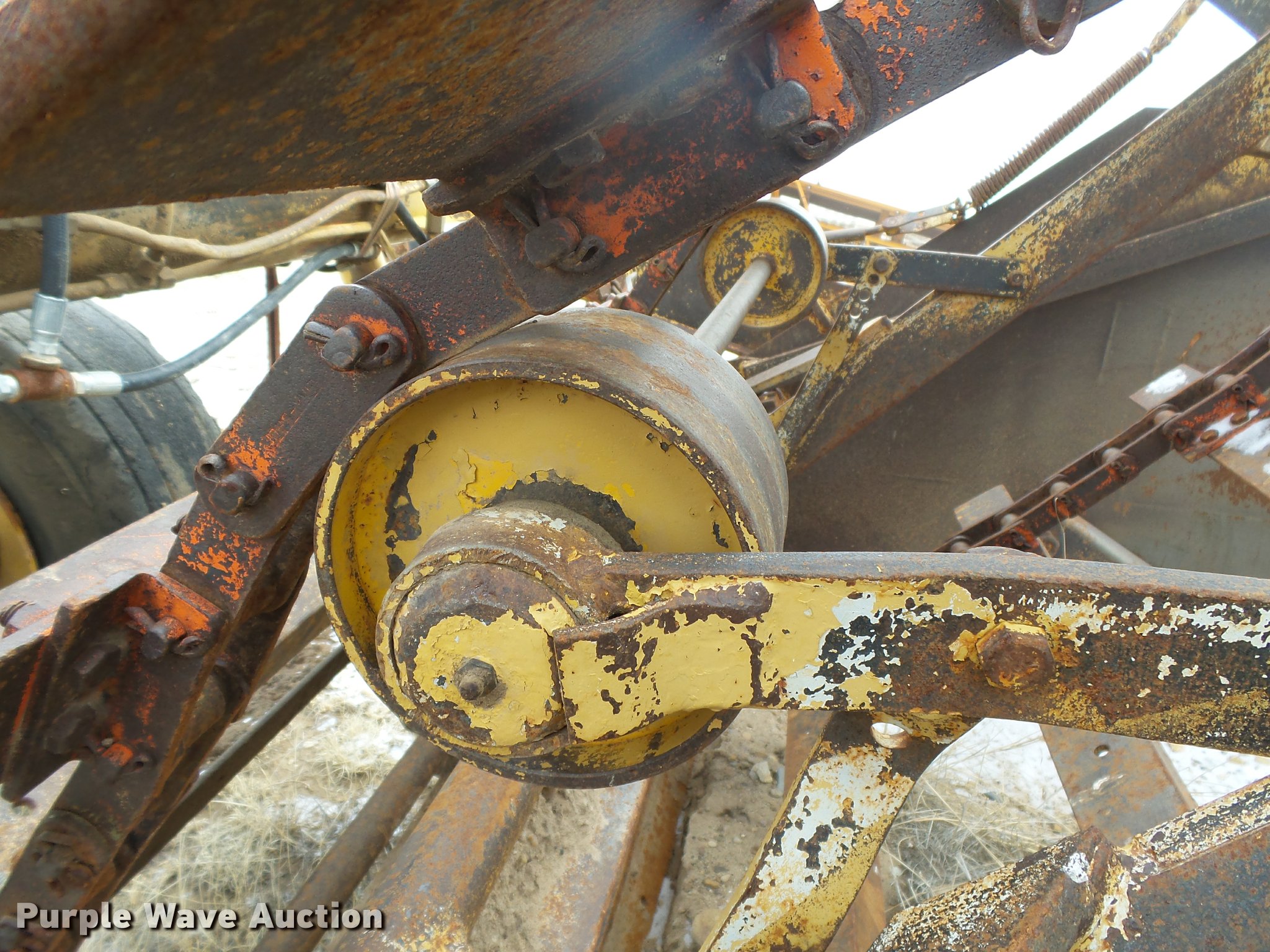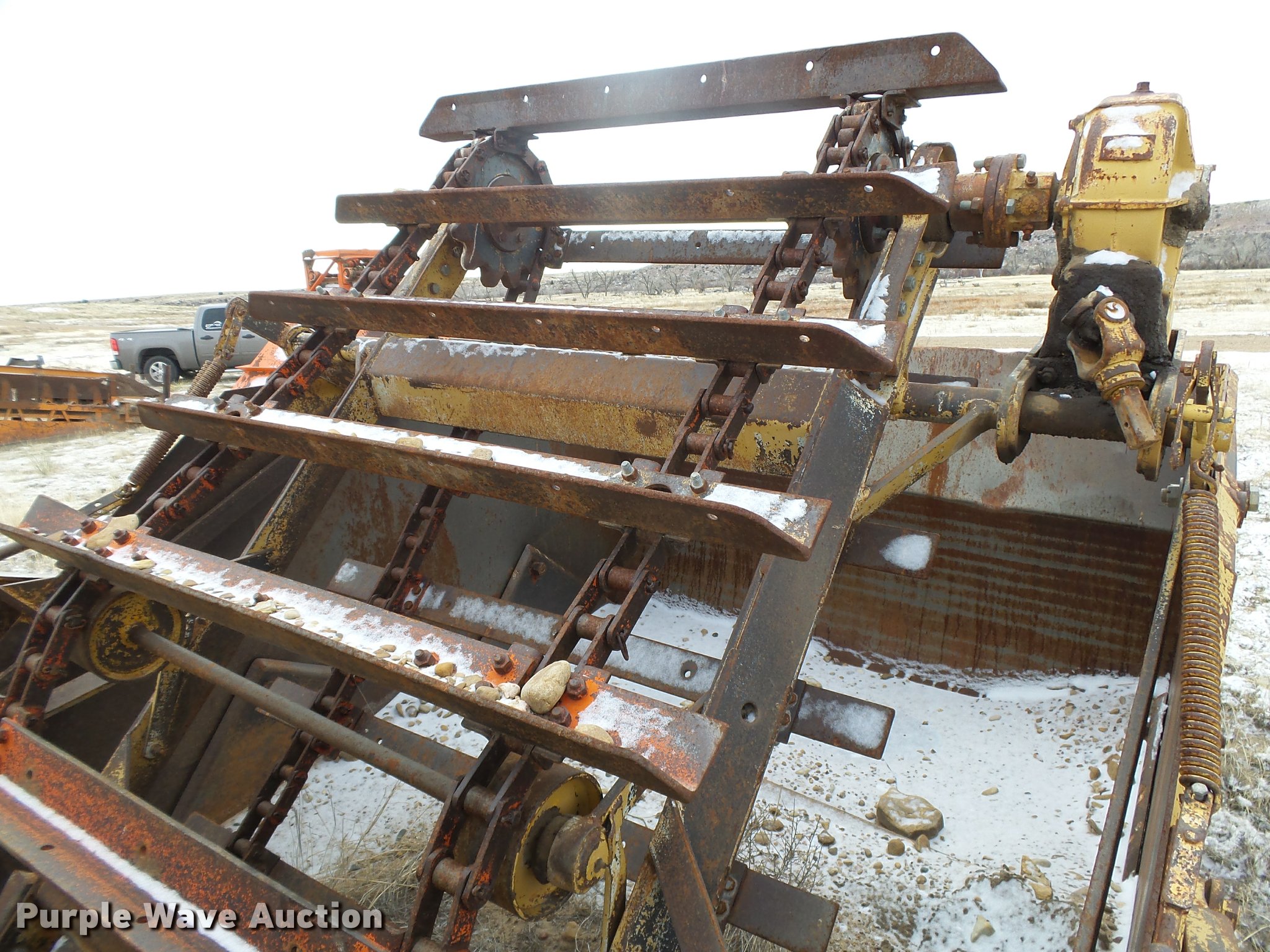 Johnson elevating scraper. 84"W bowl, Hydraulic lift, Hydraulic pan, 1 3/4" 1000 PTO, Pin hitch, 46 x 16 tires. Black Mesa Sand LLC.. Boise City, OK 73933
