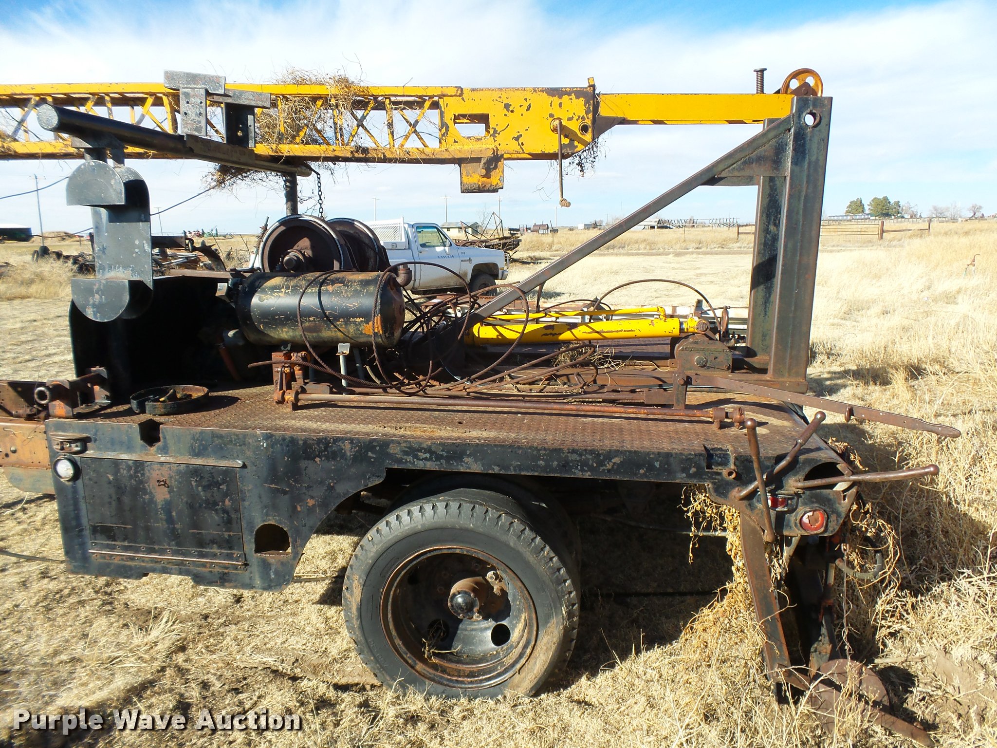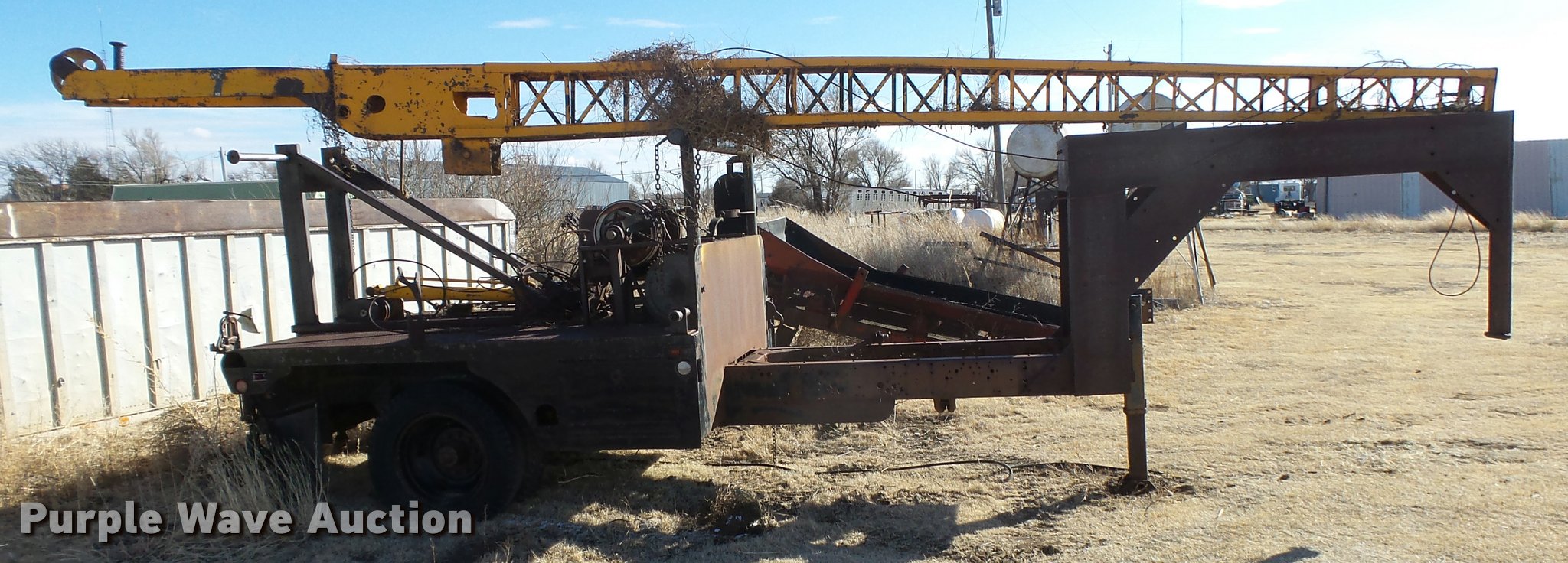 Purple Wave is selling a used Trailer Other in Oklahoma. This item is a Windmill service trailer with the following: Dual winches, Tulsa, Lovejoy PTO driven, (3) hydraulic hand controls, 25' boom, Unknown operating condition, Hydraulic outriggers, Under bed toolboxes, Single leg landing gear, Gooseneck hitch, Single axle, Spring suspension, Steel wheels, 7.50-20 tires, Previously used to pull irrigation wells