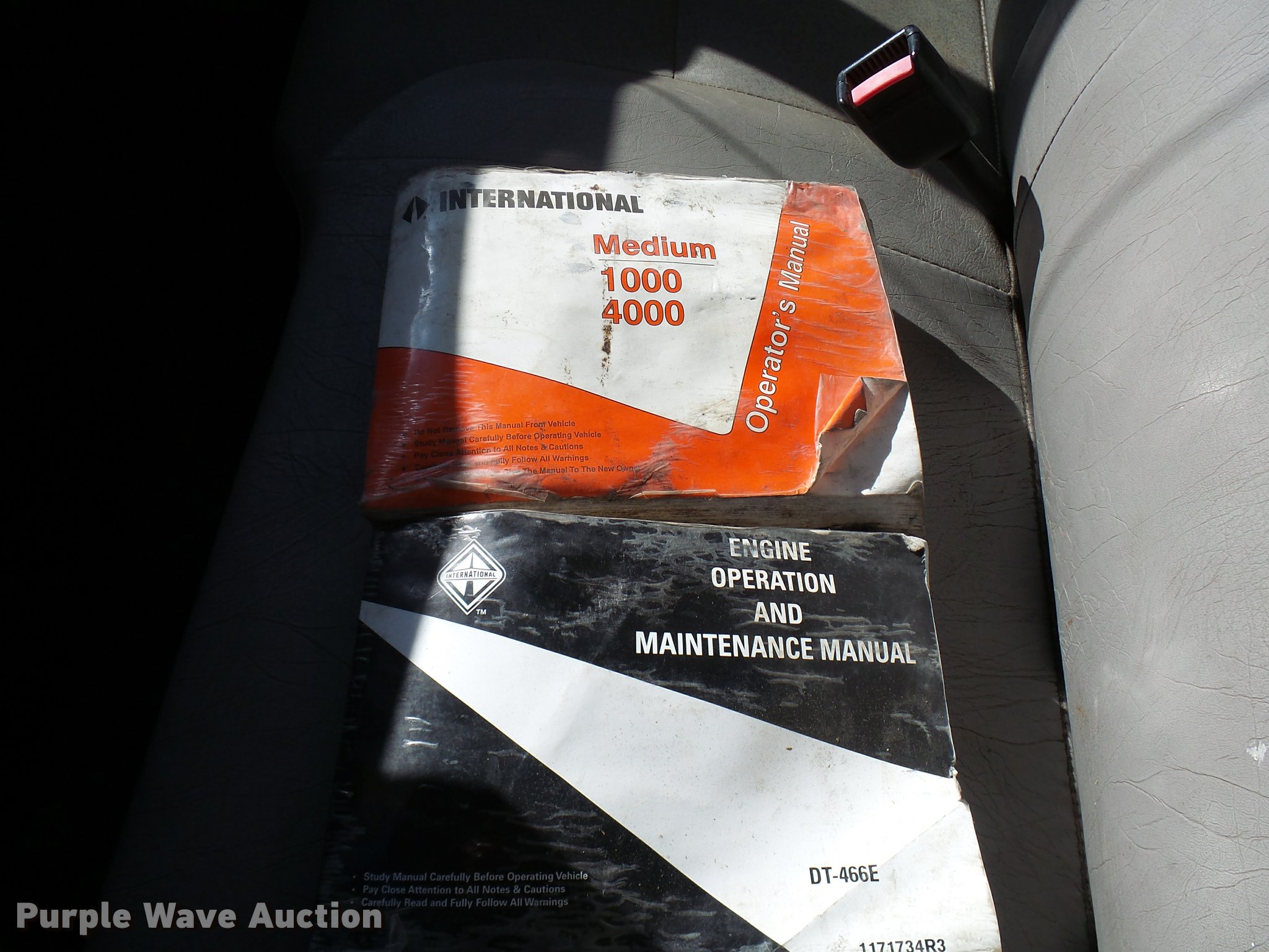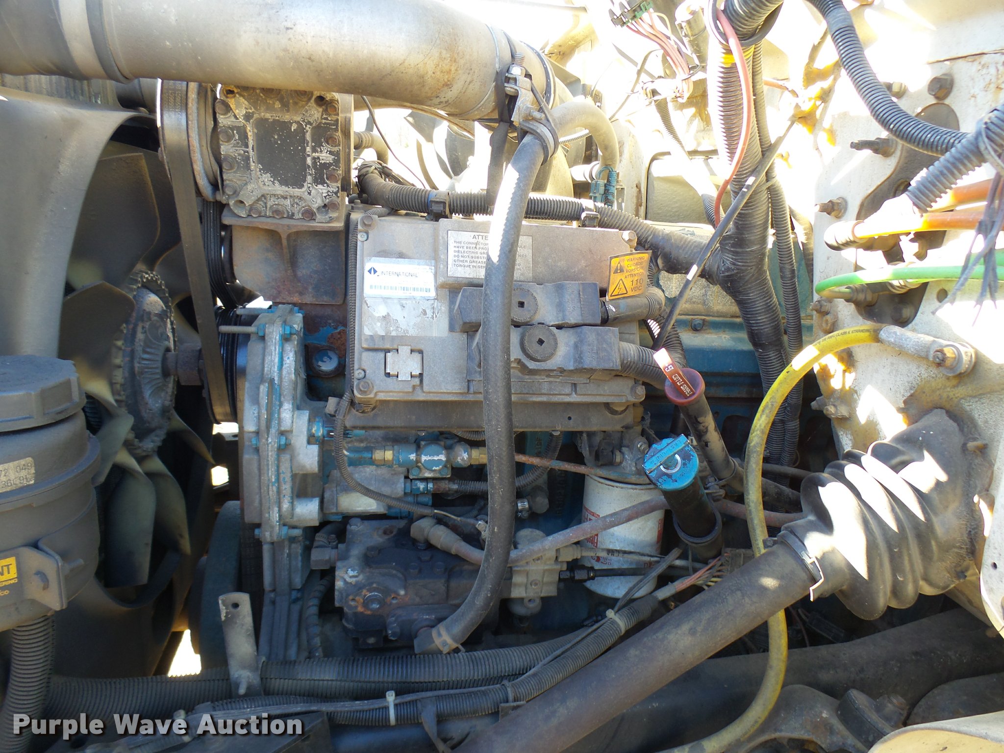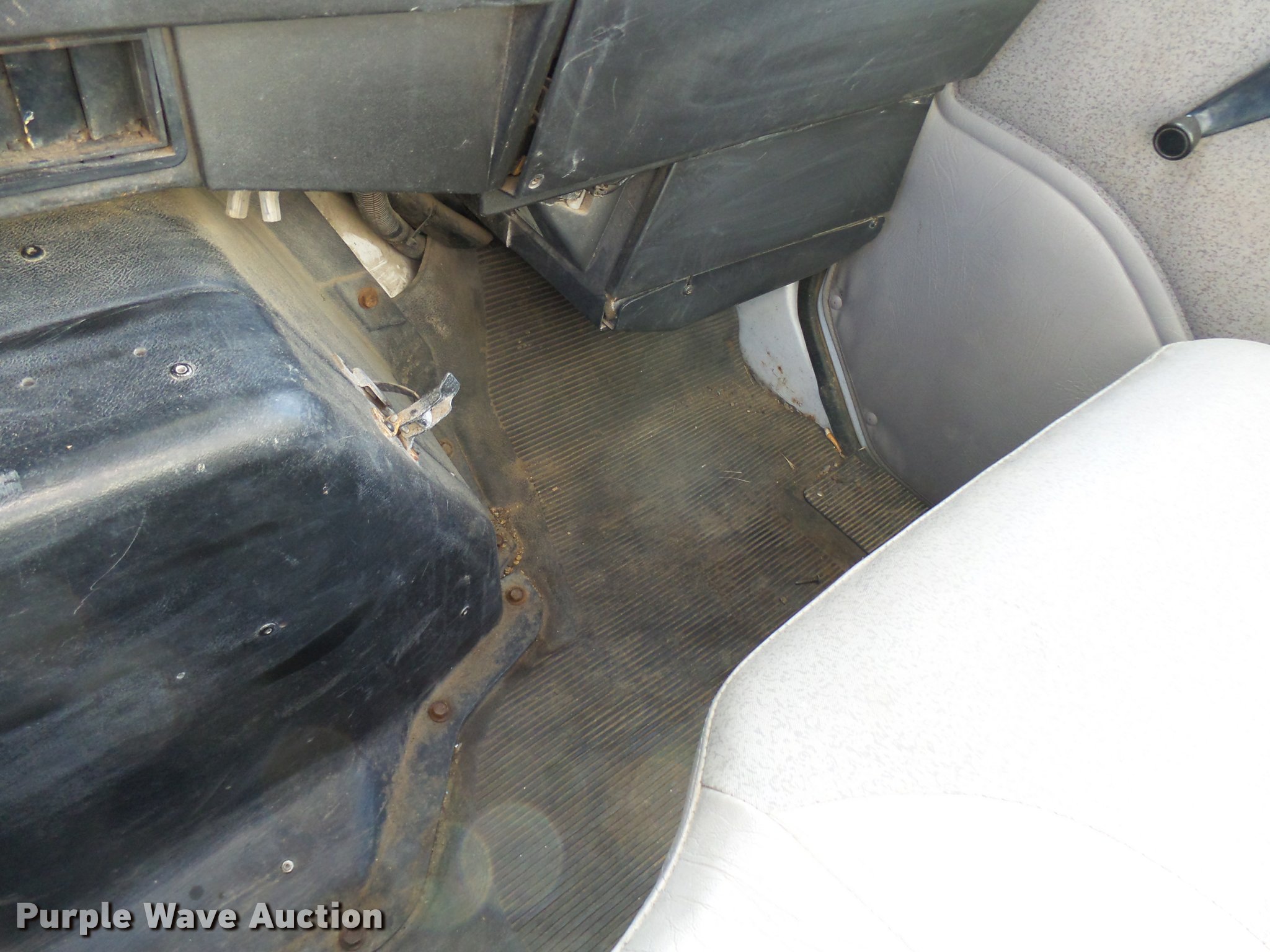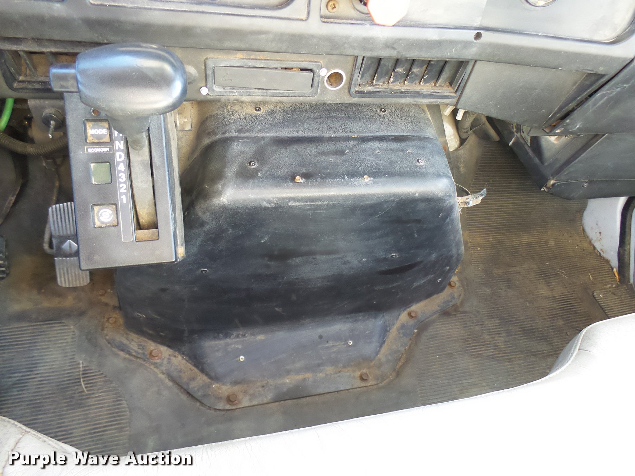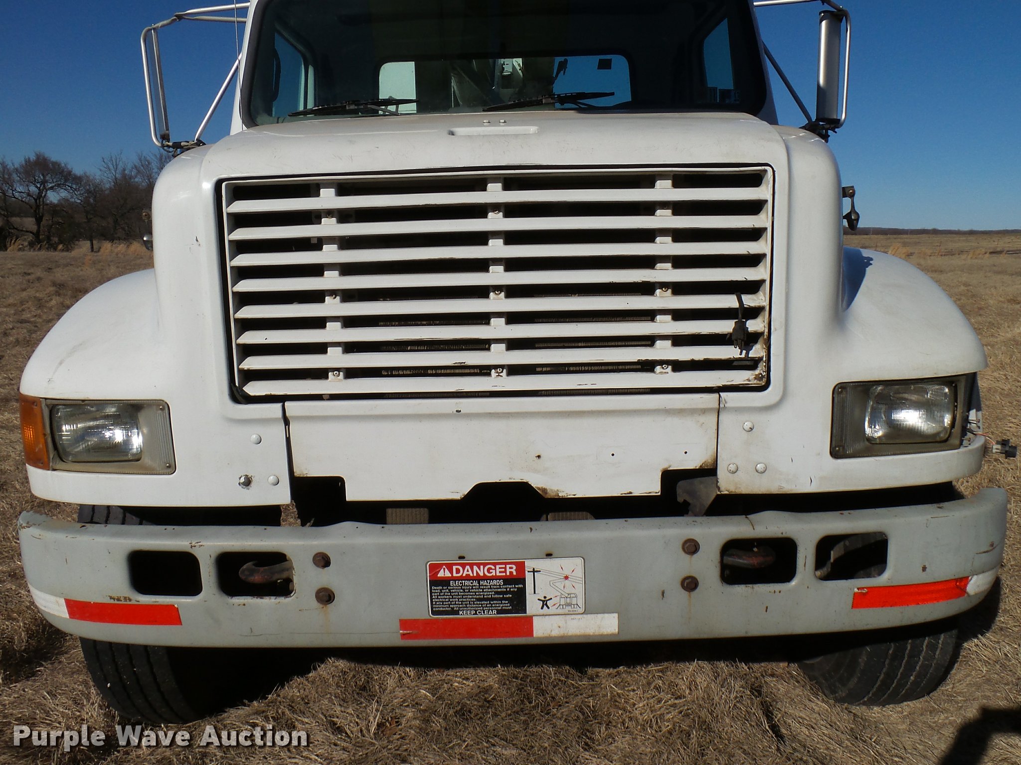 Purple Wave is selling a used Digger Derrick Truck in Oklahoma. This item is a 2001 International 4900 bucket truck material handler with the following: 61,134 miles on odometer, 6,715 hours on meter, International DT466E 7.6L L6 turbo diesel engine, Allison automatic transmission, Single axle, AC and heat, AM/FM, Suspension seat, Auxiliary controls, Front tow hooks, Beacon light, PTO, Reading 2AT174ADW service bed, 16'L, Catwalk, Air outlet, Serial B430049, 2000 Versalift V0355MH1 digger derrick, 50' boom length, 600 lbs max lift capacity, Two man basket, 55' max lift height, Platform boom controls, Boom rotation, Material handler, Articulating insulated boom, (4) outriggers, Serial DB0020, Dual fuel tanks, Spring suspension, Air brakes, 188" wheelbase, Goodyear 11R22.5 tires, GVWR 35,000 lbs, Left front headlight missing, Unit# 213