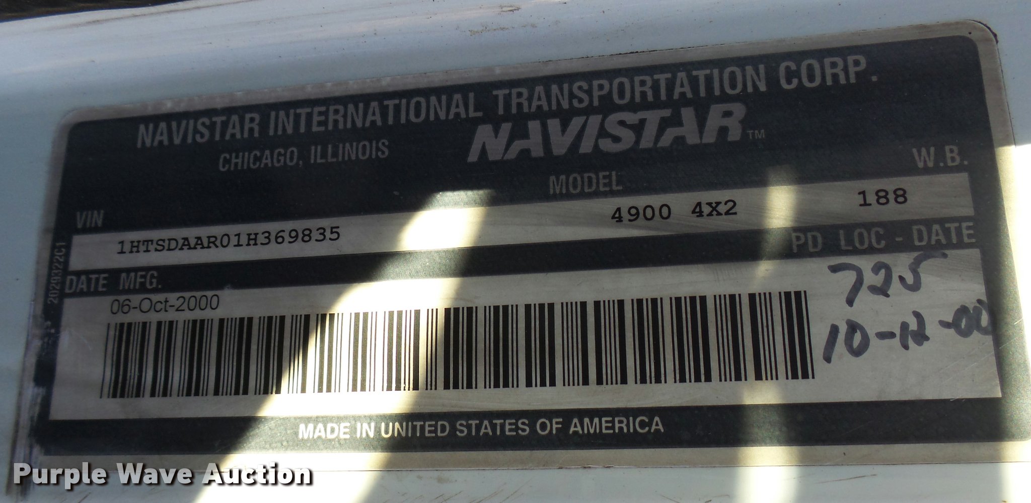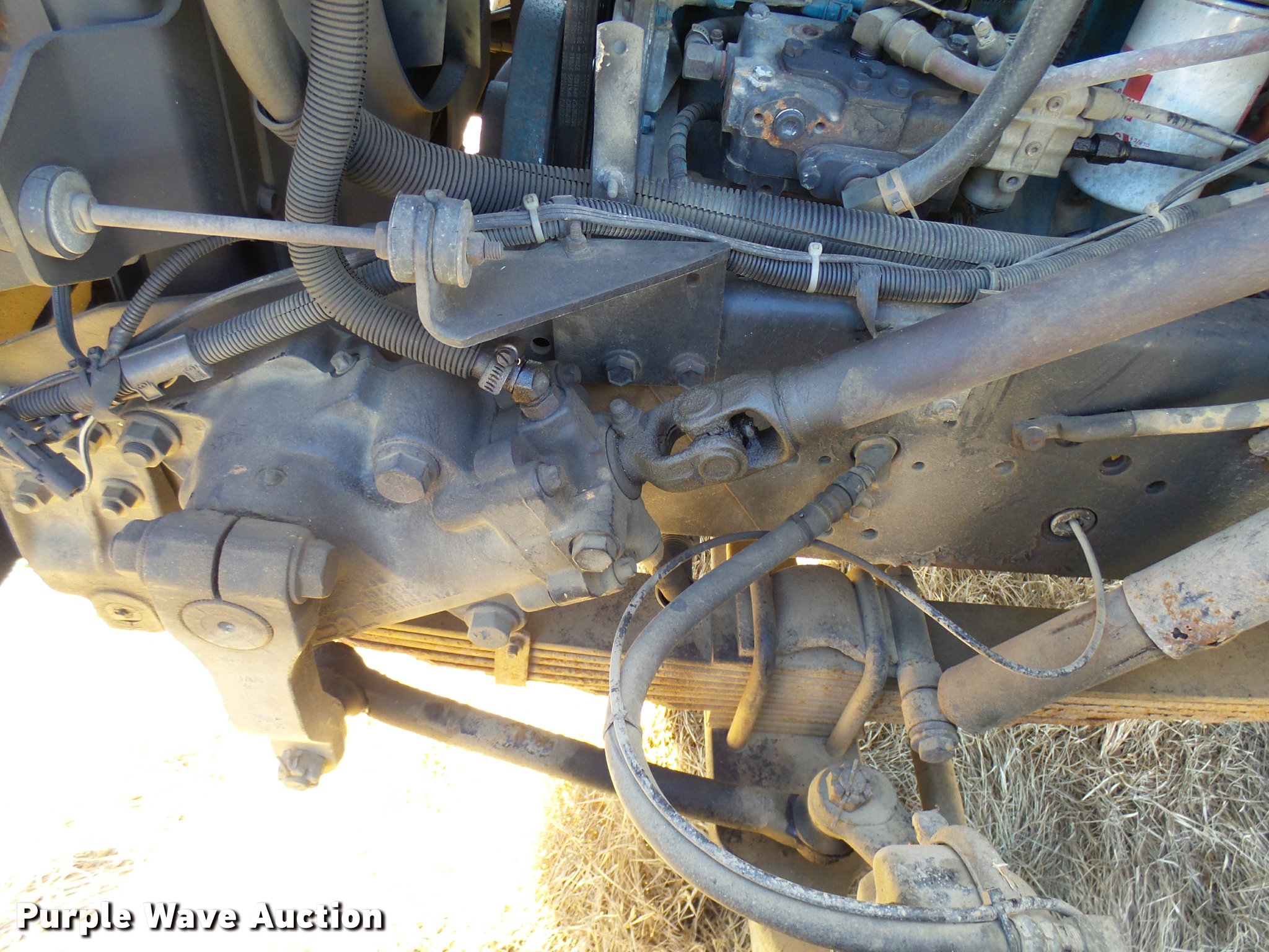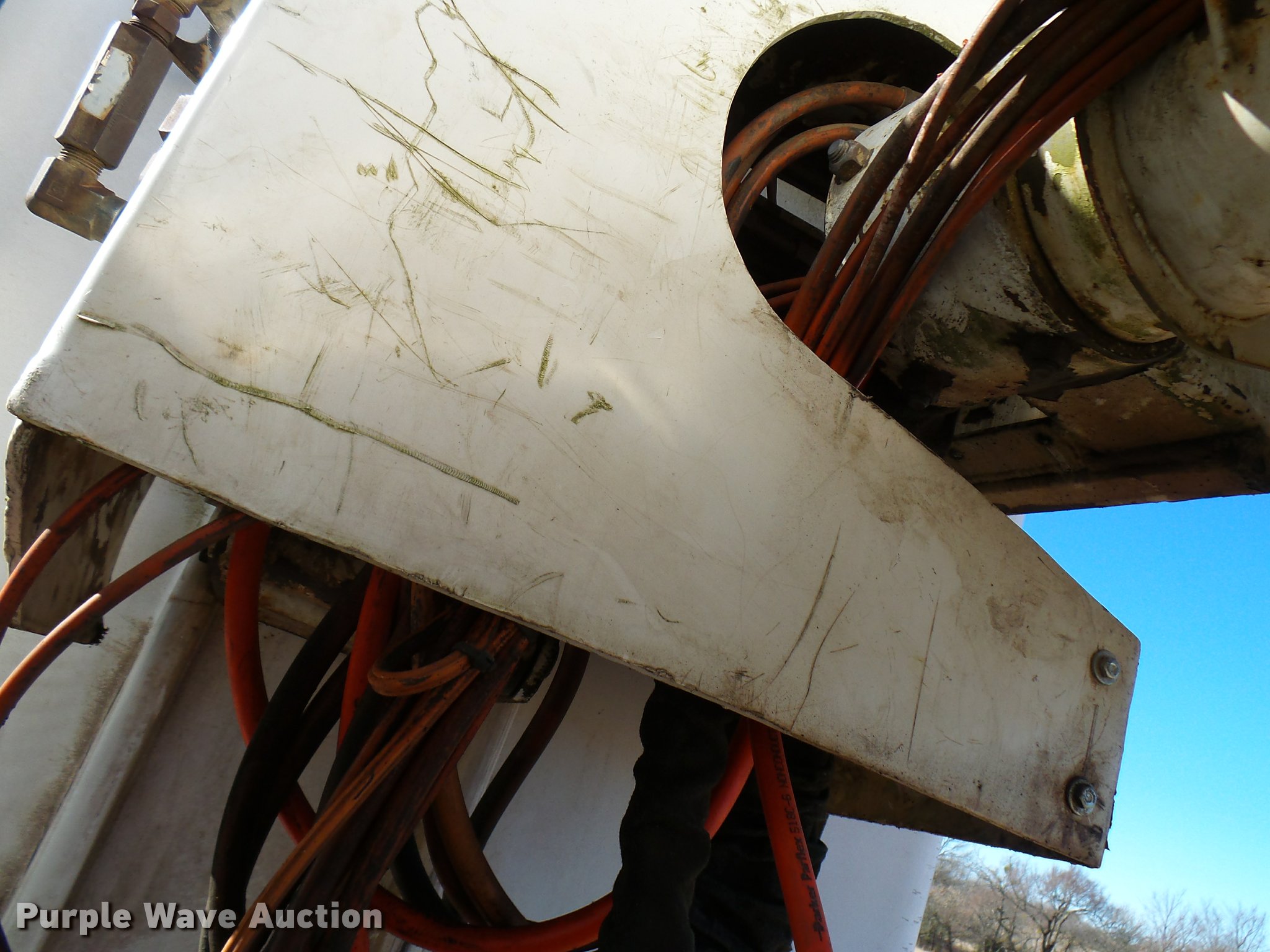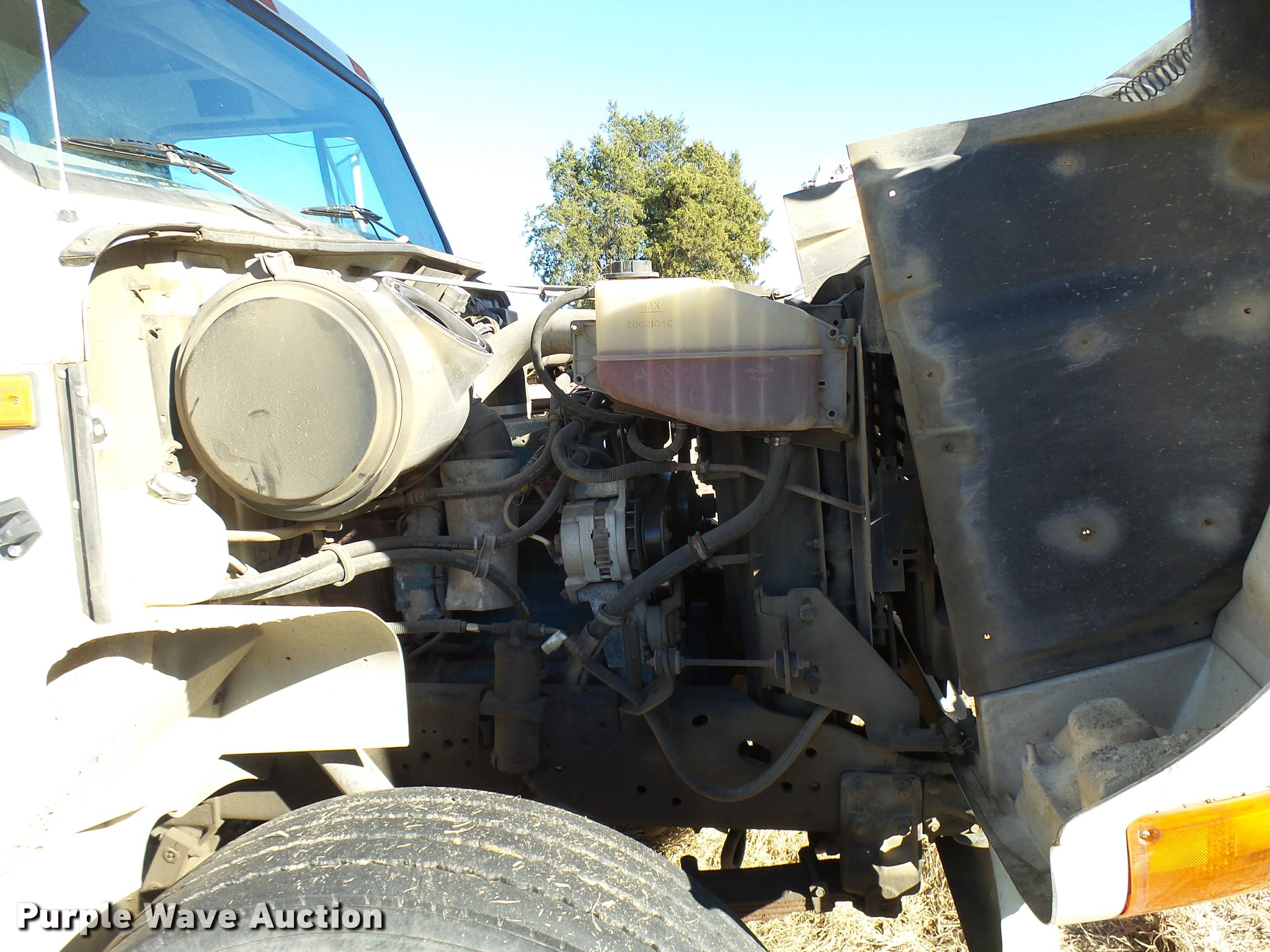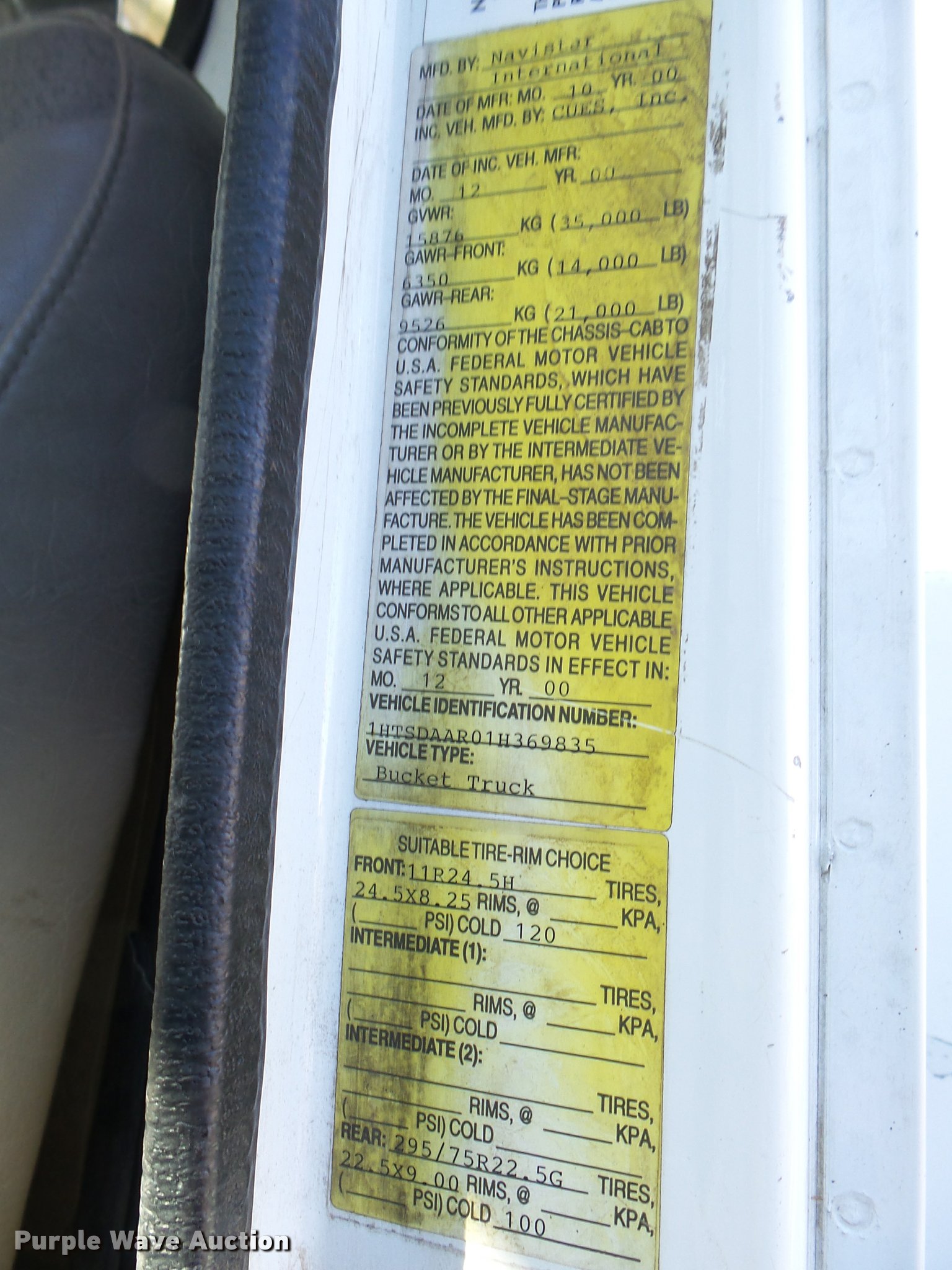 Purple Wave is selling a used Digger Derrick Truck in Oklahoma. This item is a 2001 International 4900 bucket truck material handler with the following: 61,134 miles on odometer, 6,715 hours on meter, International DT466E 7.6L L6 turbo diesel engine, Allison automatic transmission, Single axle, AC and heat, AM/FM, Suspension seat, Auxiliary controls, Front tow hooks, Beacon light, PTO, Reading 2AT174ADW service bed, 16'L, Catwalk, Air outlet, Serial B430049, 2000 Versalift V0355MH1 digger derrick, 50' boom length, 600 lbs max lift capacity, Two man basket, 55' max lift height, Platform boom controls, Boom rotation, Material handler, Articulating insulated boom, (4) outriggers, Serial DB0020, Dual fuel tanks, Spring suspension, Air brakes, 188" wheelbase, Goodyear 11R22.5 tires, GVWR 35,000 lbs, Left front headlight missing, Unit# 213