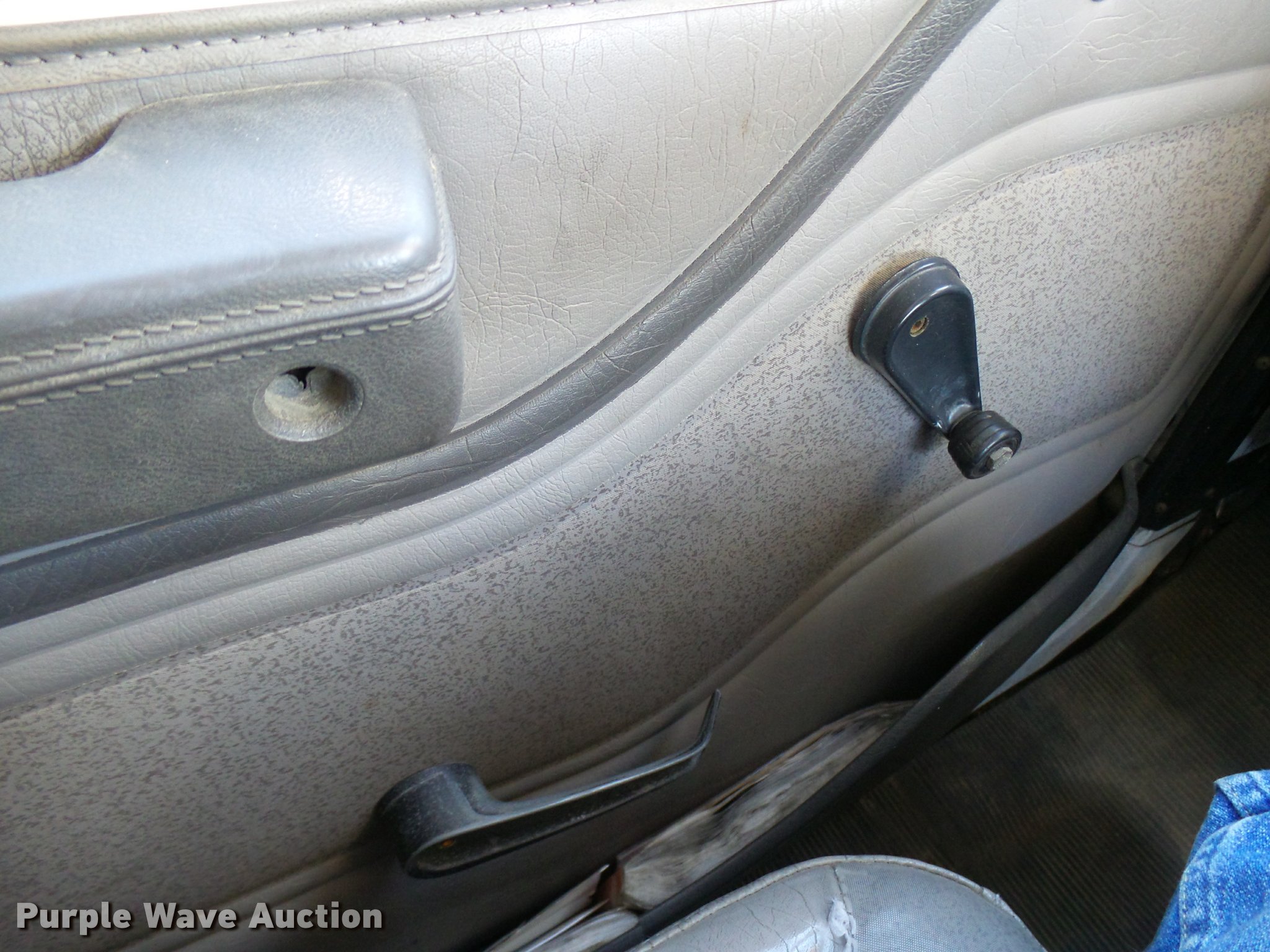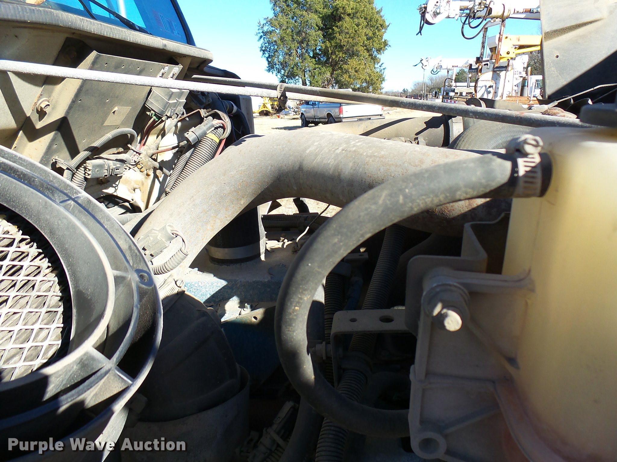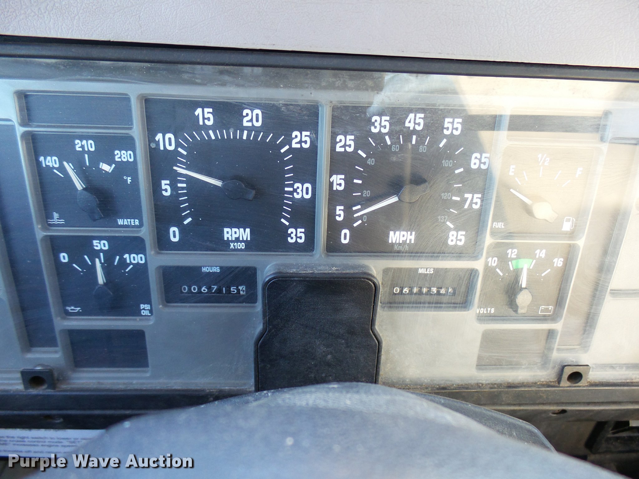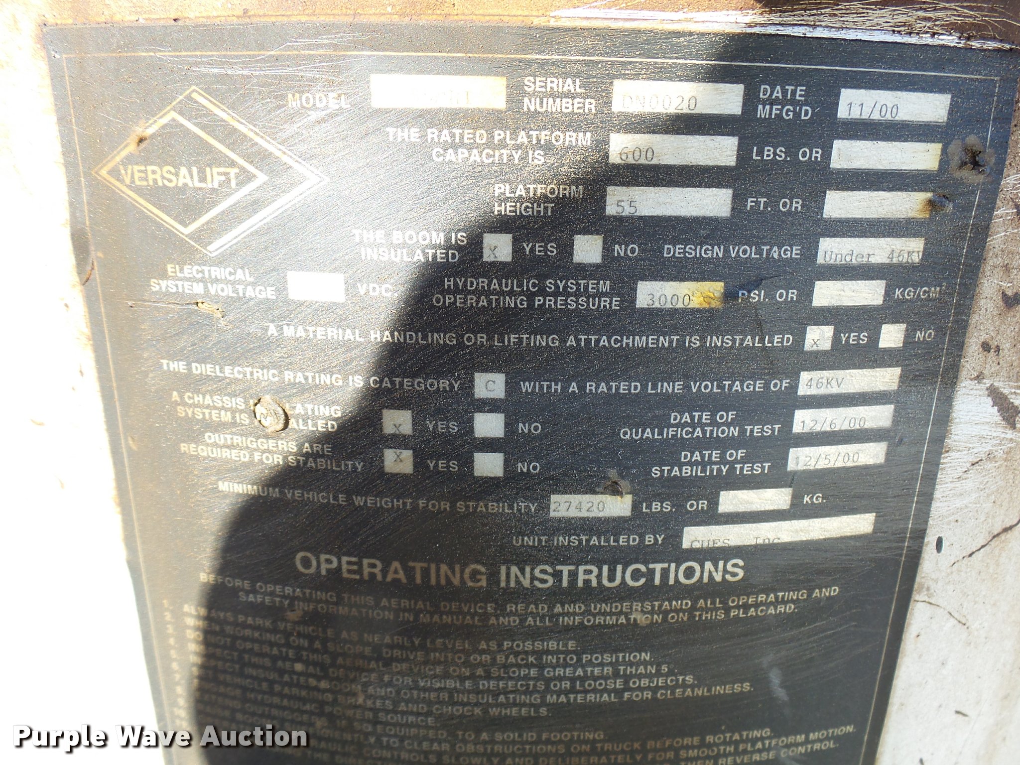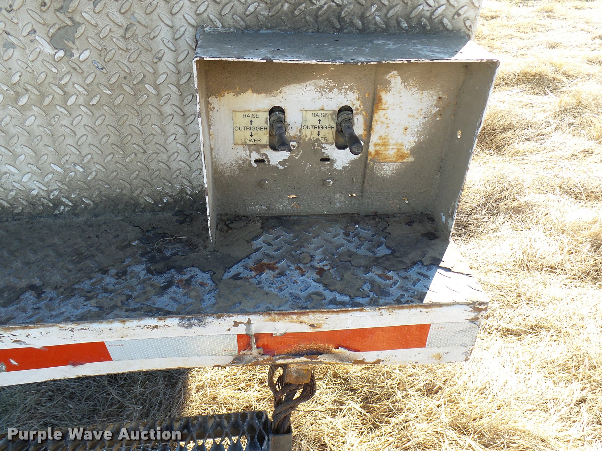 Purple Wave is selling a used Digger Derrick Truck in Oklahoma. This item is a 2001 International 4900 bucket truck material handler with the following: 61,134 miles on odometer, 6,715 hours on meter, International DT466E 7.6L L6 turbo diesel engine, Allison automatic transmission, Single axle, AC and heat, AM/FM, Suspension seat, Auxiliary controls, Front tow hooks, Beacon light, PTO, Reading 2AT174ADW service bed, 16'L, Catwalk, Air outlet, Serial B430049, 2000 Versalift V0355MH1 digger derrick, 50' boom length, 600 lbs max lift capacity, Two man basket, 55' max lift height, Platform boom controls, Boom rotation, Material handler, Articulating insulated boom, (4) outriggers, Serial DB0020, Dual fuel tanks, Spring suspension, Air brakes, 188" wheelbase, Goodyear 11R22.5 tires, GVWR 35,000 lbs, Left front headlight missing, Unit# 213