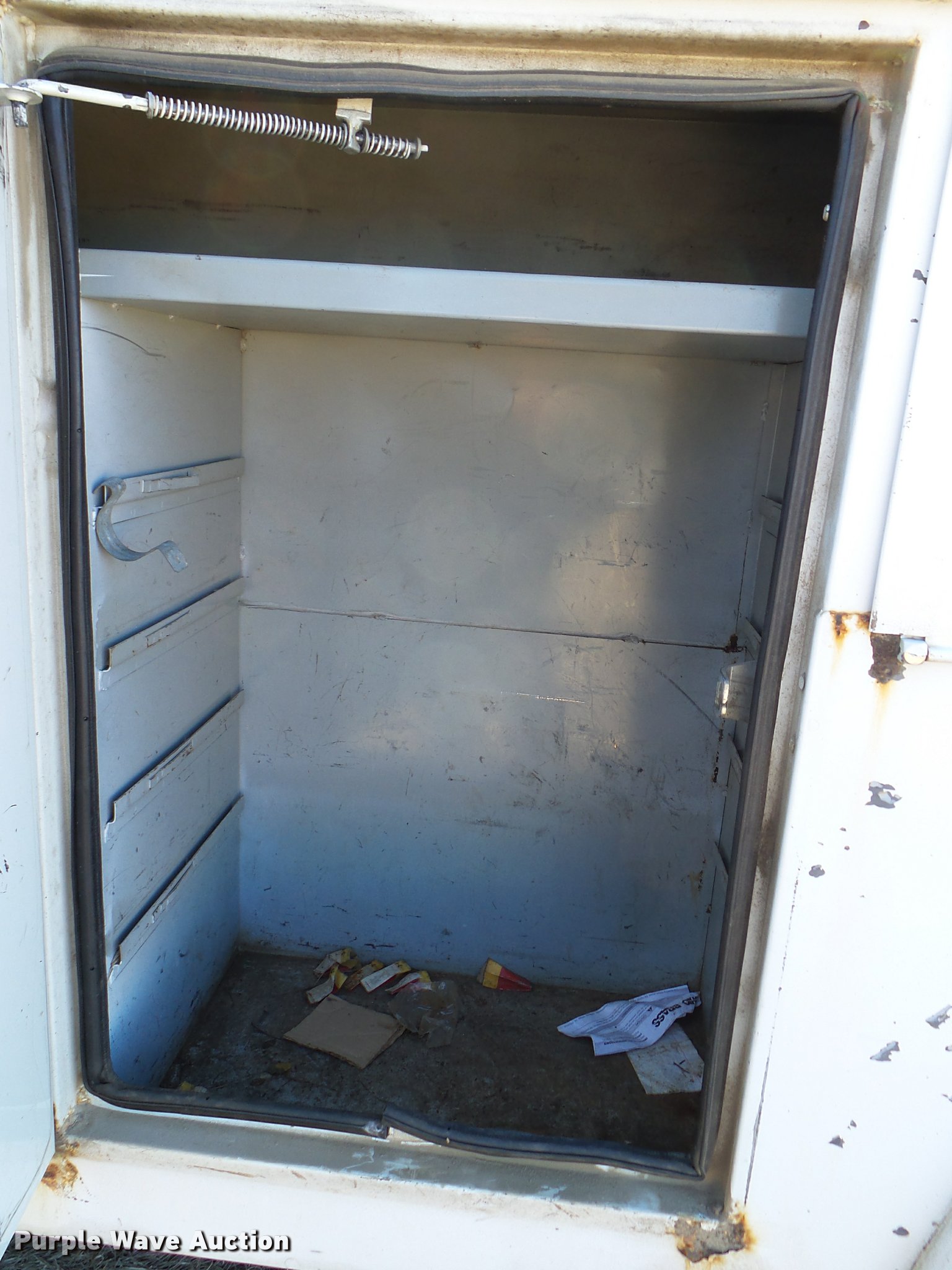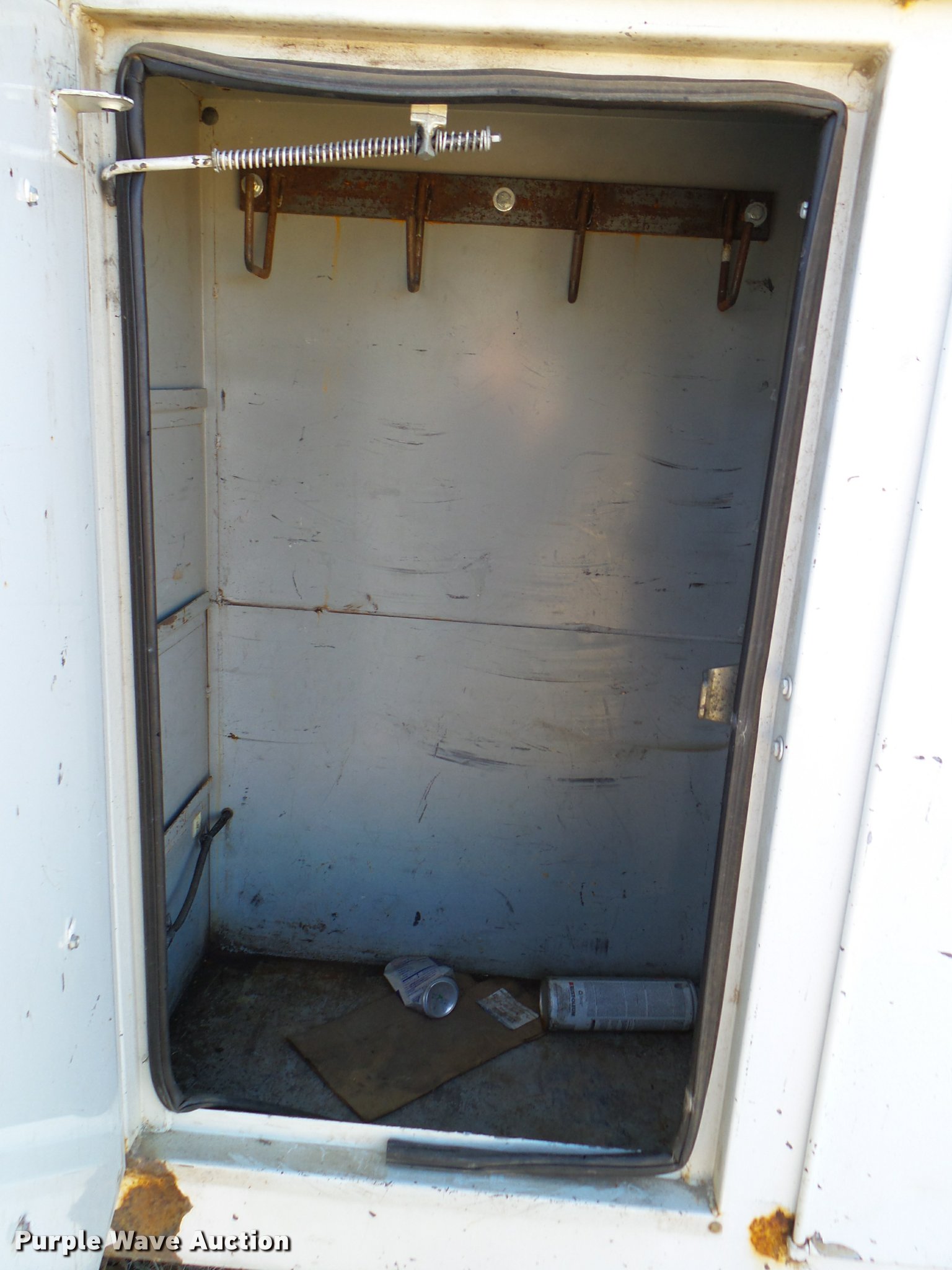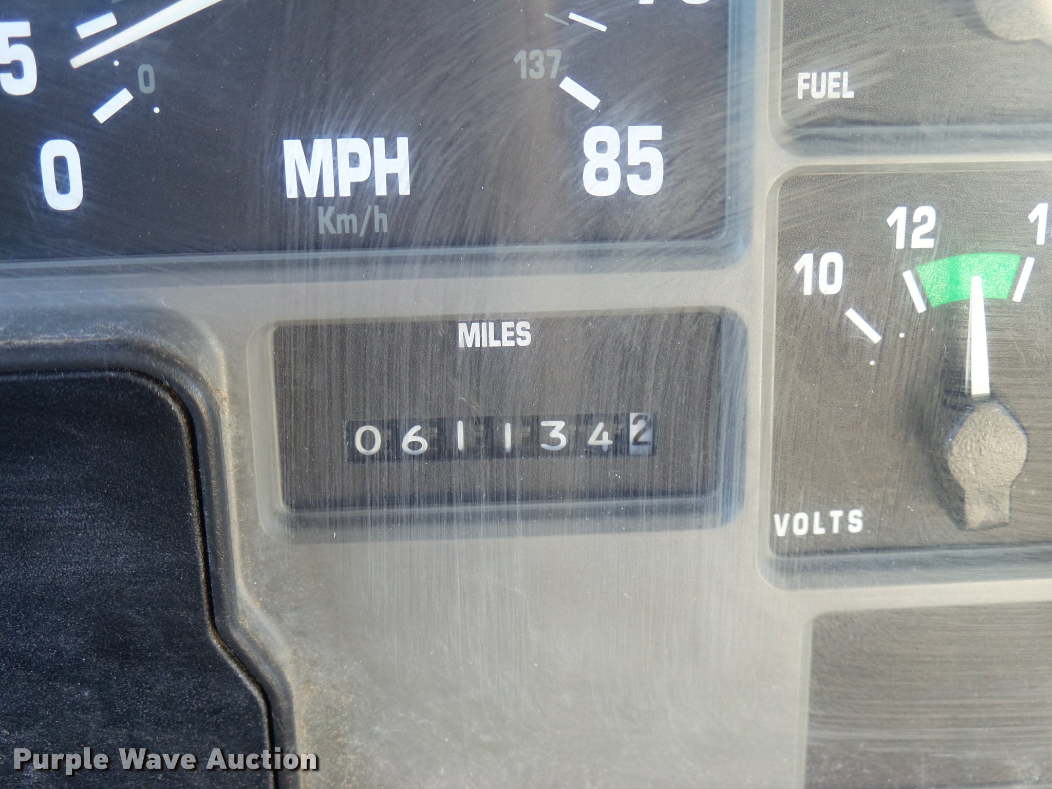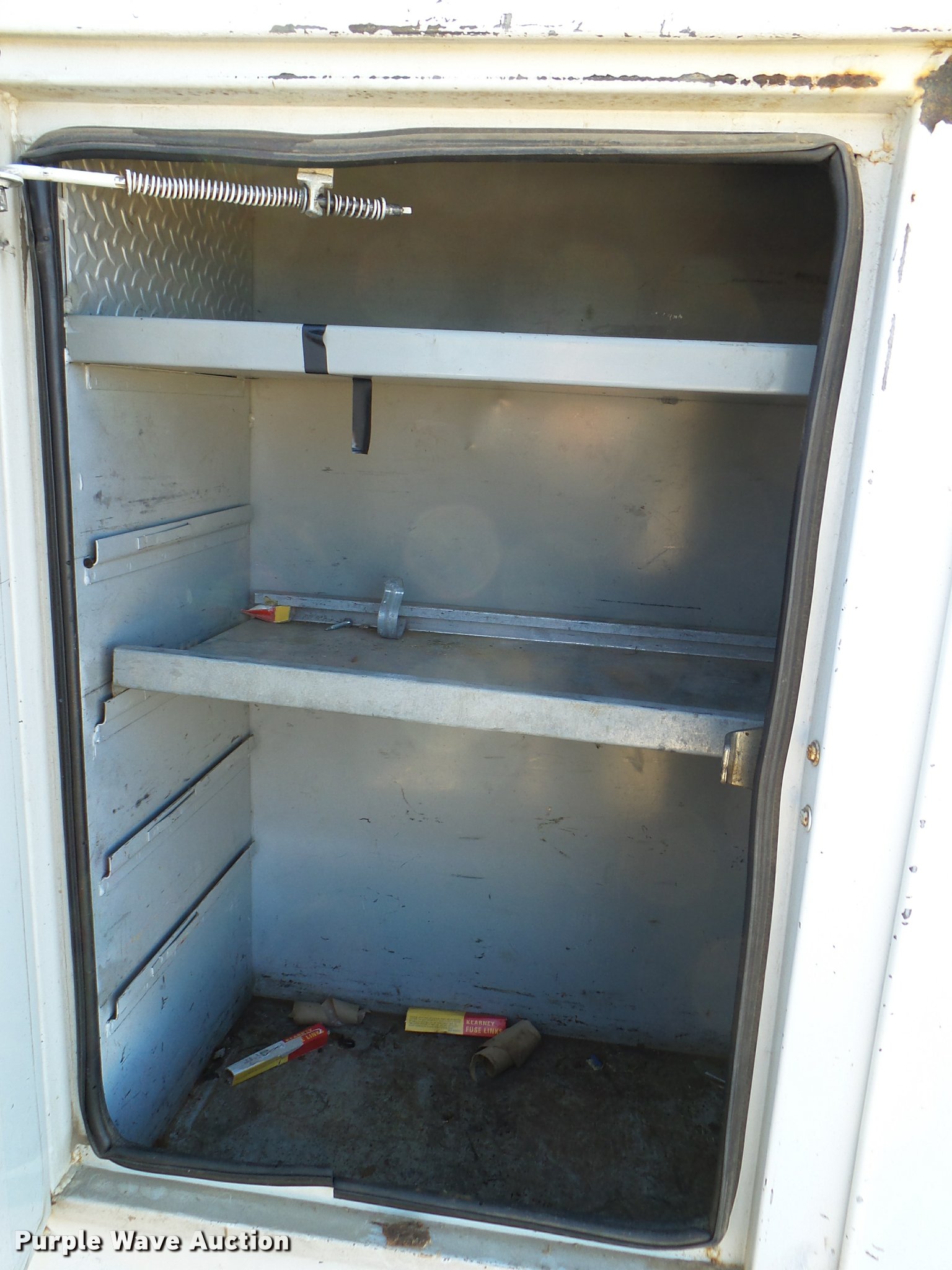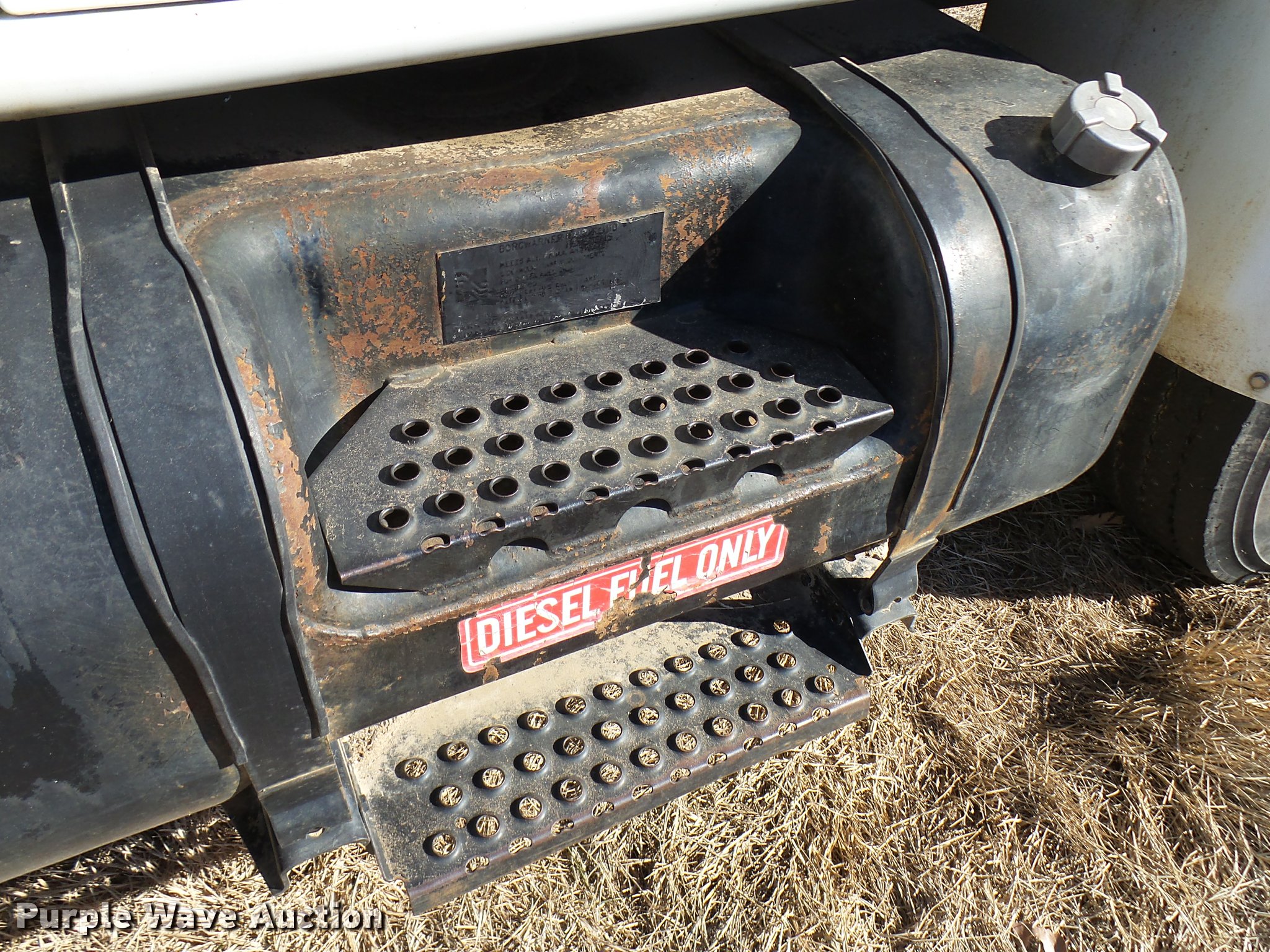 Purple Wave is selling a used Digger Derrick Truck in Oklahoma. This item is a 2001 International 4900 bucket truck material handler with the following: 61,134 miles on odometer, 6,715 hours on meter, International DT466E 7.6L L6 turbo diesel engine, Allison automatic transmission, Single axle, AC and heat, AM/FM, Suspension seat, Auxiliary controls, Front tow hooks, Beacon light, PTO, Reading 2AT174ADW service bed, 16'L, Catwalk, Air outlet, Serial B430049, 2000 Versalift V0355MH1 digger derrick, 50' boom length, 600 lbs max lift capacity, Two man basket, 55' max lift height, Platform boom controls, Boom rotation, Material handler, Articulating insulated boom, (4) outriggers, Serial DB0020, Dual fuel tanks, Spring suspension, Air brakes, 188" wheelbase, Goodyear 11R22.5 tires, GVWR 35,000 lbs, Left front headlight missing, Unit# 213