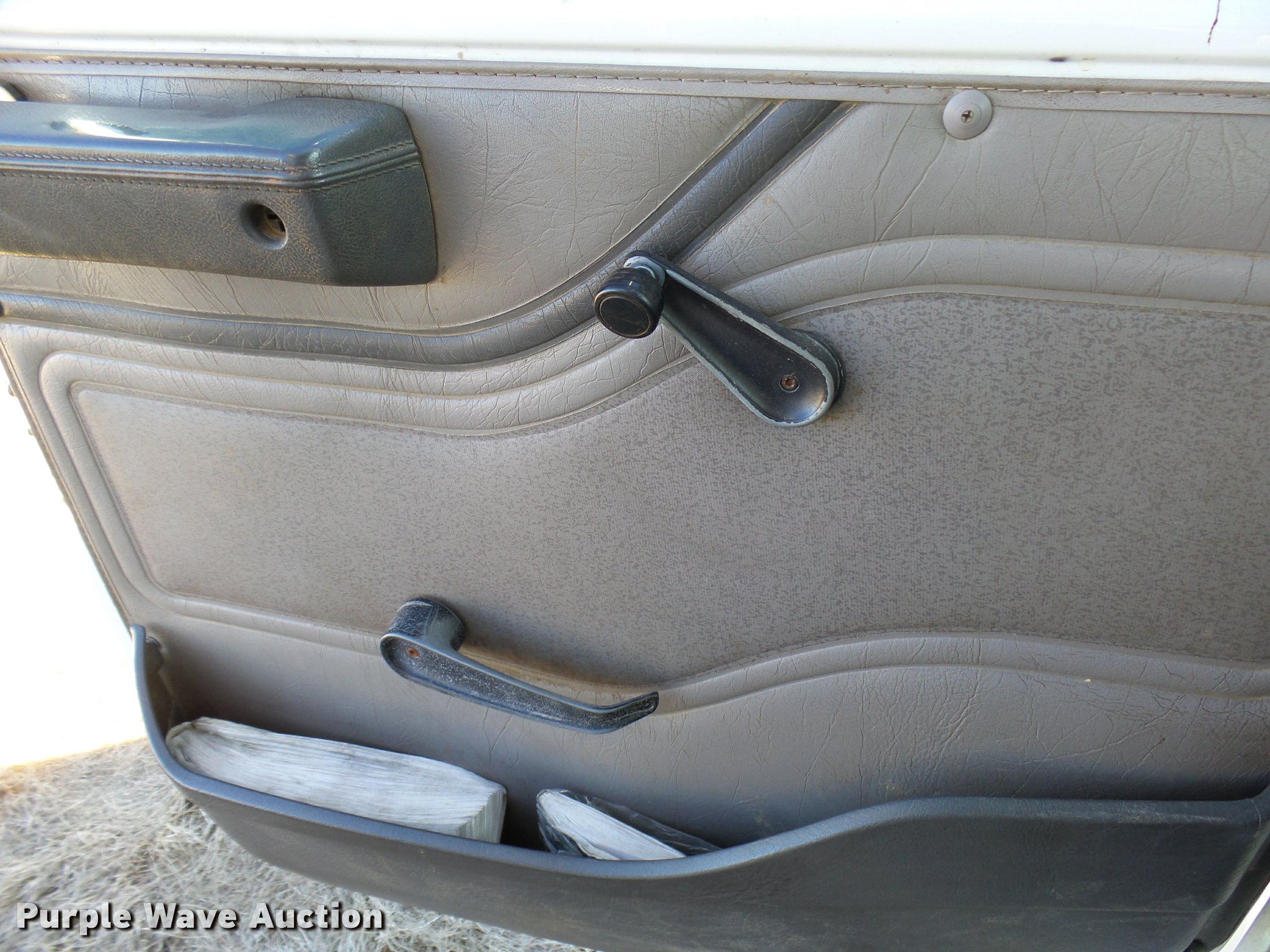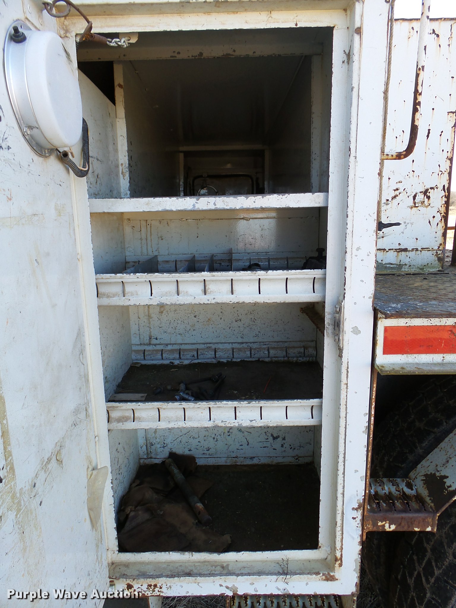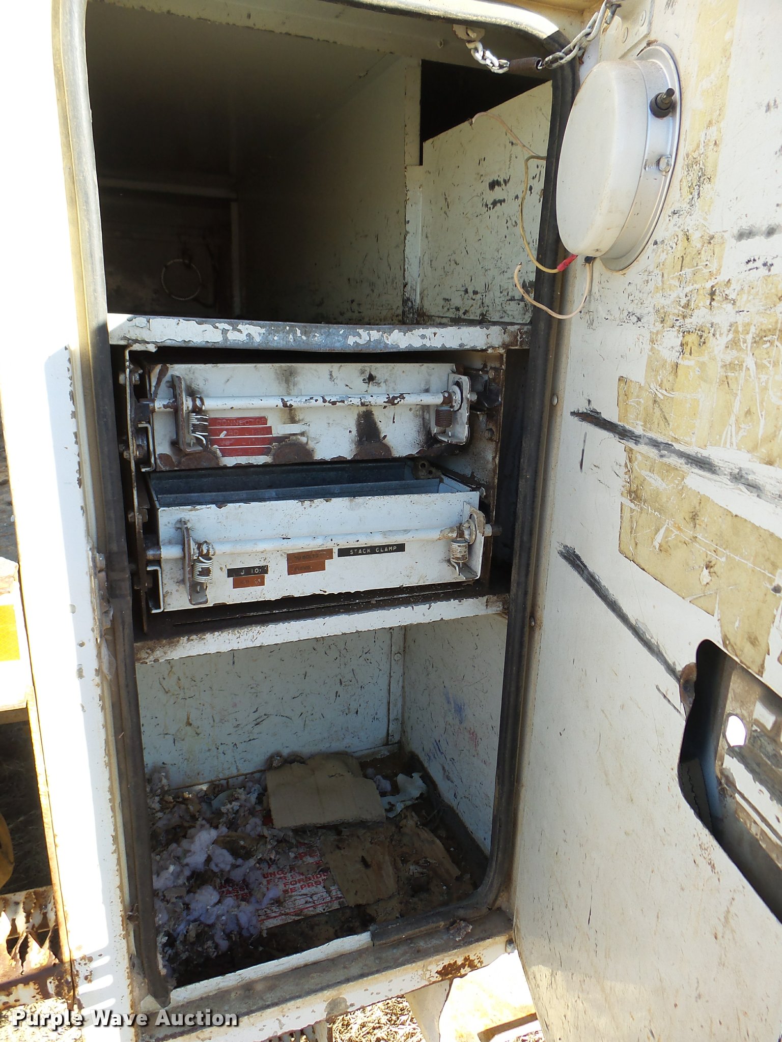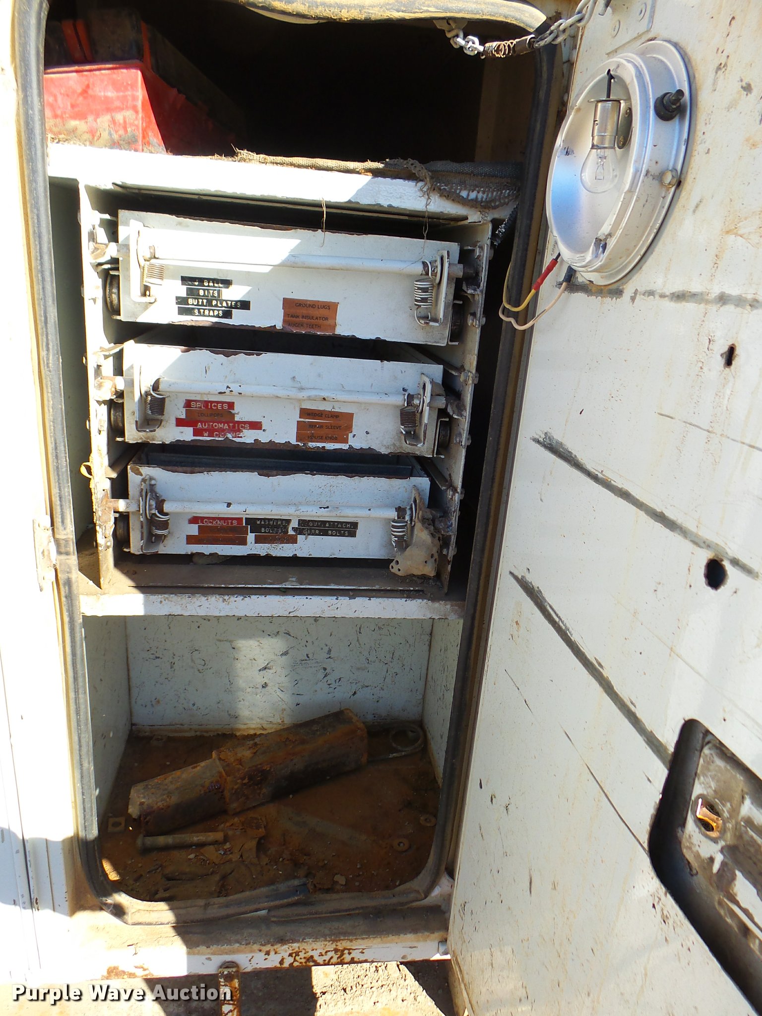 Purple Wave is selling a used Digger Derrick Truck in Oklahoma. This item is a 1998 International 4900 digger derrick truck with the following: 208,402 miles on odometer, International DT466E 7.6L L6 turbo diesel engine, Allison automatic transmission, Tandem axle, AC and heat, Cruise, AM/FM/CD, Suspension seat, Spotlight, Auxiliary controls, Brake controller, Front tow hooks, Front winch and bumper, No coil on spool, Altec service bed, 18'L, Shelving, Utility rack, Serial 37-68245, 1997 Altec D945TB digger derrick, 45' boom length, 7,600 lbs max lift capacity, 52' max lift height, Platform boom controls, Boom rotation, Material handler, Pole guide, (2) pole racks, Articulating insulated telescopic boom, 18" diameter auger, (4) outriggers, Serial 0597BA1032, Pintle hitch, Trailer wiring, Spring suspension, Air brakes, 206" wheelbase, 385/65R22.5 front tires, 11R22.5 rear tires, Idle issues, possible computer issues