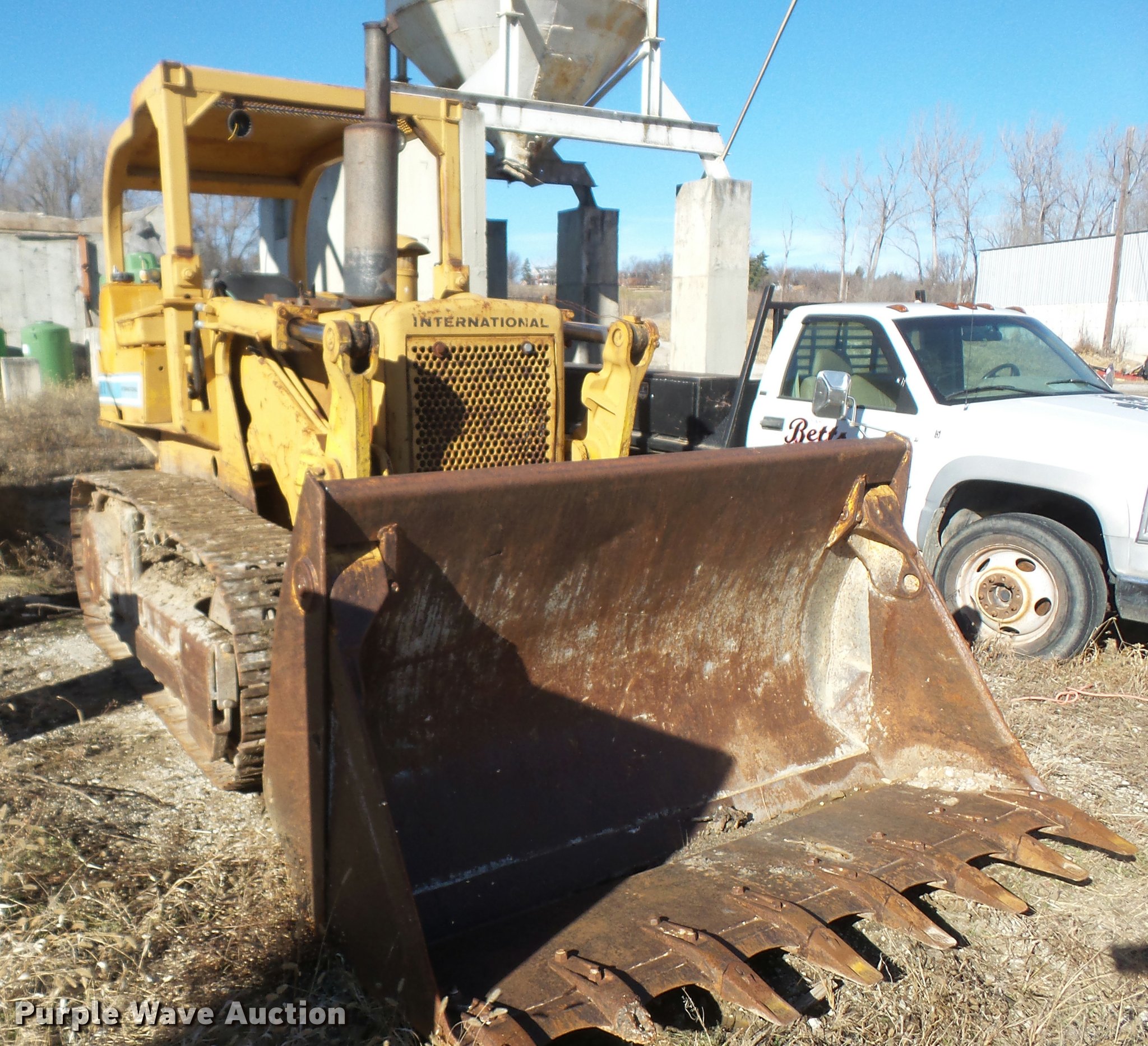 Purple Wave is selling a used Crawler Loader in Missouri. This item is a International 175C track loader with the following: 297 hours on meter, International six cylinder turbo diesel engine, 140 HP, Powershift transmission, 4F-4R gears, OROPS, Joystick bucket controls, 86"W general purpose bucket, 2 cu. yd. capacity, (8) teeth, Front auxiliary hydraulics, 16"W triple grouser track pads, Serial 4290001U001981