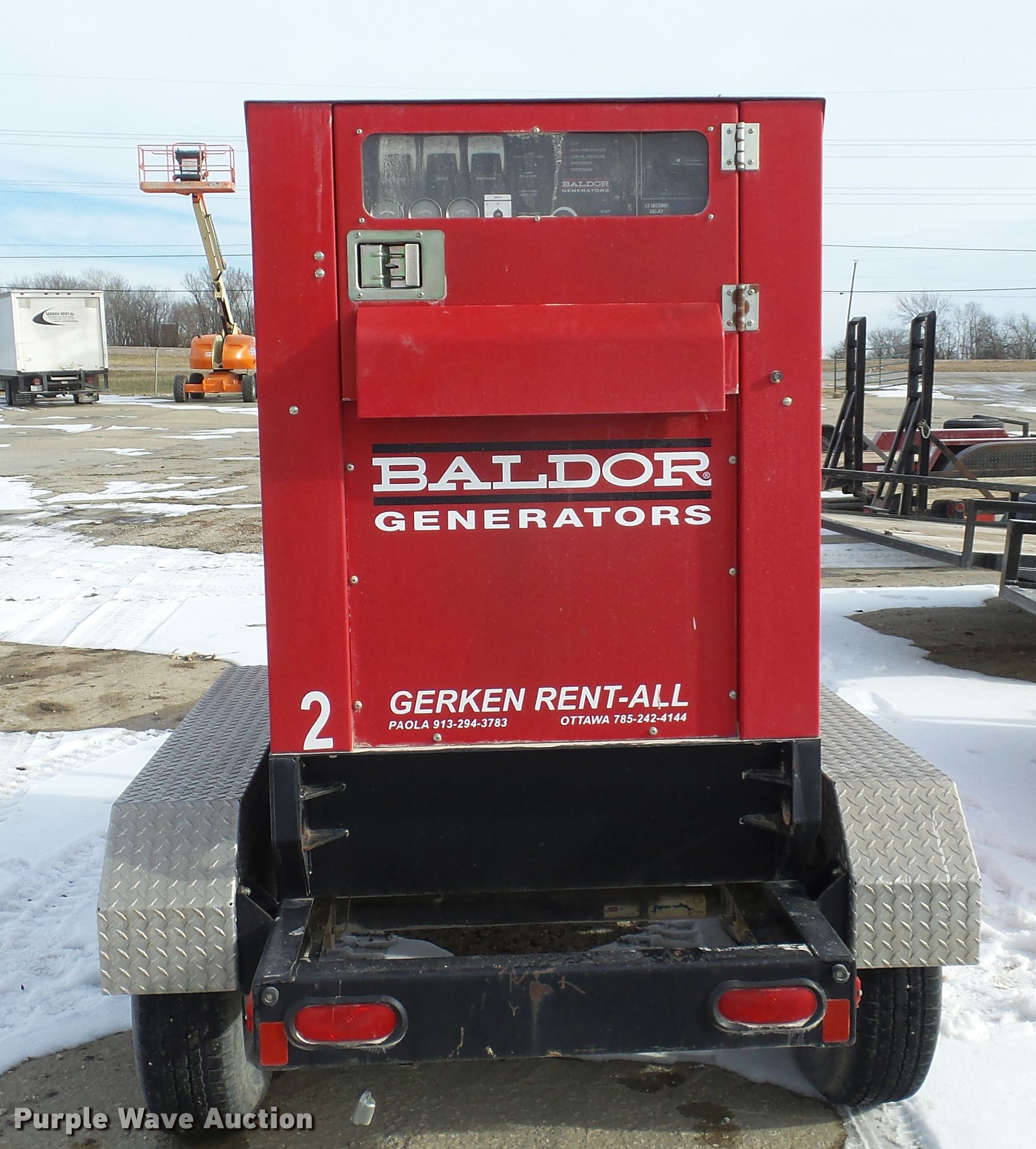 Baldor TS80 generator. 5,111 hours on meter, John Deere 4.5L four cylinder turbo diesel engine Serial 4045TF150L, Single and three phase, Integrated fuel tank, Safety chains, Break-away cable, 2" ball hitch, 205/75R15 tires. This is worksite support equipment and will not come with a title. 4TCSU10665H610875. Gerken Rent-all. 31600 Old Kc Rd. Paola, KS 66071