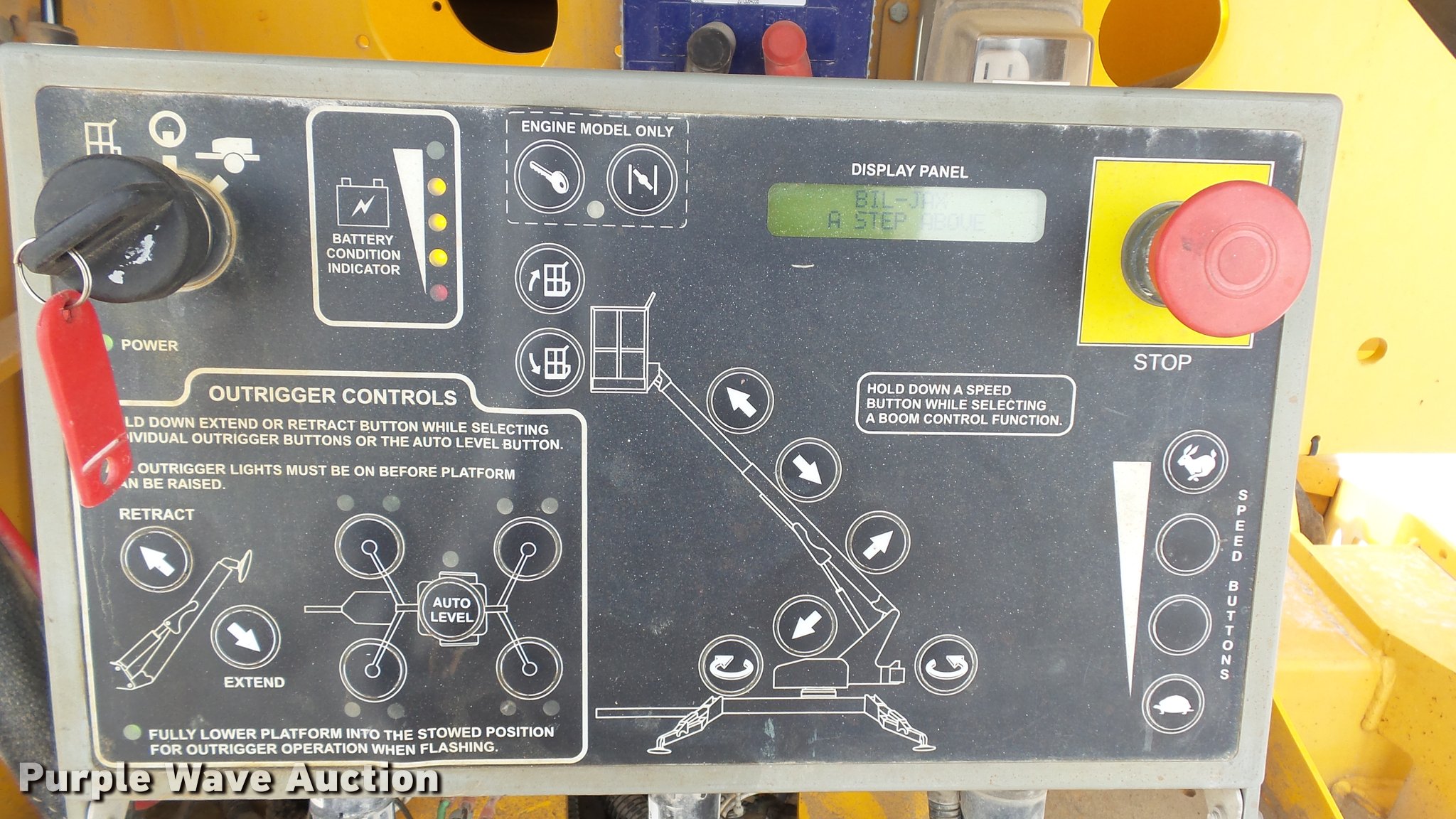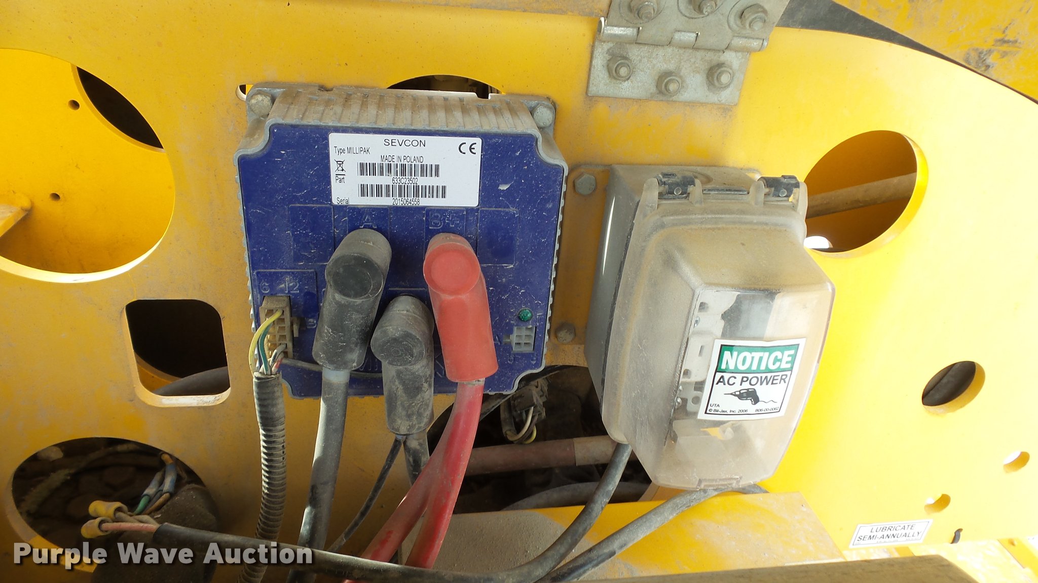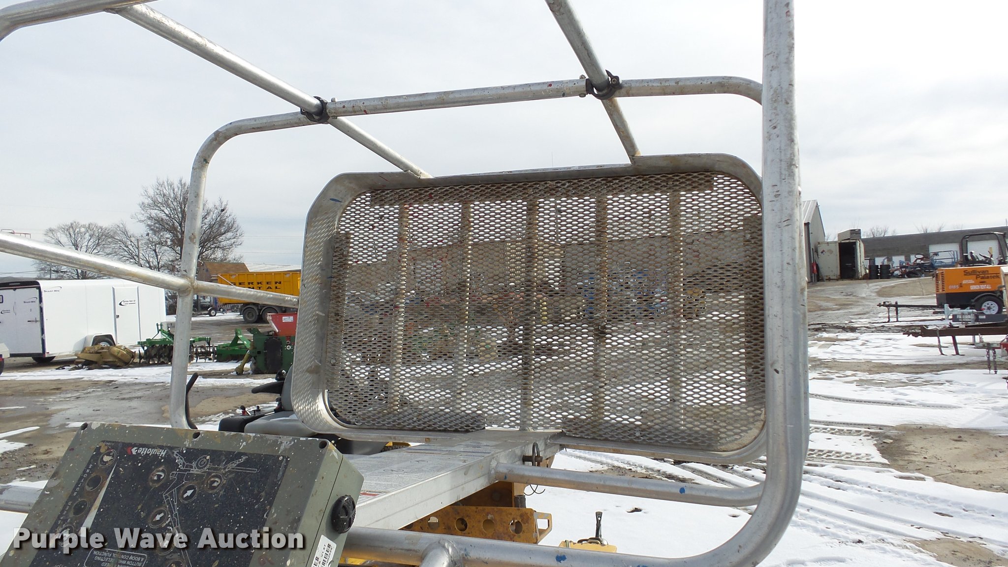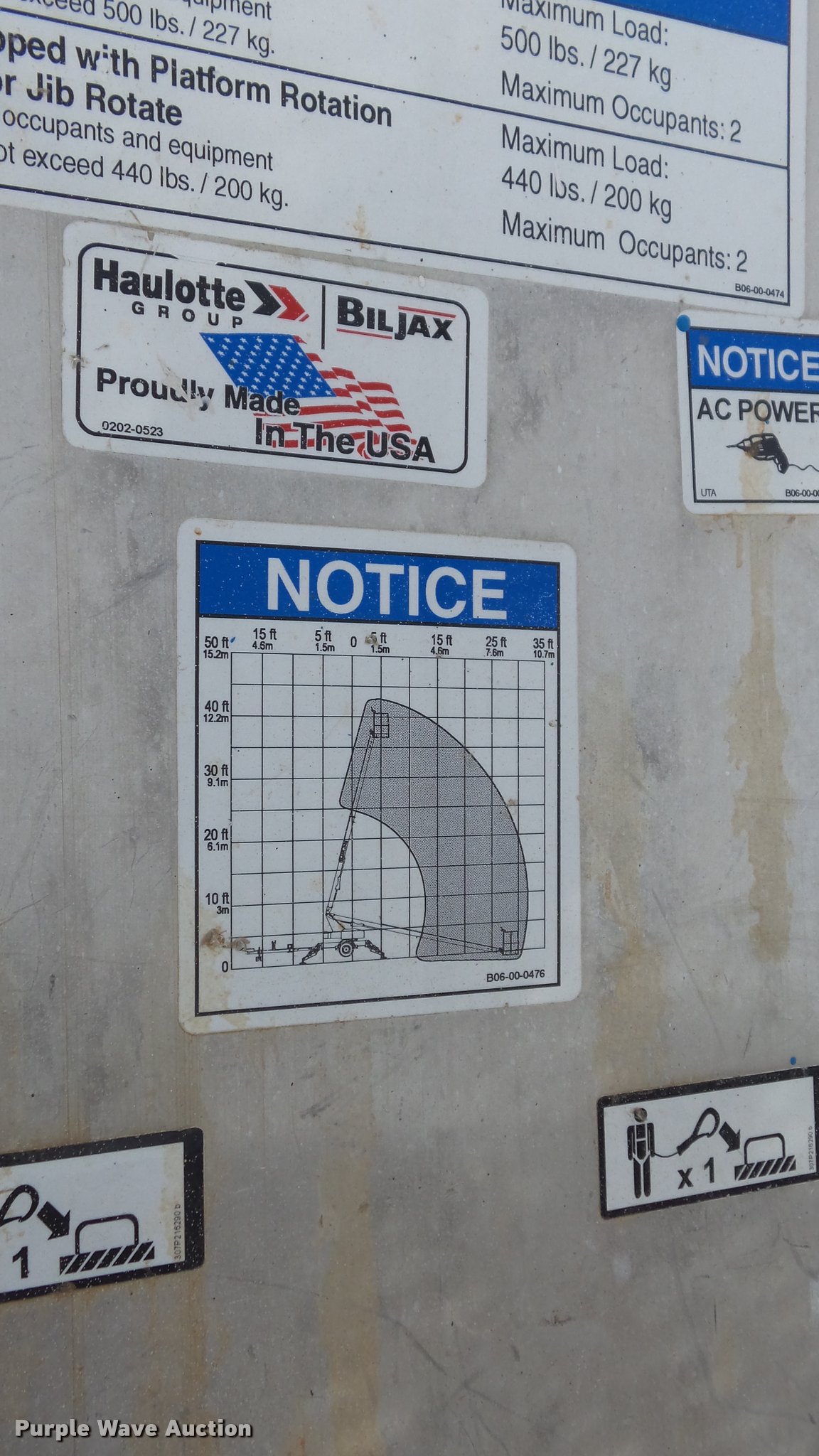 Purple Wave is selling a used Boom Lift in Kansas. This item is a 2008 Bil-jax 3632T boom lift with the following: 24V operation, 500 lbs maximum lift capacity, 30' maximum reach length, 40' maximum lift height, 4'L x 28" platform, Two person capacity, AC power outlet, Auto leveler, Hydraulic outriggers, Safety chains, 2" ball hitch, 225/75R15 tires, GVWR 5,240 lbs, Serial 36T08-00223