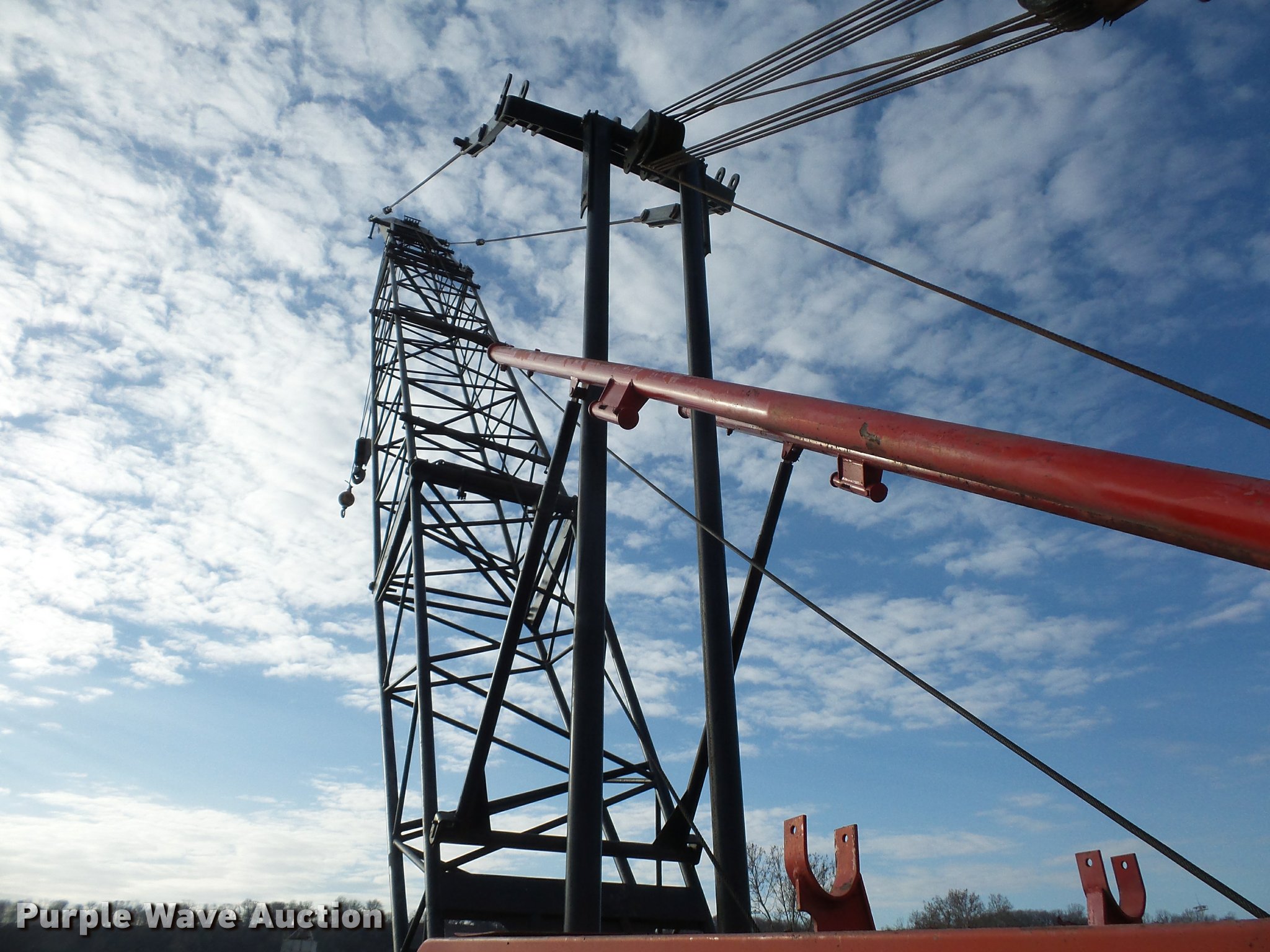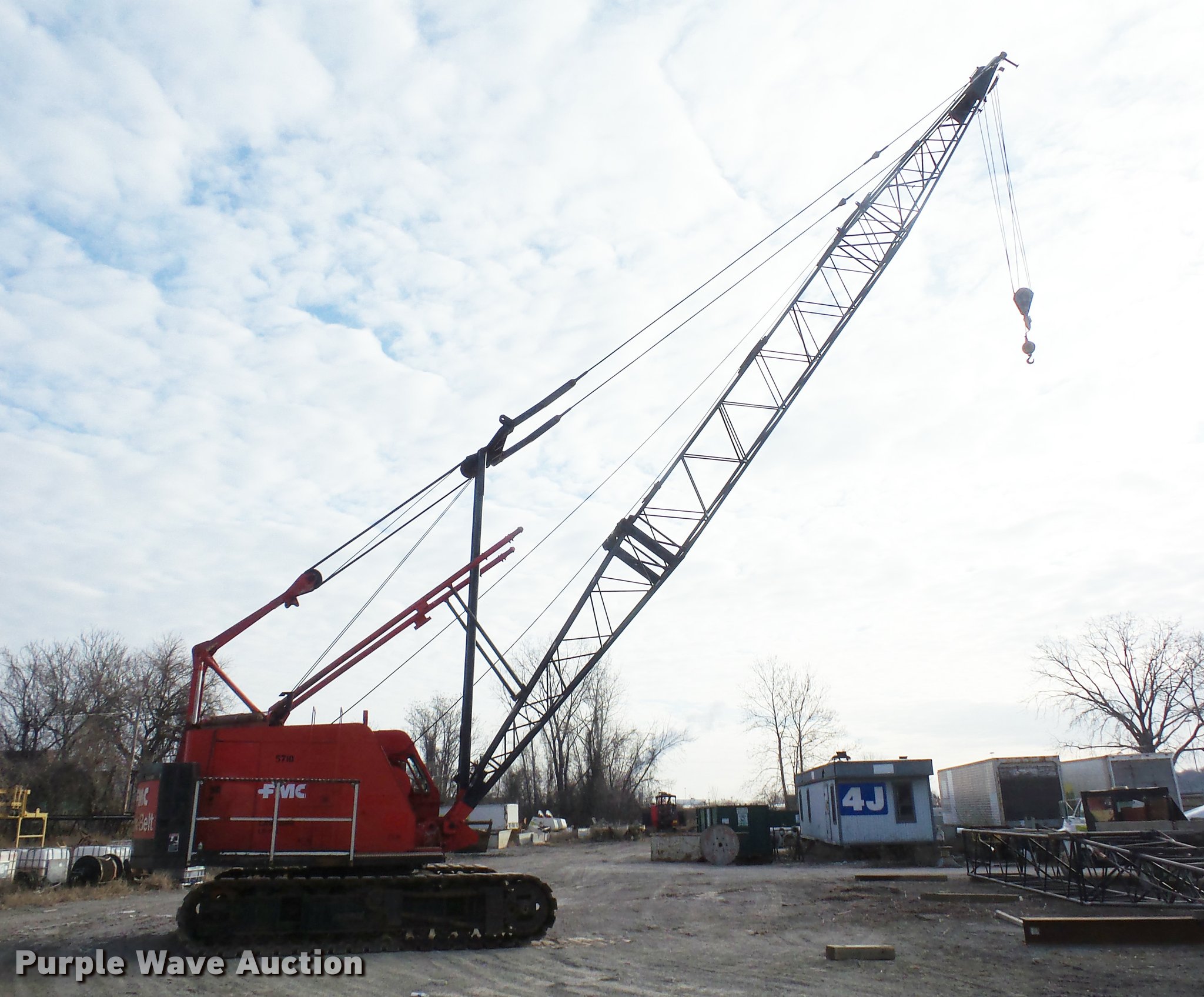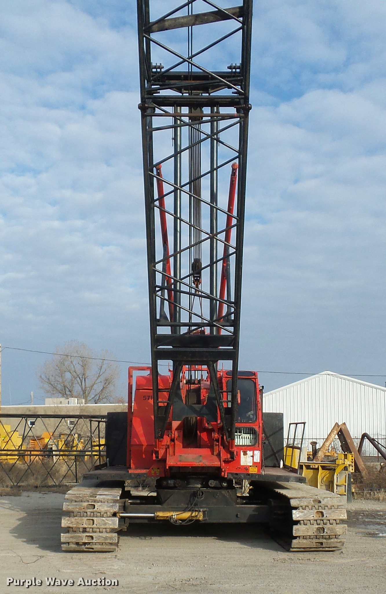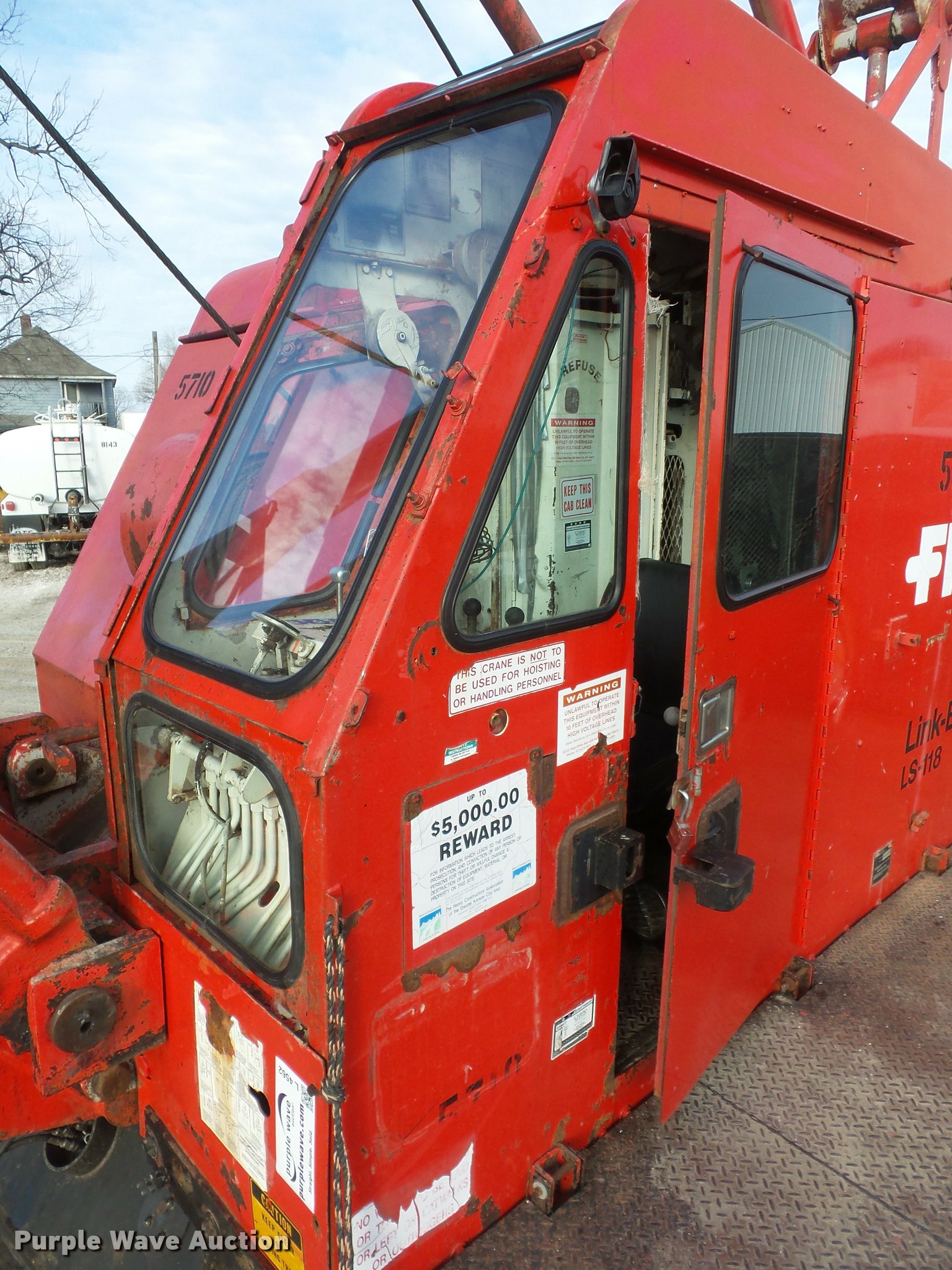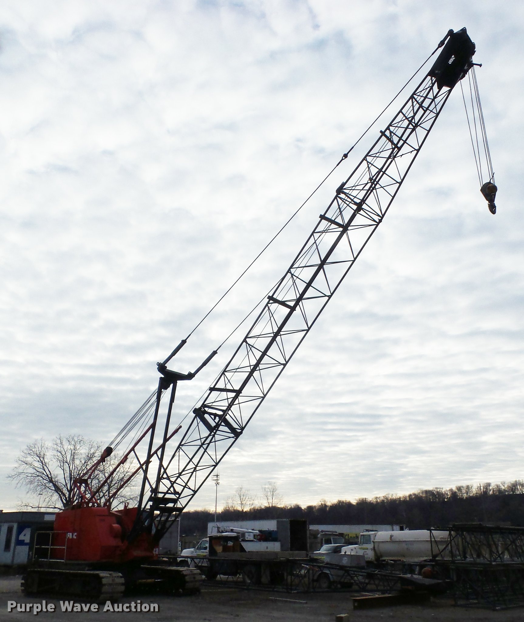 Purple Wave is selling a used Crawler Crane in Missouri. This item is a 1978 Link Belt LS-118 crane with the following: 4,955 hours on meter, Detroit Diesel six cylinder diesel engine, Clutch brake transmission, Hi-Lo, Enclosed cab, Suspension seat, Stick crane controls, Lattice boom, 120' boom length, 30' jib, (5) boom sections, (2) 30' extensions, (2) 20' extensions, 60 ton maximum lift capacity, (3) winches, 20' butt and point, In-cab boom controls, Crane block, (3) sheaves, 35 ton capacity, Third drum, Crane ball and hook, Power load lowering, (11) bottom rollers, Hydraulic width adjustment, 36"W tracks, Operators manual, Serial 9LV5533, Unit# 5710