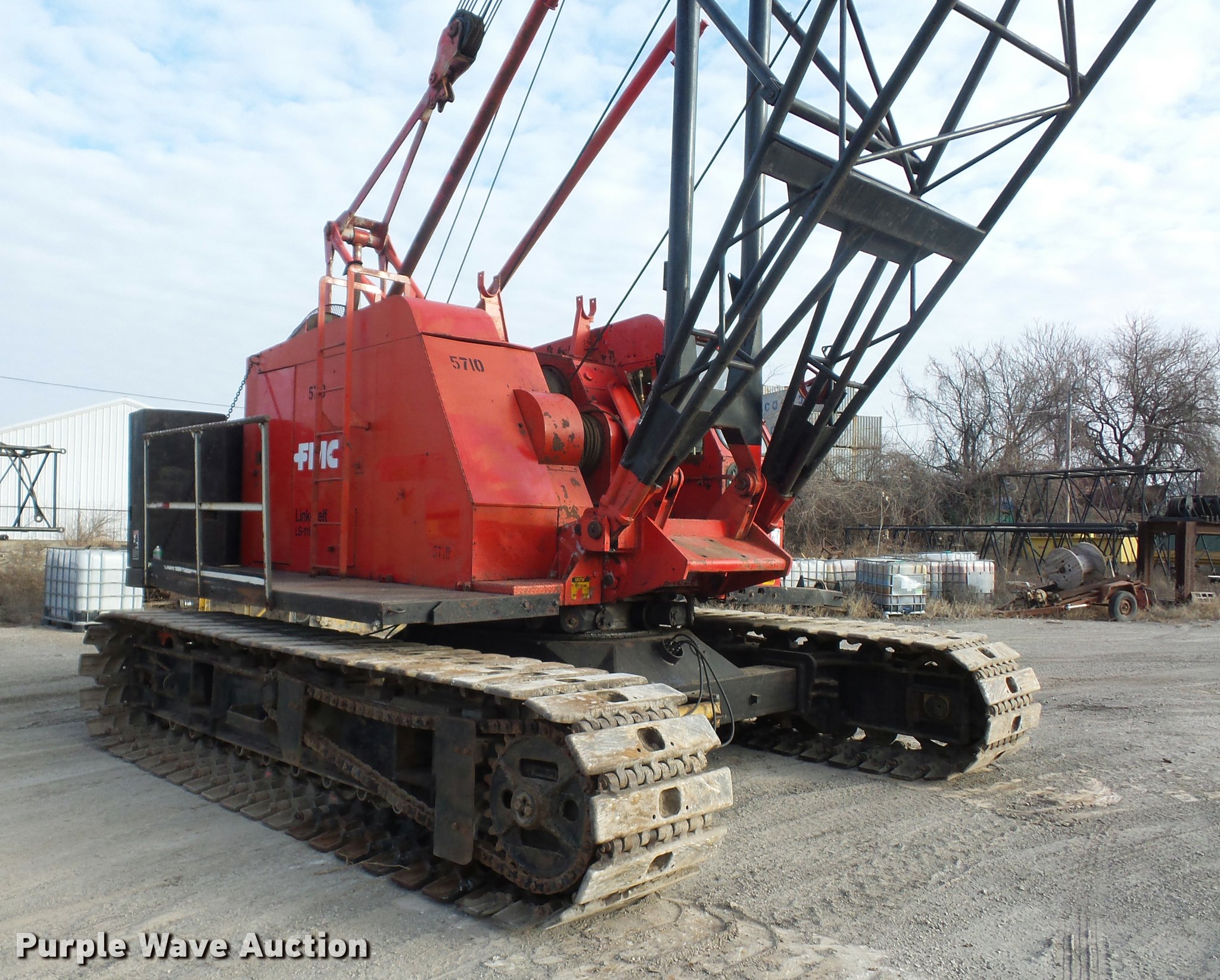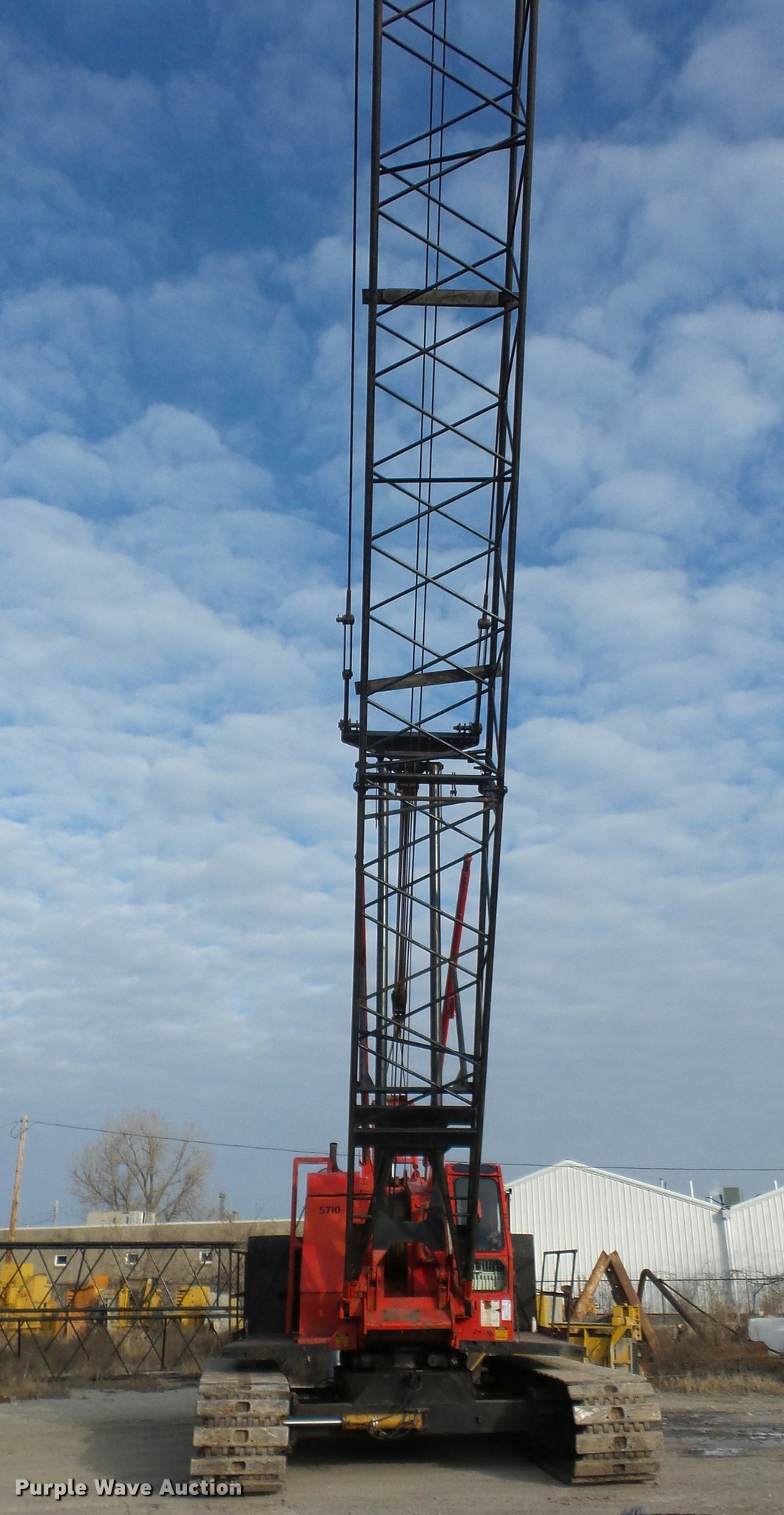 1978 Link Belt LS-118 crane. 4,955 hours on meter, Detroit Diesel six cylinder diesel engine, Clutch brake transmission Hi-Lo, Enclosed cab, Suspension seat, Stick crane controls, Lattice boom 120' boom length, 30' jib, (5) boom sections (2) 30' extensions, (2) 20' extensions, 60 ton maximum lift capacity, (3) winches, 20' butt and point, In-cab boom controls, Crane block (3) sheaves, 35 ton capacity, Third drum, Crane ball and hook, Power load lowering, (11) bottom rollers, Hydraulic width adjustment, 36"W tracks, Operators manual, Serial 9LV5533, Unit# 5710. Clarkson Construction Co.. 4133 Gardner Ave. Kansas City, MO 64120
