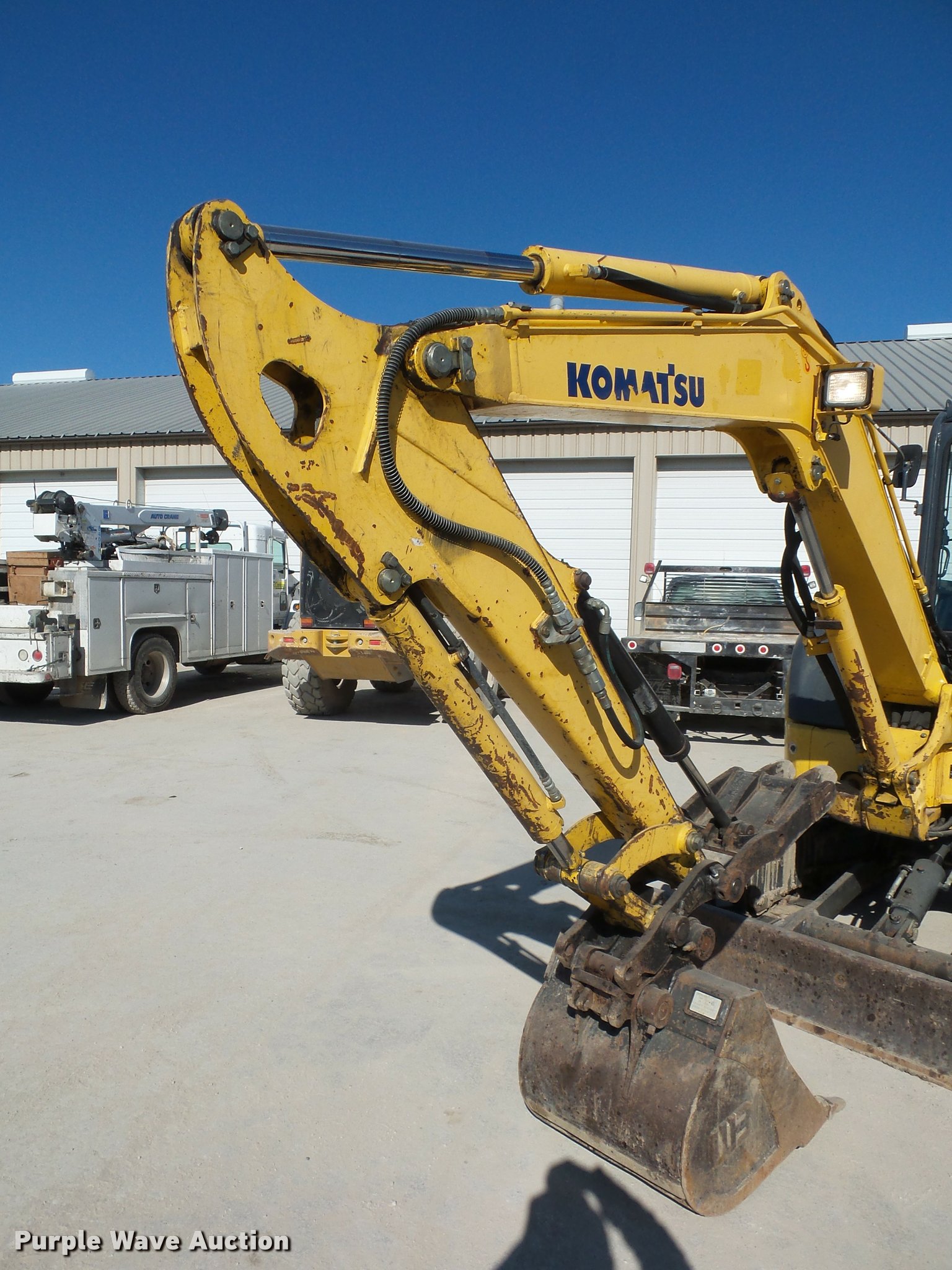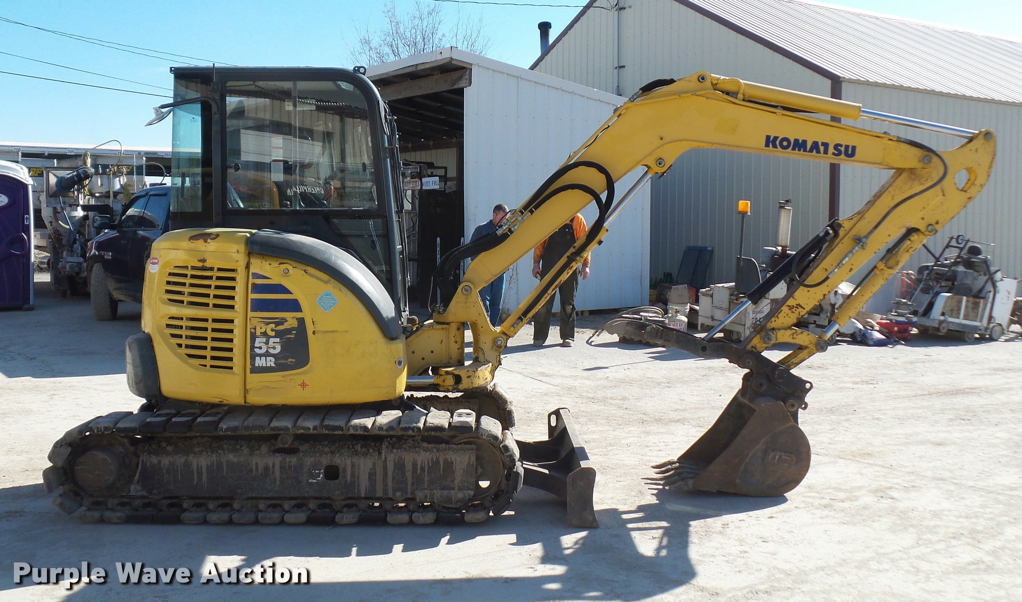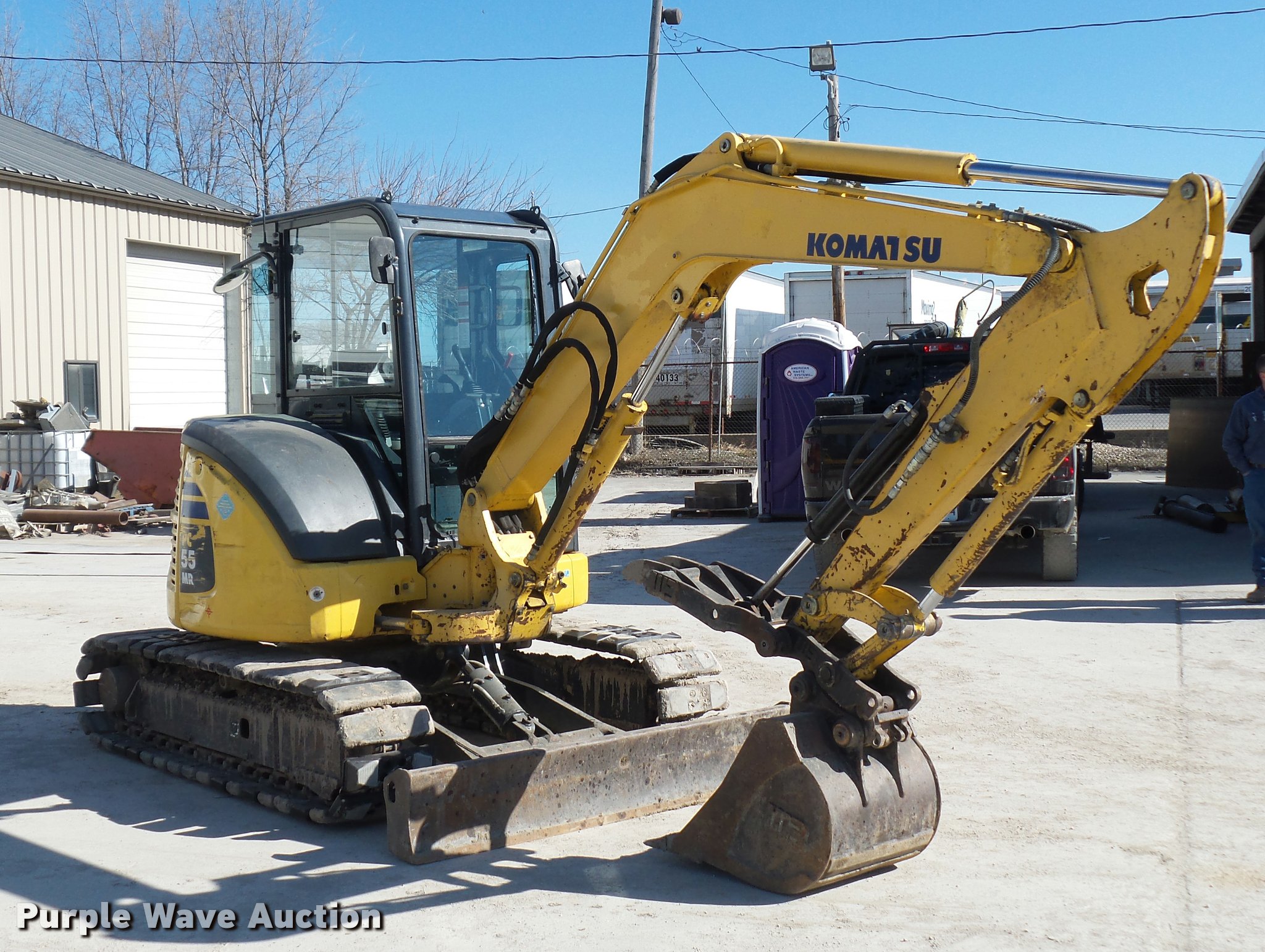 Purple Wave is selling a used Mini Excavator in Missouri. This item is a 2009 Komatsu PC55MR-3 compact excavator with the following: 4,070 hours on meter, Komatsu 2.2L four cylinder diesel engine, Two speed hydrostatic transmission, EROPS, Serial K8749A, AC and heat, AM/FM/CD, Suspension seat, Wipers, Front work lights, Standard boom, Standard auxiliary hydraulics, 57" stick length, WB 24"W bucket, (5) weld-on teeth, WB hydraulic thumb, Mechanical quick coupler, 77"W backfill blade, Four bottom rollers, 16"W steel track rails with street pads, Serial KMTPC212A05015168, Unit# 5353