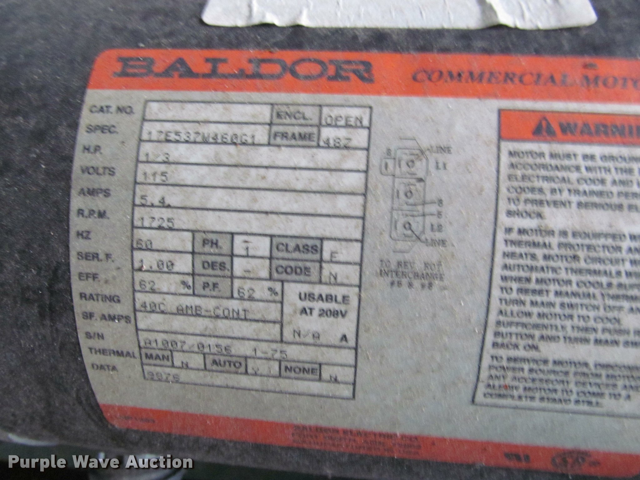 Purple Wave is selling a used Other Grain or Fertilizer Handling in Kansas. This item is a Glycol feed system with the following: Baldor electric motor, 1/3 HP, 115V, 5.4 amps, 60 Hz, Single phase, Serial R1007/0156 1-35, Neptune chemical pump, Operating manual