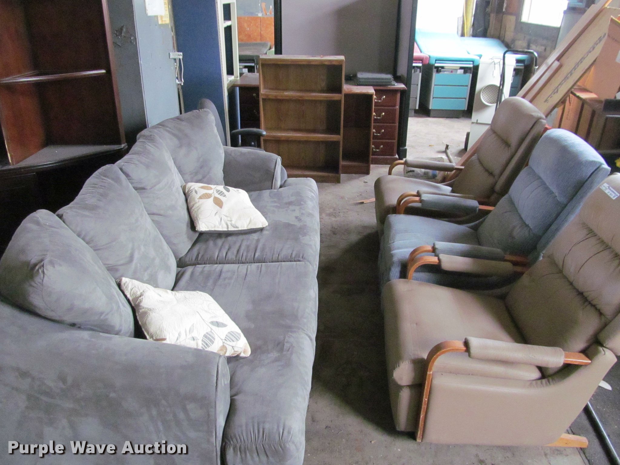 Purple Wave is selling a used Furniture in Kansas. This item is a Furniture with the following: (3) rocking chairs, Office chair, Couch