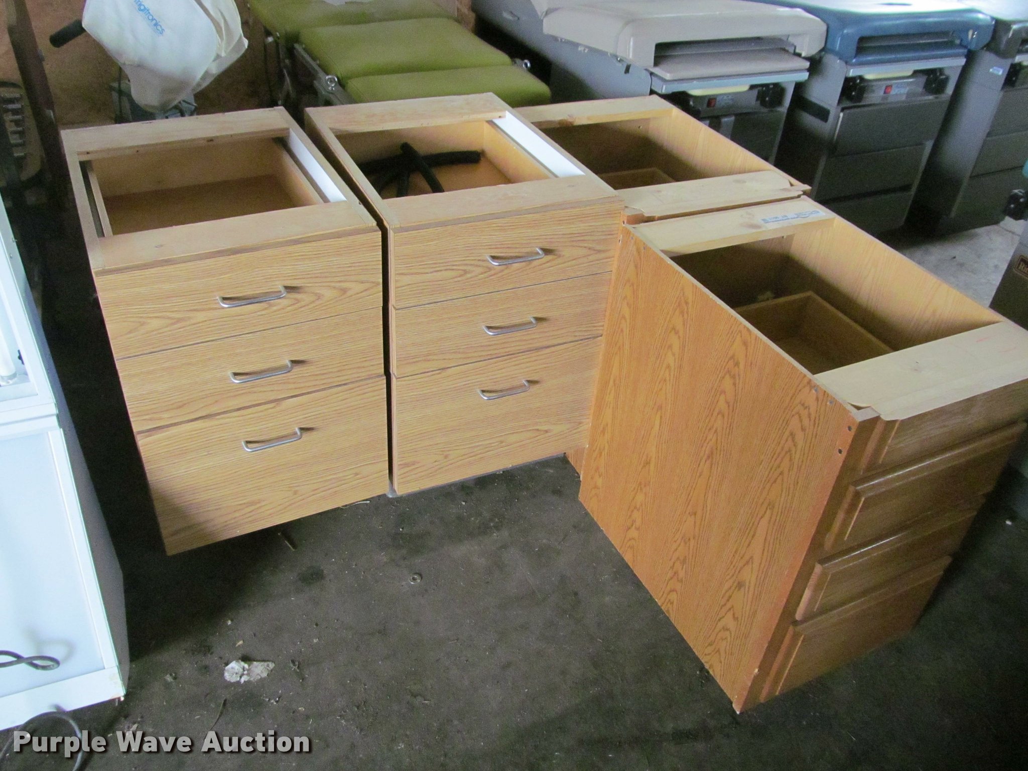 (4) wood storage cabinets. (2) three drawer 18" x 24", (2) four drawer 18" x 25". Community Healthcare Systems. 120 W 8th St. Onaga, KS 66521