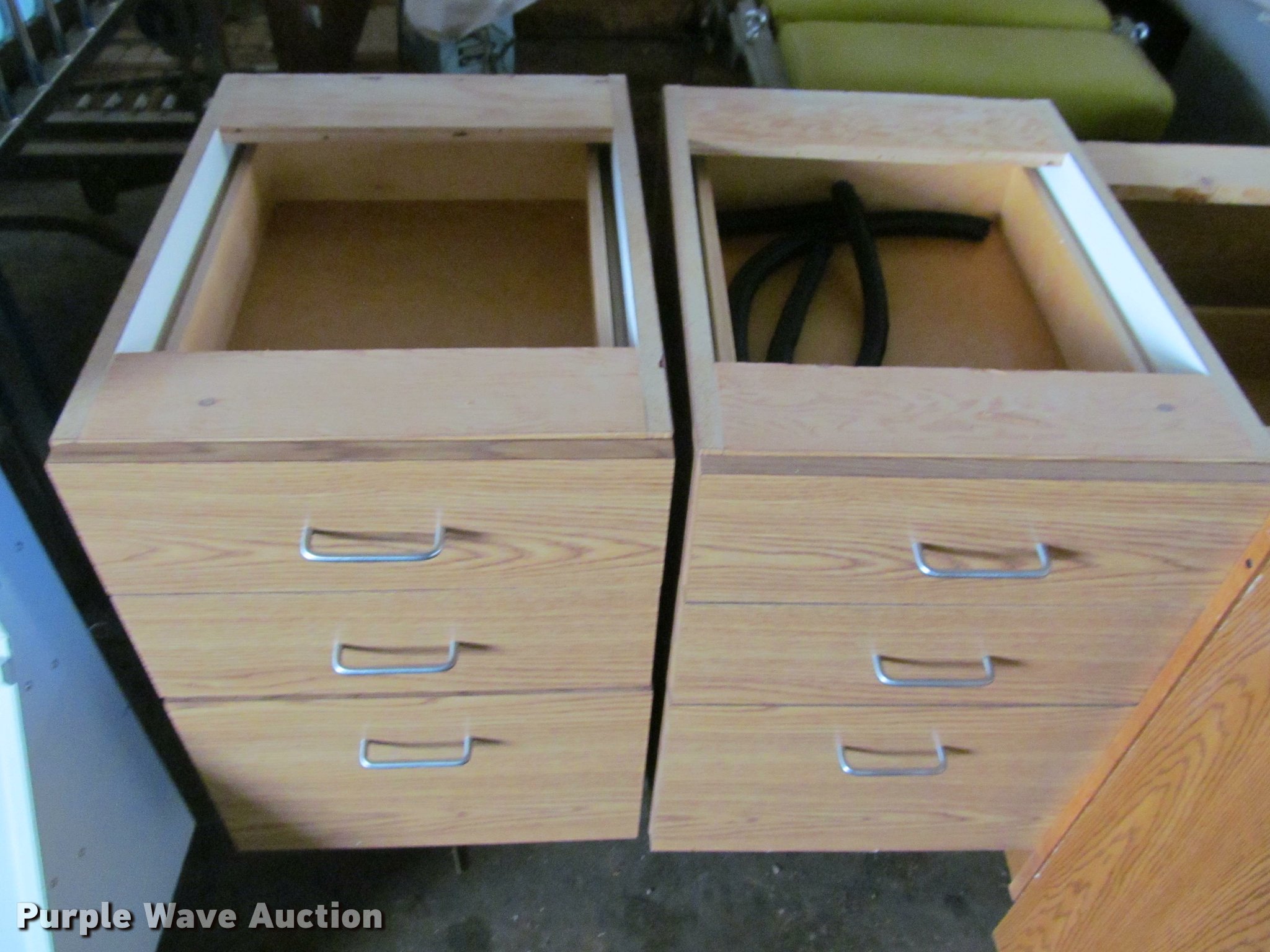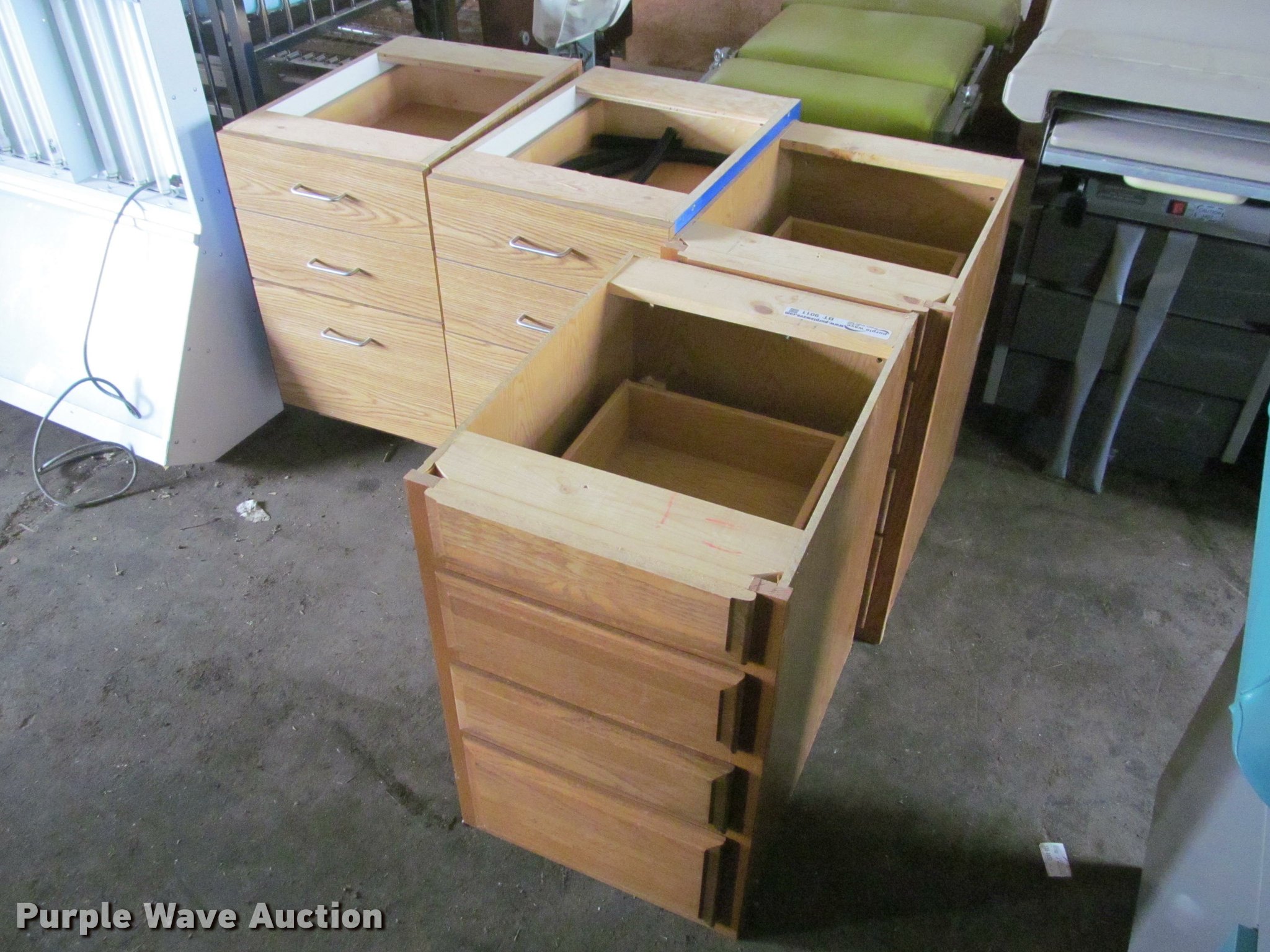 Purple Wave is selling a used Furniture in Kansas. This item is a (4) wood storage cabinets with the following: (2) three drawer, 18" x 24", (2) four drawer, 18" x 25"