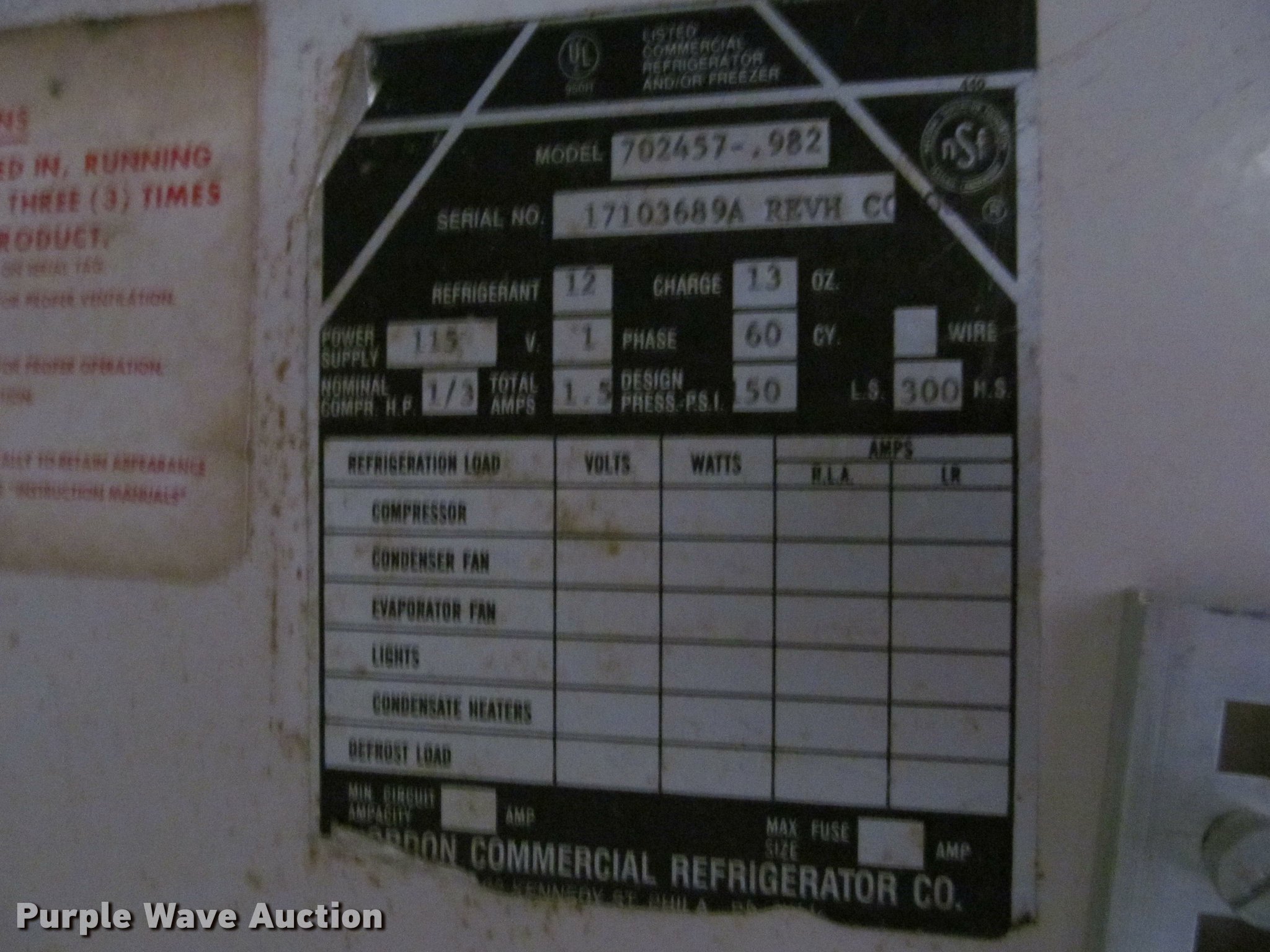 Purple Wave is selling a used Appliances in Kansas. This item is a Jordan double refrigerator with the following: Model 702457-982, 115V, Single phase, 60 Hz, Serial 17103689A