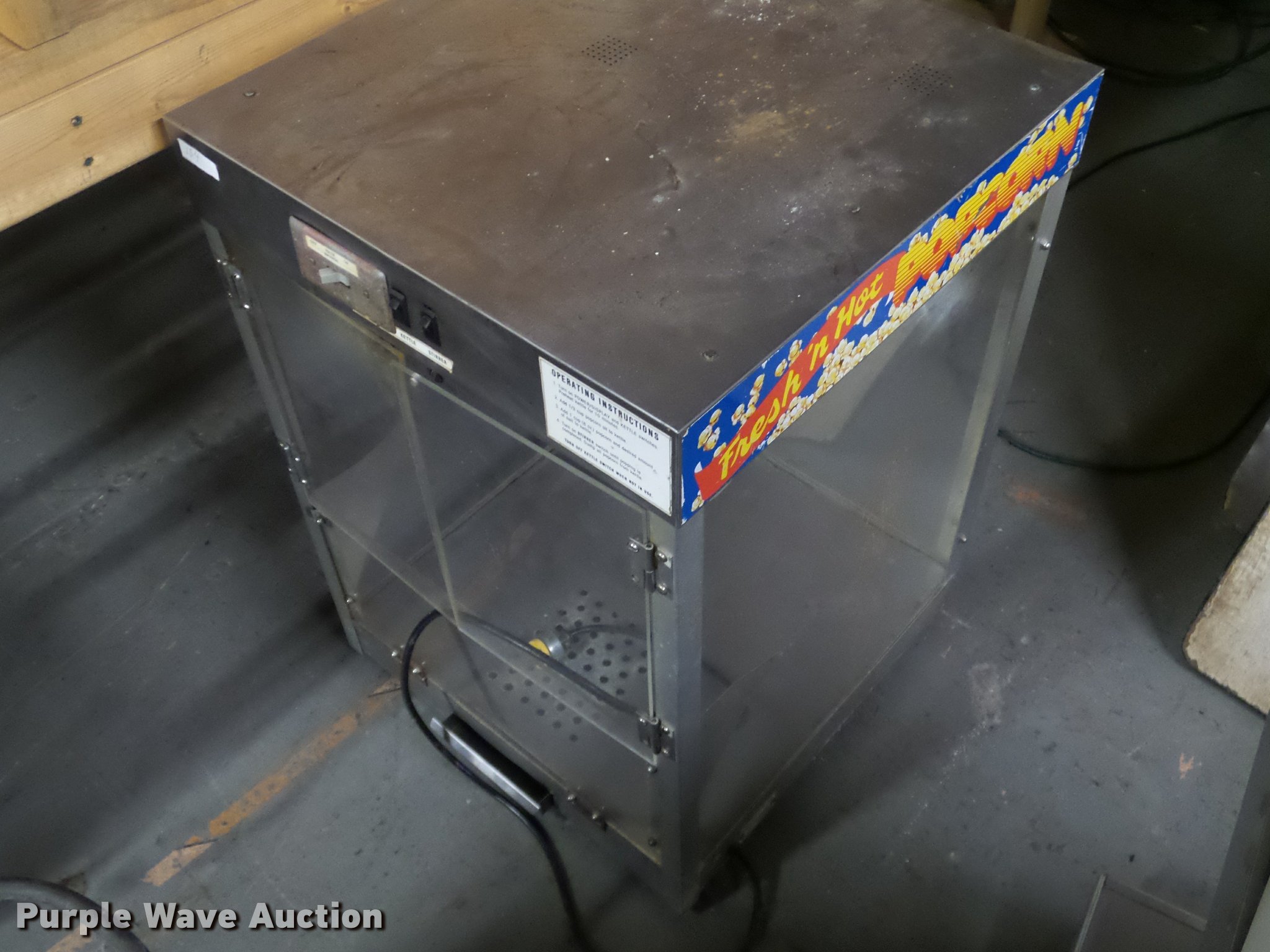 Purple Wave is selling a used Restaurant Equip. in Kansas. This item is a Restaurant equipment with the following: Two drawer warmer, Popcorn machine, Model PC-1A, Kettle missing, Cash register, Hatco Glo-Ray food warmer, (2) plate carts