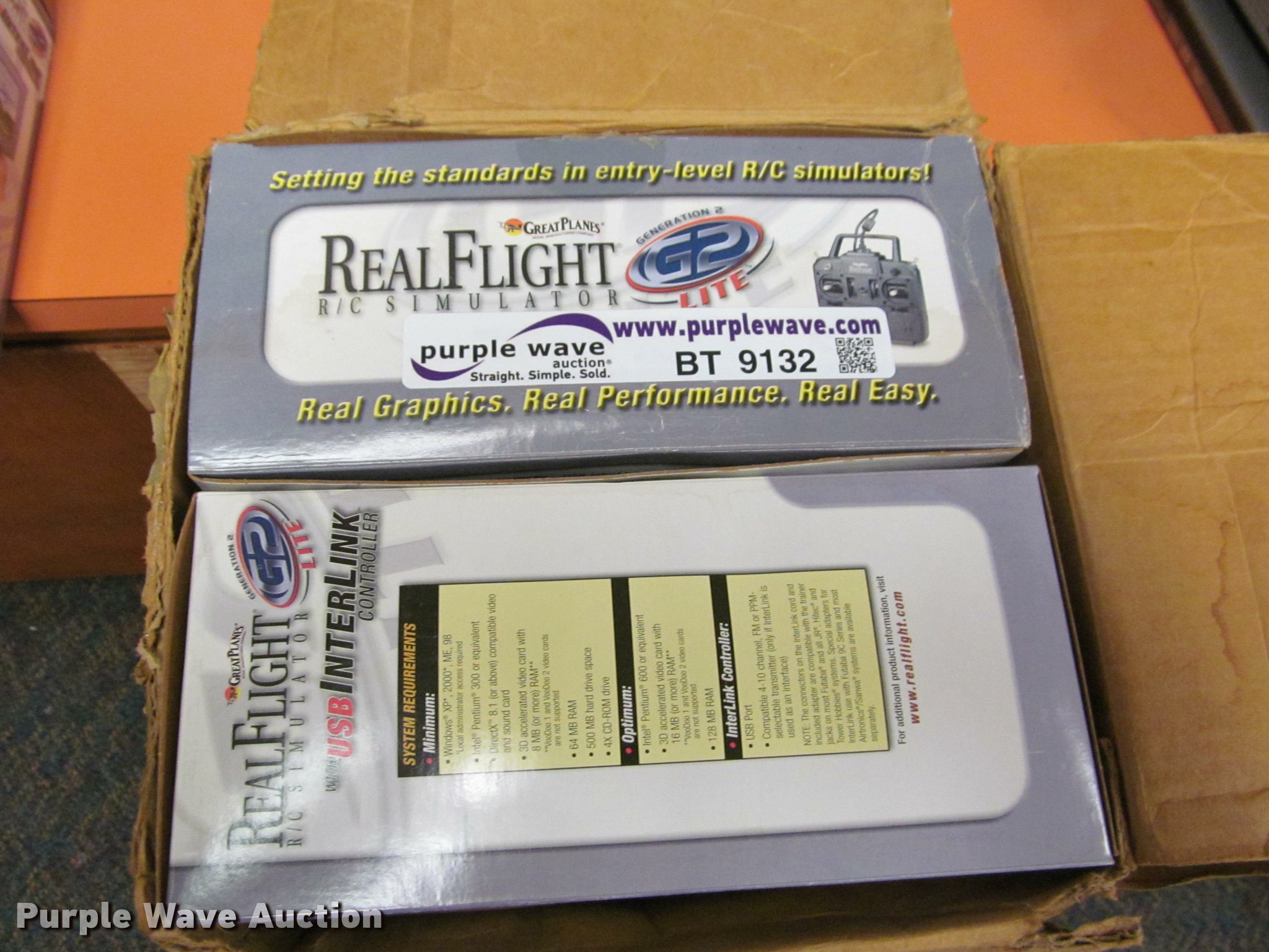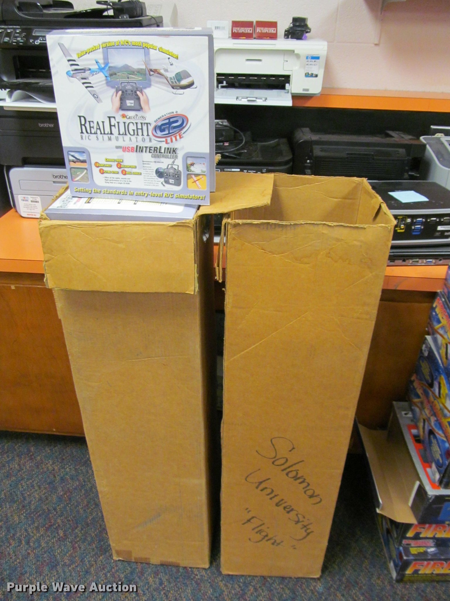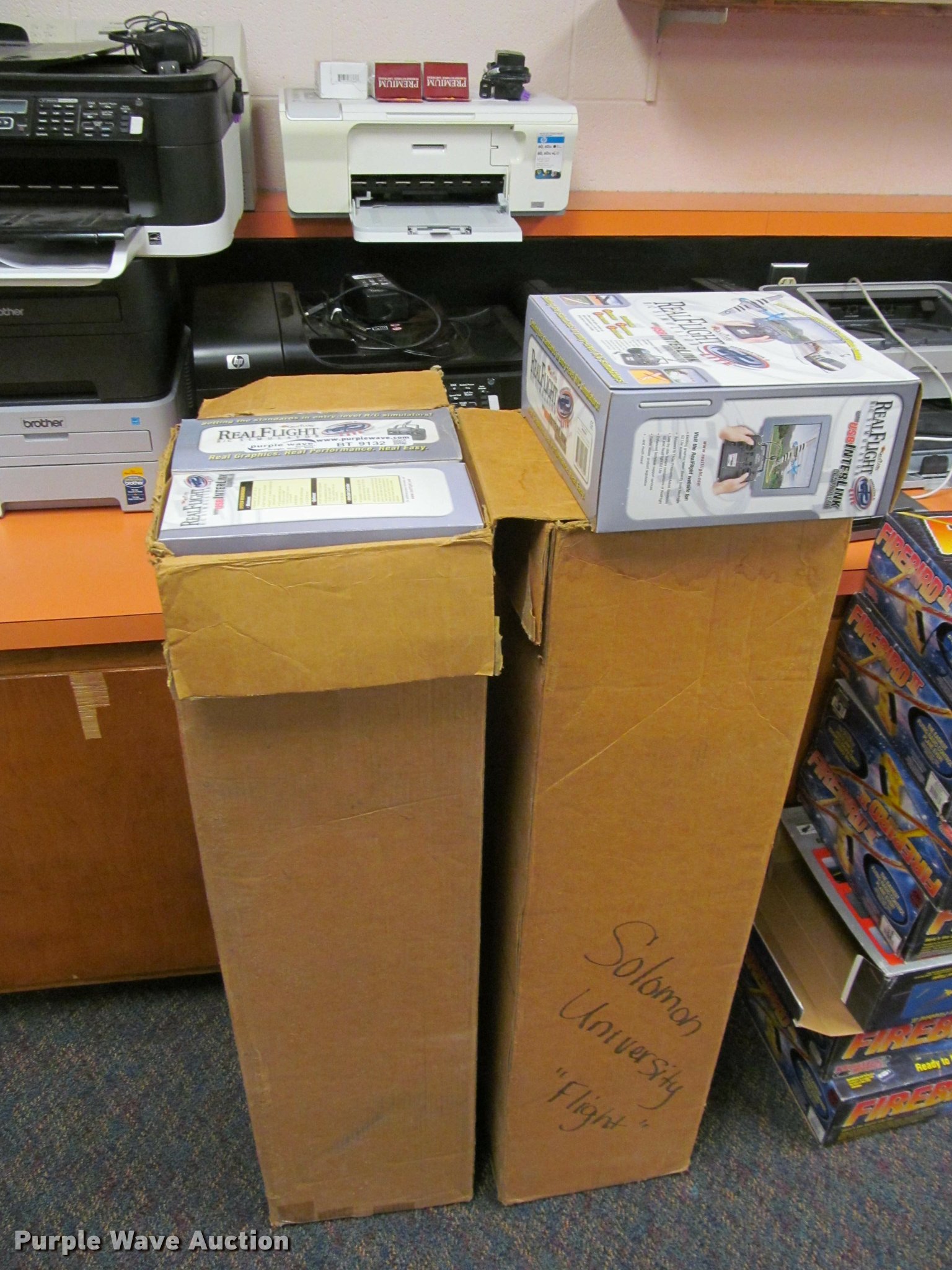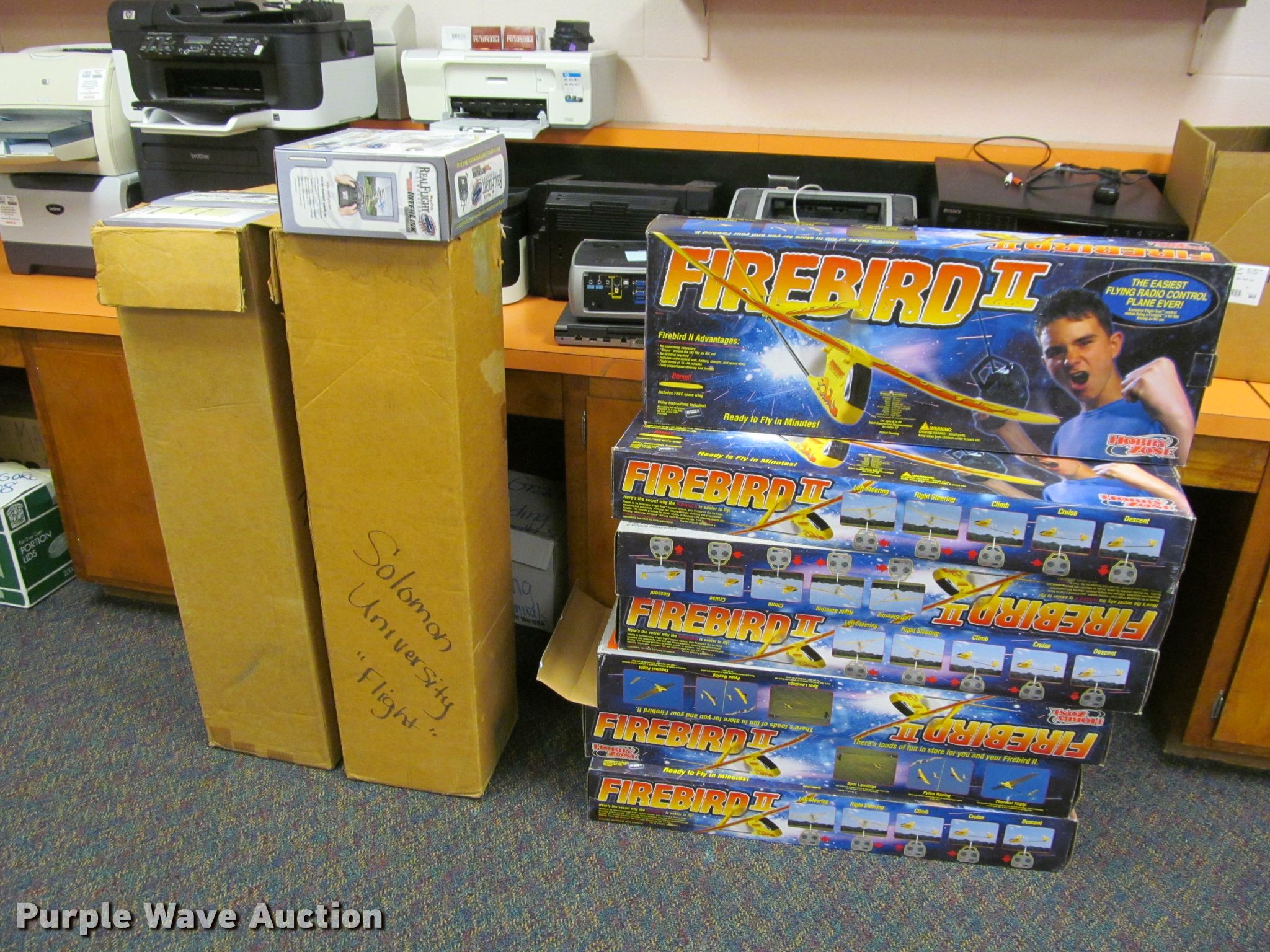 Purple Wave is selling a used Sporting Goods in Kansas. This item is a Remote control planes with the following: (15) Real Flight RC simulator controllers, (7) Firebird II remote control planes