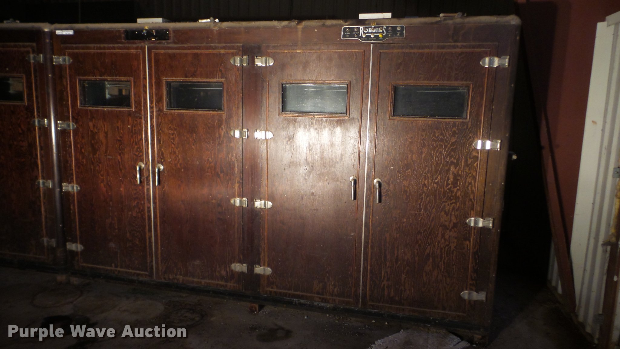 Purple Wave is selling a used Livestock Equip. in Kansas. This item is a Robbins hatchery incubator with the following: Approximately 11' x 7' x 7'H, Four door, Unknown operating condition, One control plate missing