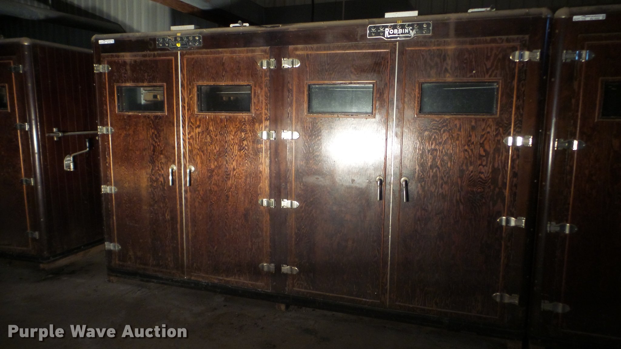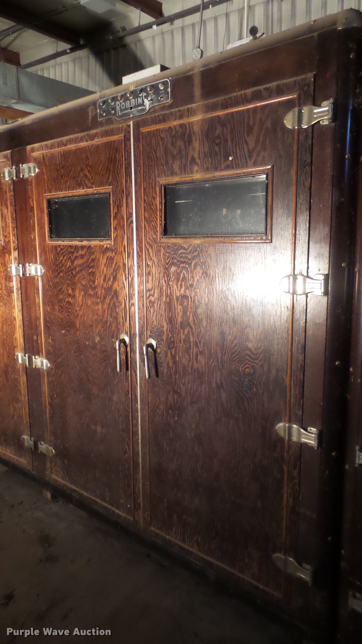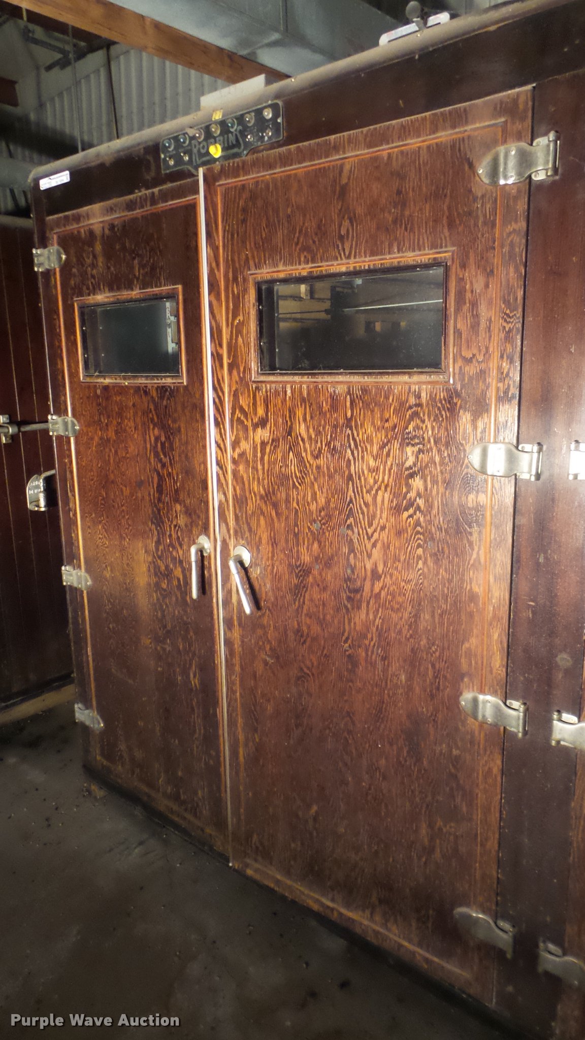 Purple Wave is selling a used Livestock Equip. in Kansas. This item is a Robbins hatchery incubator with the following: Approximately 11' x 7' x 7'H, Four door, Unknown operating condition