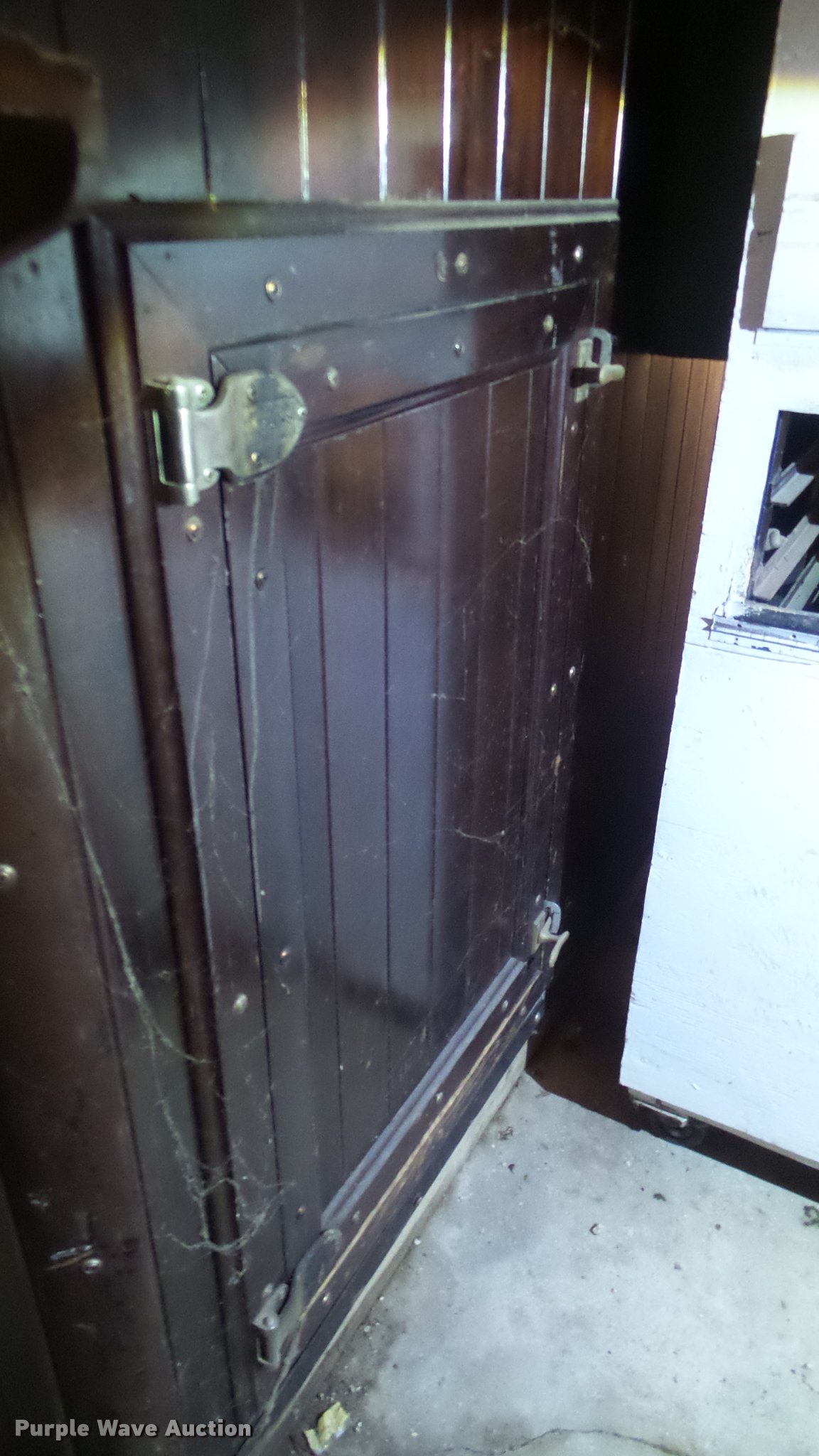 Robbins hatchery incubator. Approximately 11' x 7' x 7'H, Four door, Unknown operating condition, Control plates missing. City of Moundridge. Moundridge, KS 67107