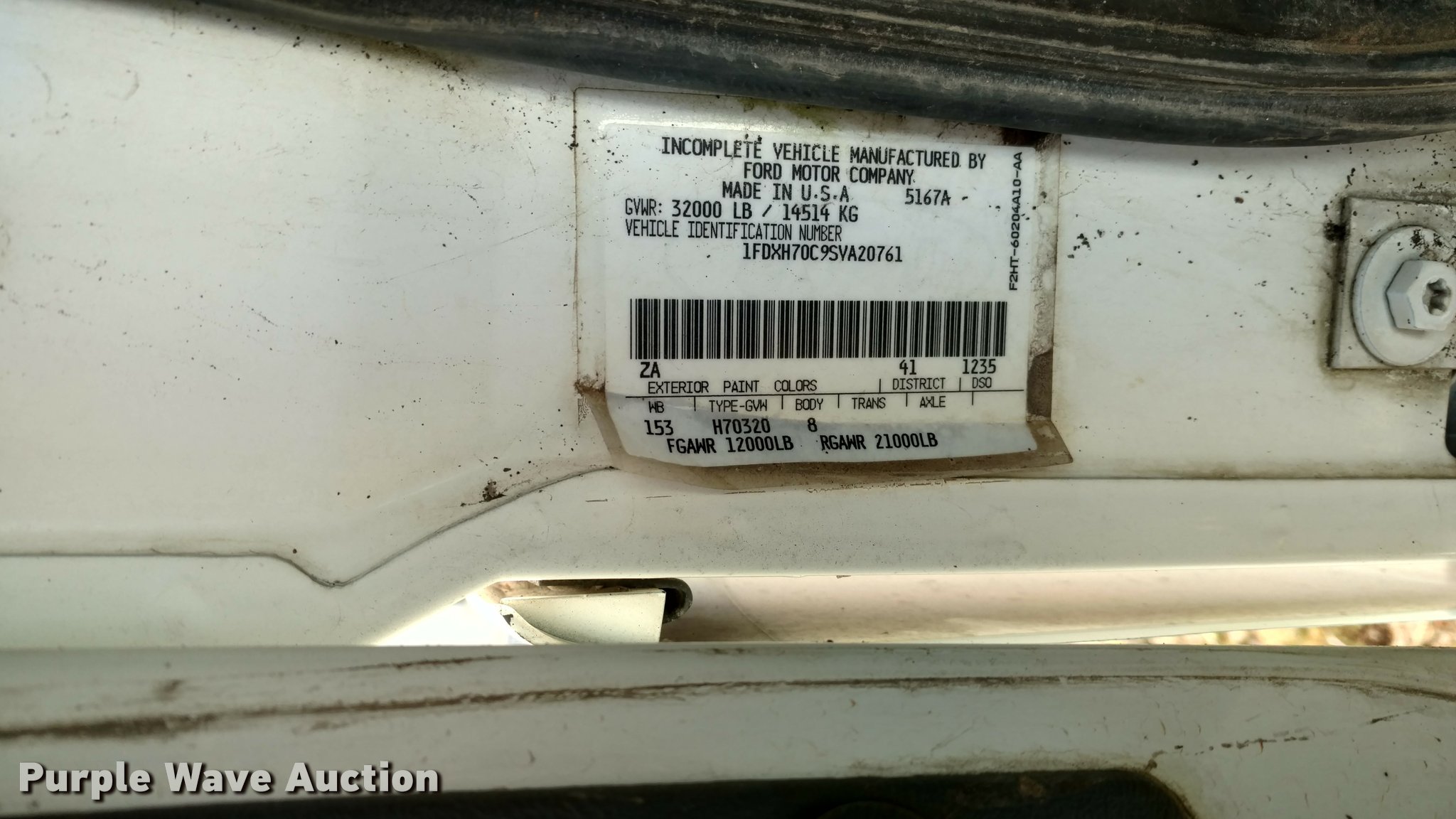 1995 Ford CF7000 Sum Vac III street sweeper truck. 62,581 miles on odometer, 9,693 hours on meter, Cummins ISB 5.9L L6 diesel engine, Automatic transmission, Heat, Manual windows and locks, Cloth interior, Sum-Vac bed Serial 94-125700, 11R22.5 tires, Parts missing, Non-operational unit, Vac drum in bed needs to be replaced, Unit has sat for two years. Kansas title. 1FDXH70C9SVA20761. City of Rose Hill. Rose Hill, KS 67133