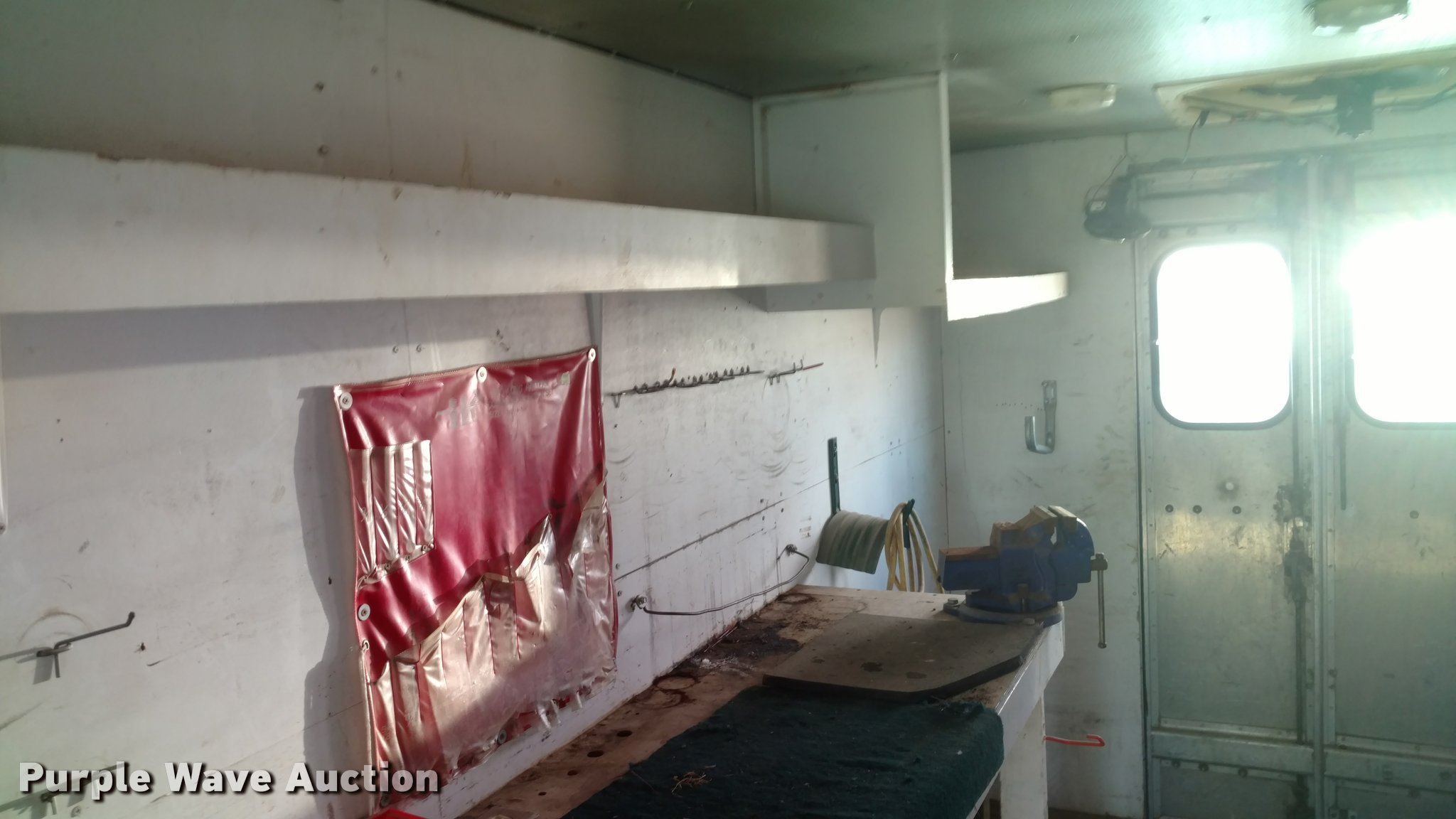 Purple Wave is selling a used Delivery Truck or Van in Kansas. This item is a 1982 Chevrolet P30 Grumman delivery van with the following: 147,540 miles on odometer, Four cylinder engine, Manual transmission, Manual windows and locks, Work bench, Shelving, Toolboxes, 8R19.5 tires, Needs a battery, Unit has sat for three and a half years