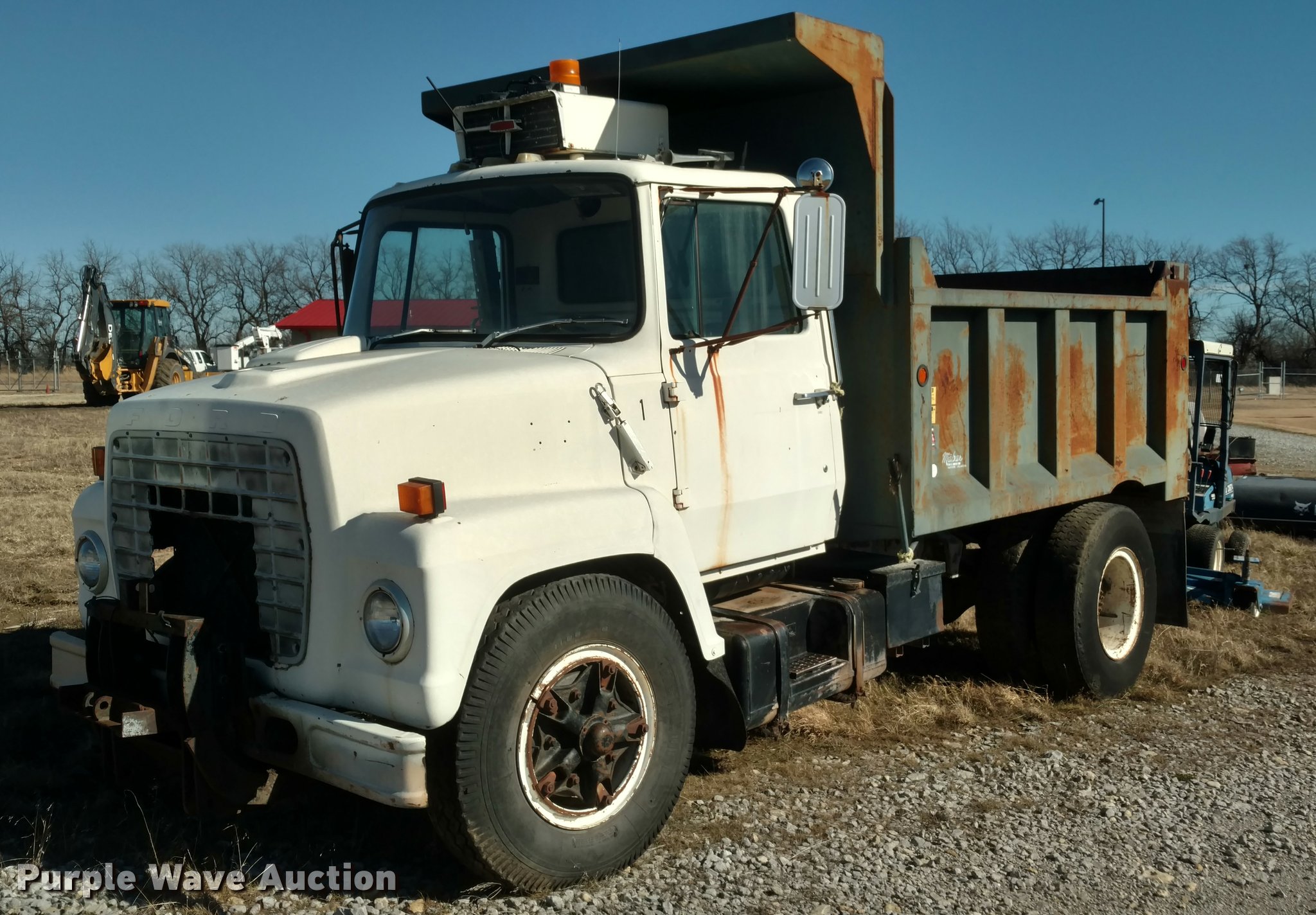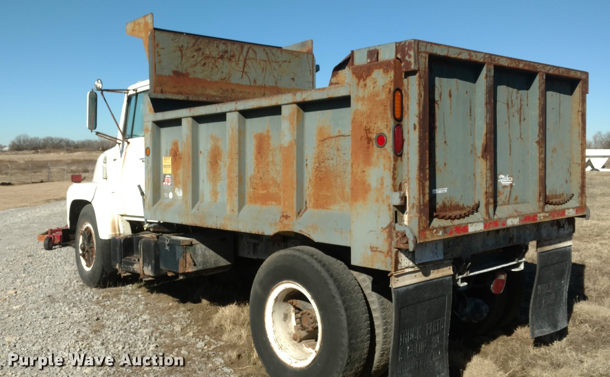Purple Wave is selling a used Construction Dump Truck in Kansas. This item is a 1980 Ford F800 dump truck with the following: 9,284 miles on odometer, Actual mileage unknown, Caterpillar 3208 diesel engine, 10 speed manual transmission, Two speed rear end, Manual windows and locks, Mabar 10 dump bed, Spring suspension, Air brakes, 20" tires, Unit has sat for several years
