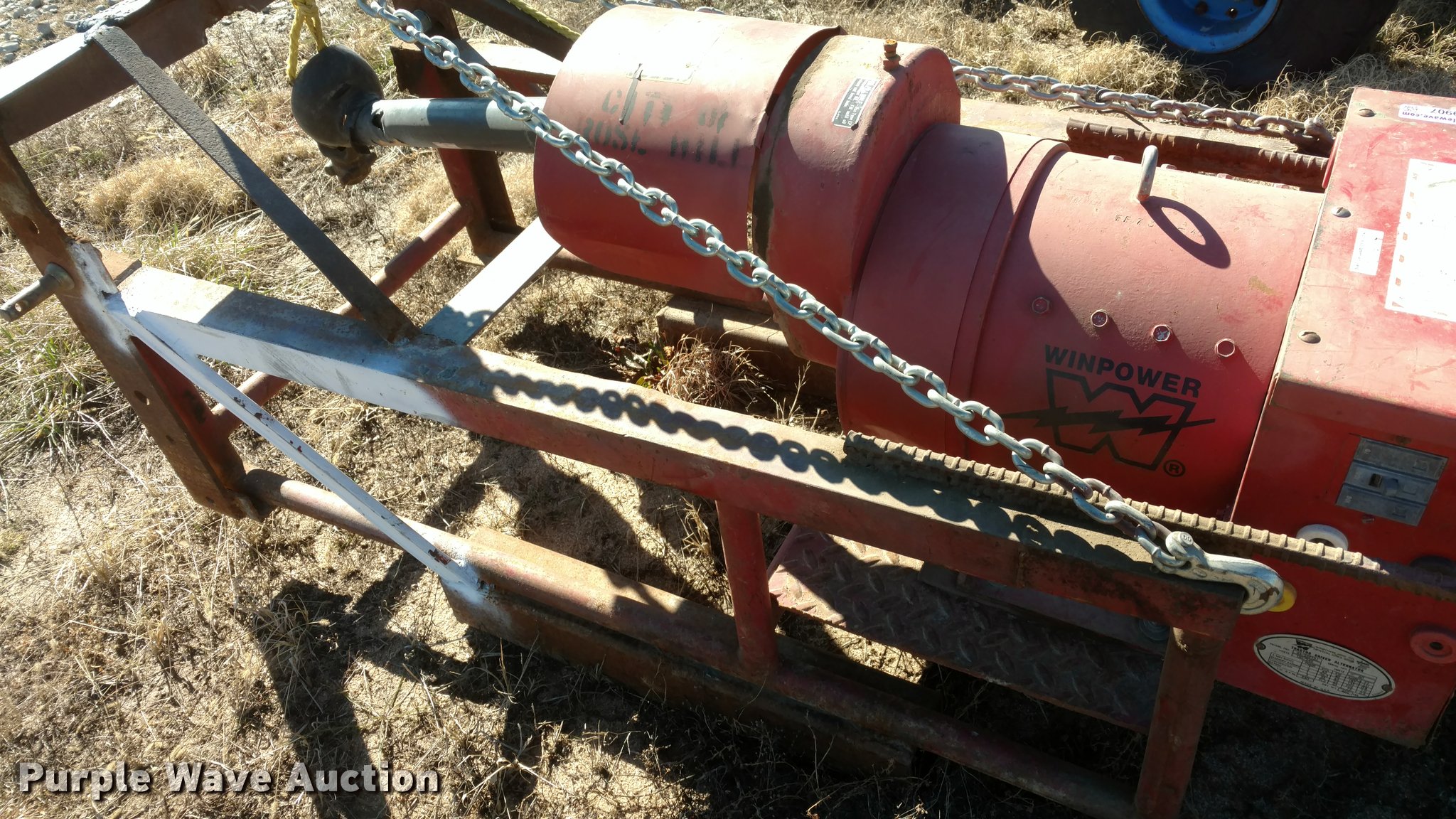 Purple Wave is selling a used Generator Set in Kansas. This item is a Winpower 45/25PT3J generator with the following: 120/240V, 540 PTO, Three point