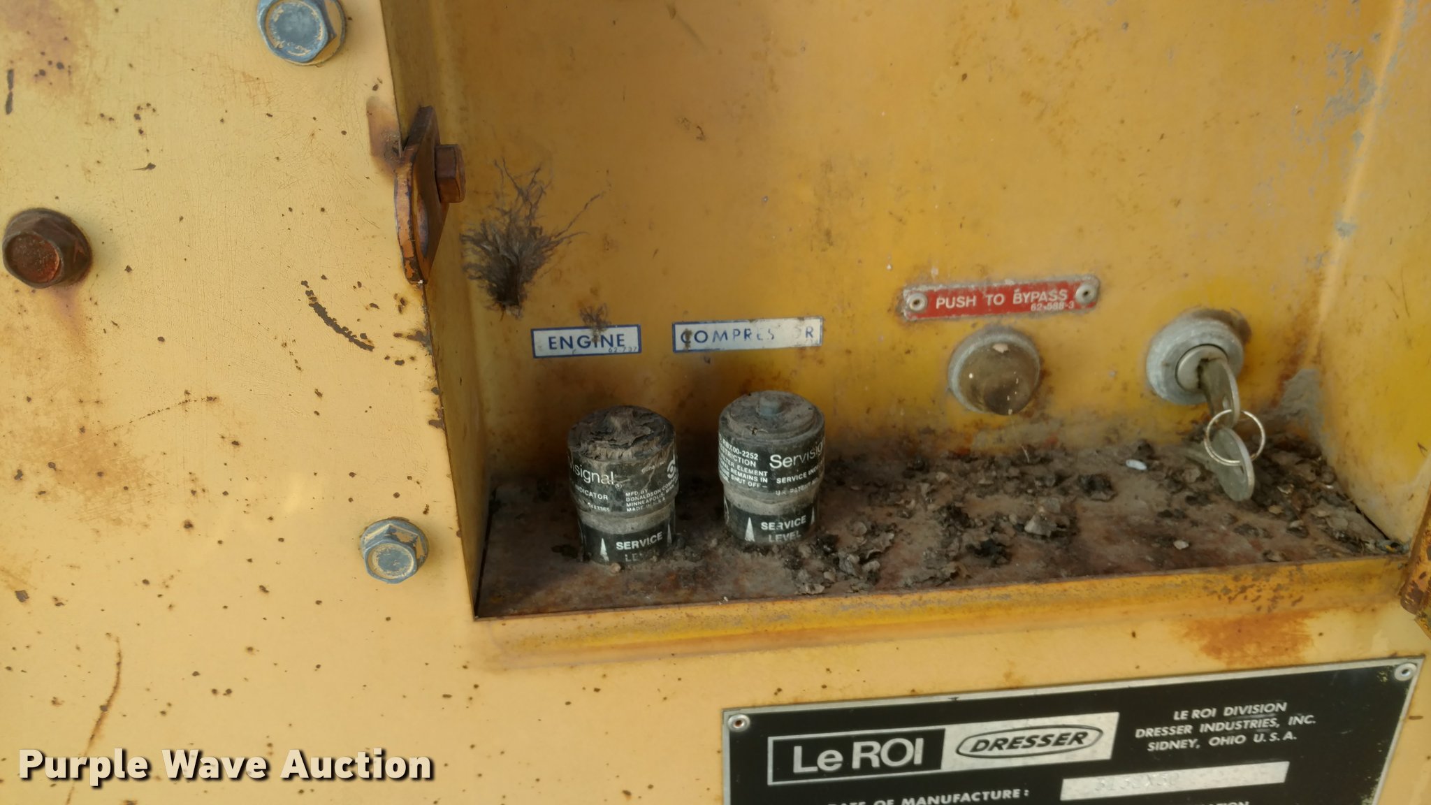 Leroi/Dresser 123 air compressor. 1,741 hours on meter, Four cylinder gas engine, Parts missing, Non-operational unit, Unit has sat for several years. This is worksite support equipment and will not come with a title. 3132X30. City of Rose Hill. Rose Hill, KS 67133
