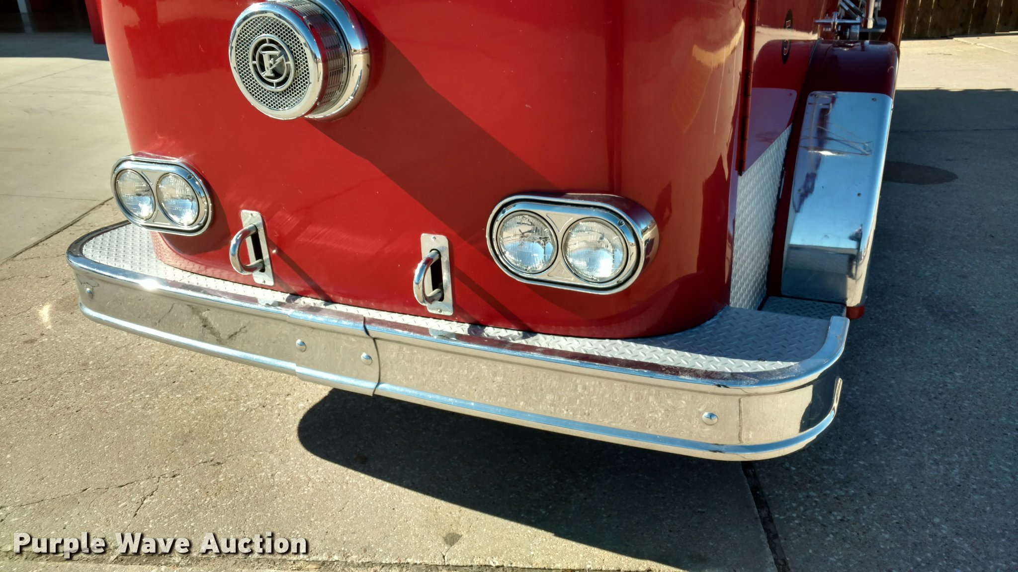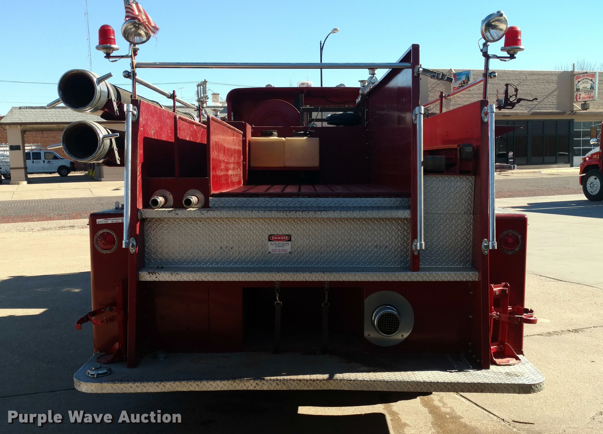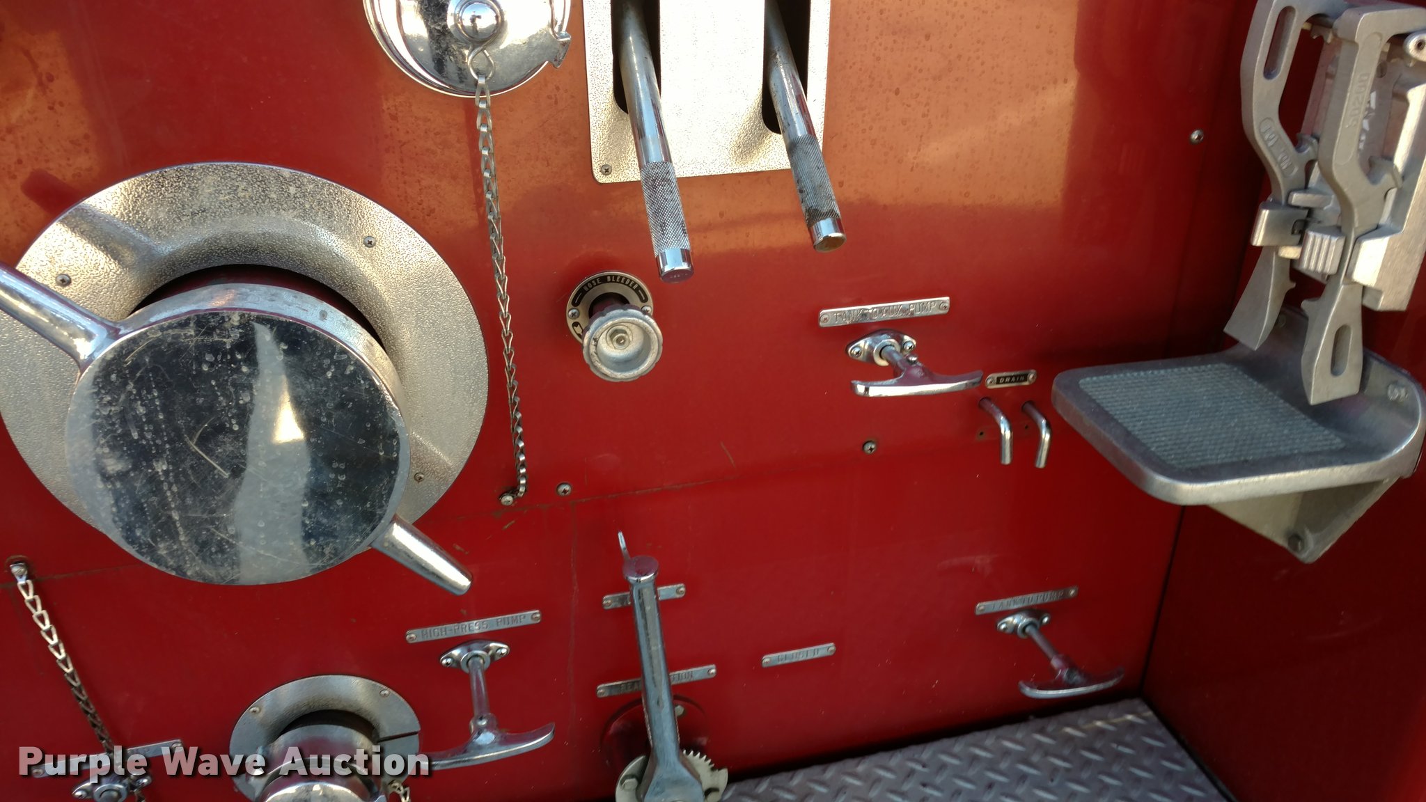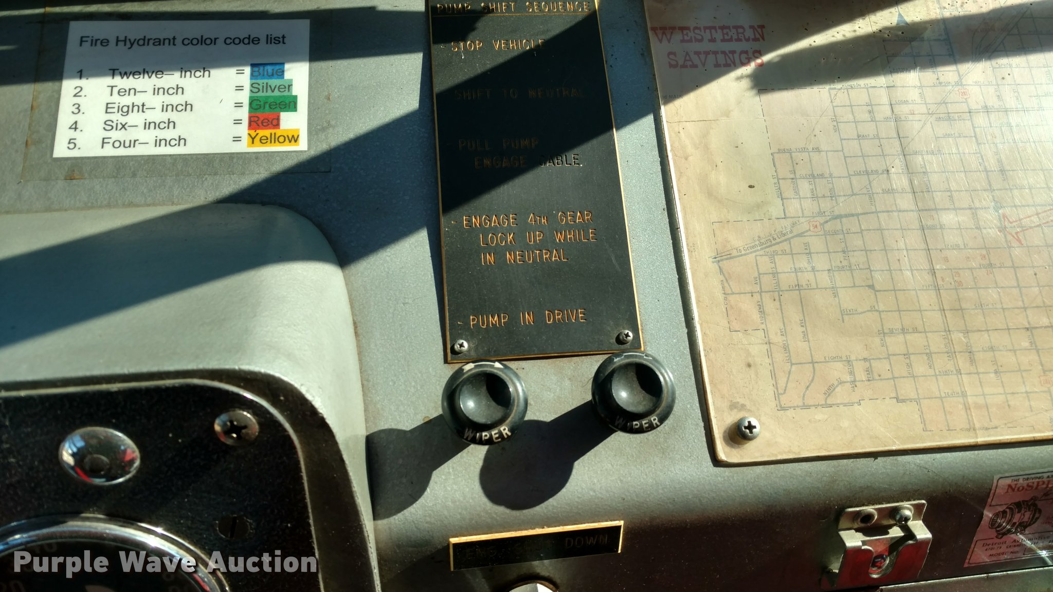 Purple Wave is selling a used Fire Truck or Emergency Vehicle in Kansas. This item is a Seagrave fire truck with the following: 7,920 miles on odometer, 974 hours on meter, Detroit Diesel diesel engine, Automatic transmission, Manual windows and locks, Vinyl interior, (2) sections of hard suction hoses, Booster lines, 1,000 gpm pump, 10.3-20 front tires, 9.00-20 rear tires, Power steering issues, Serial P-9145