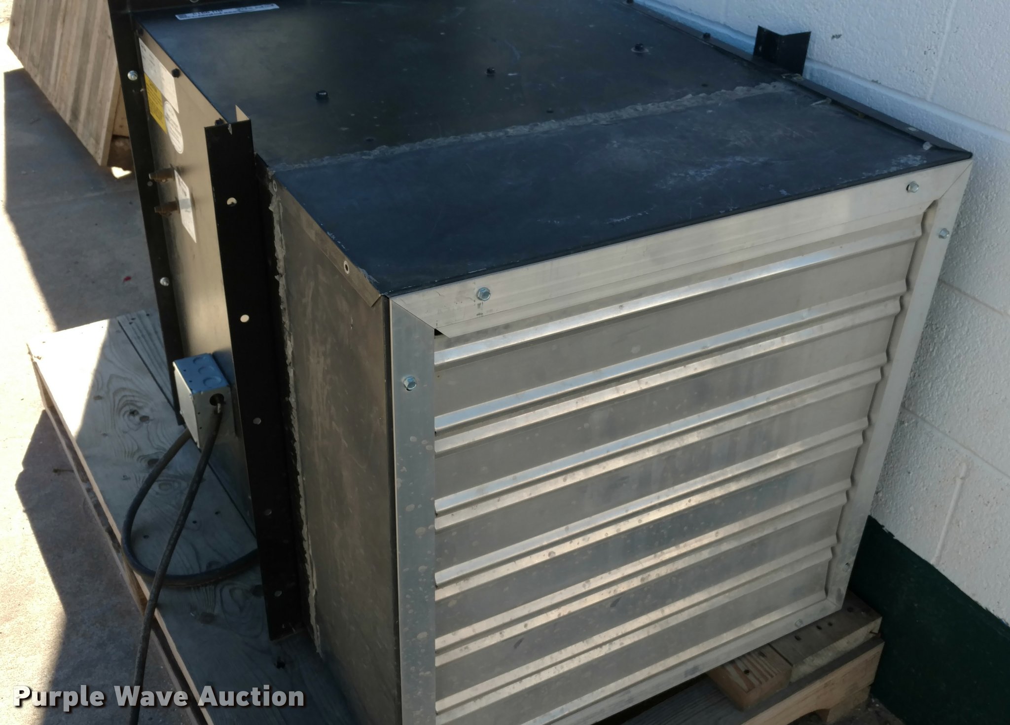 Purple Wave is selling a used Tools in Kansas. This item is a Twin City WPB-E-24E4-32 exhaust fan with the following: 240V, 30"