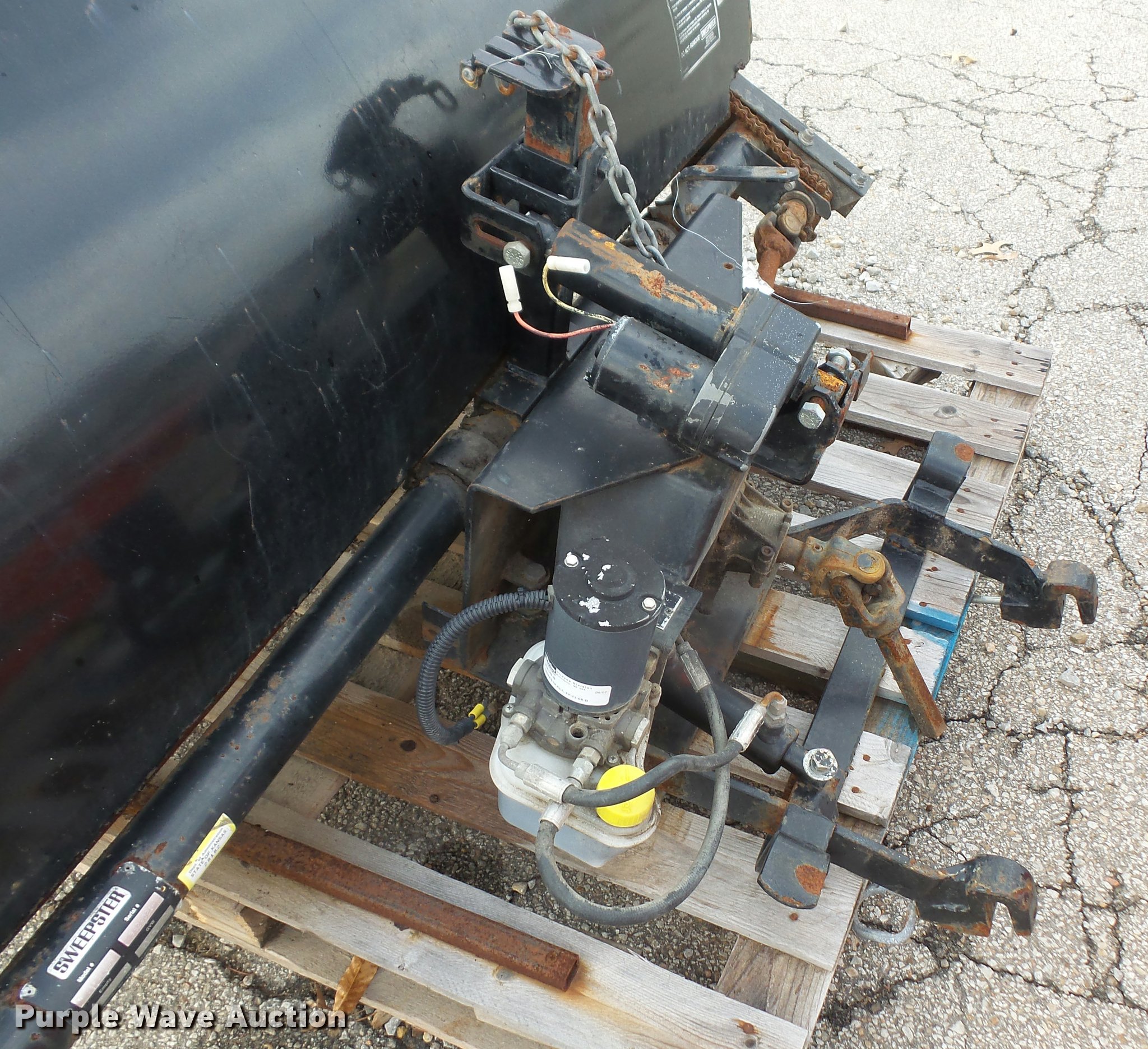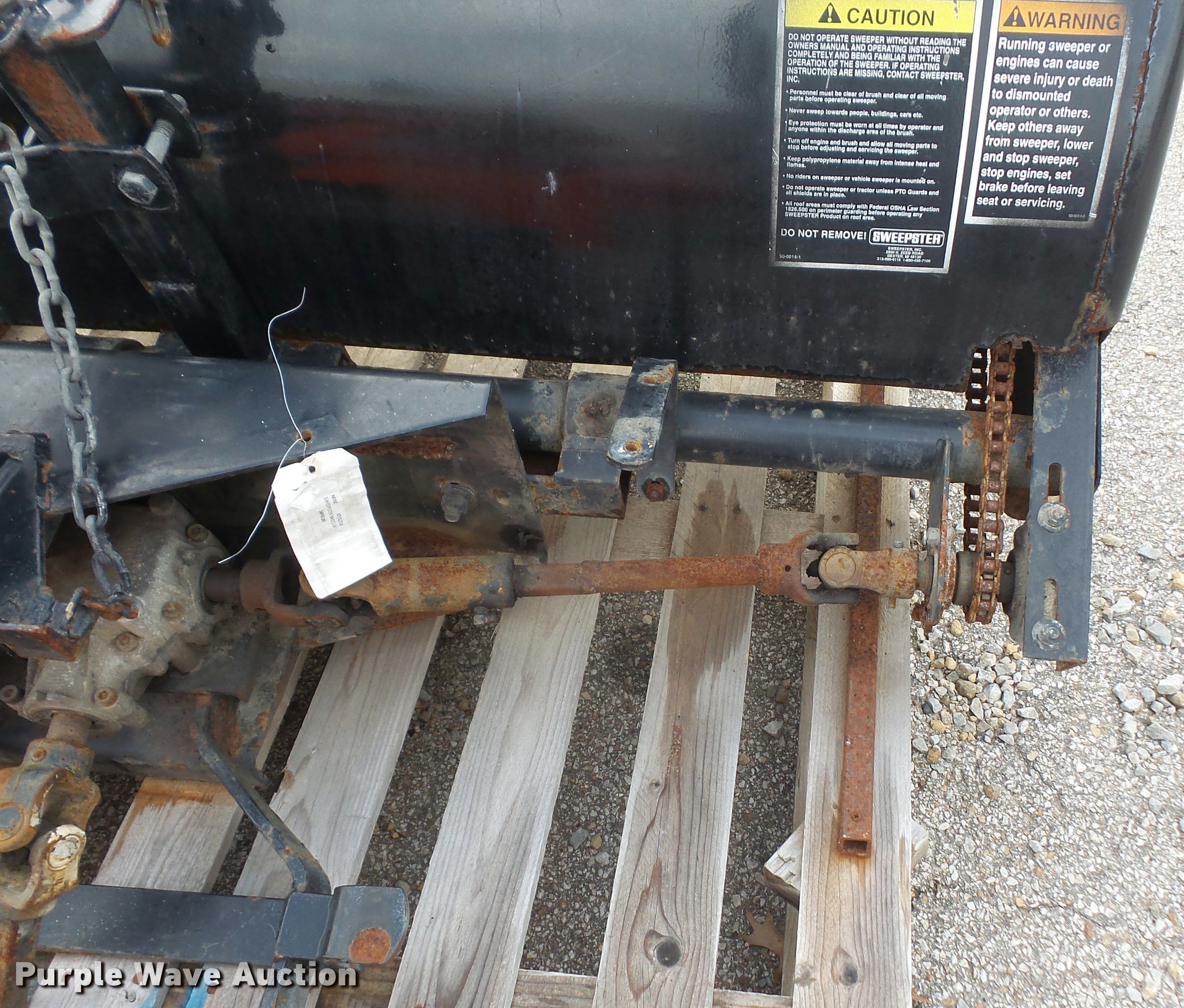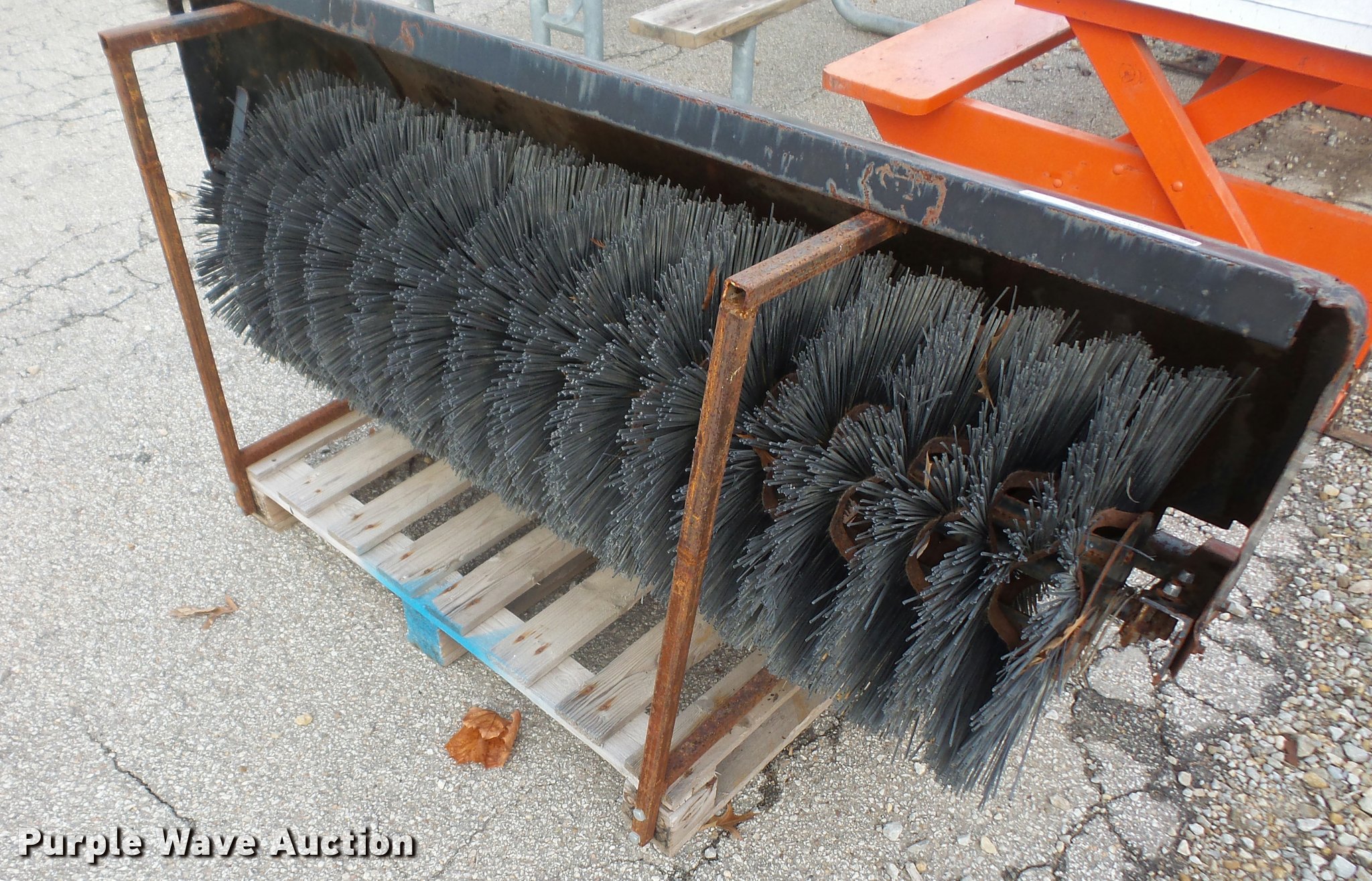 Purple Wave is selling a used Broom in Kansas. This item is a Sweepster power broom with the following: Model M24P5FM0R, 60"W, Grasshopper mower attachment, Unknown operating condition