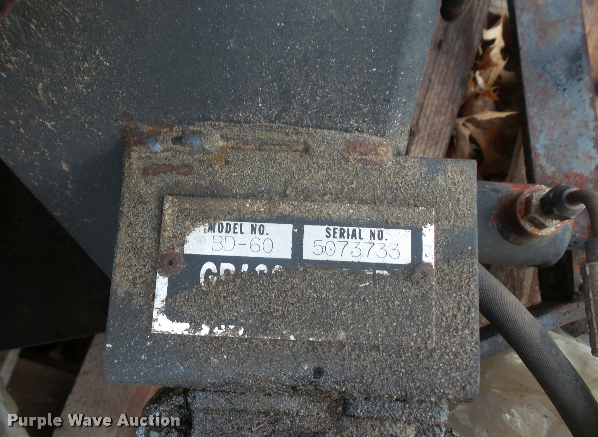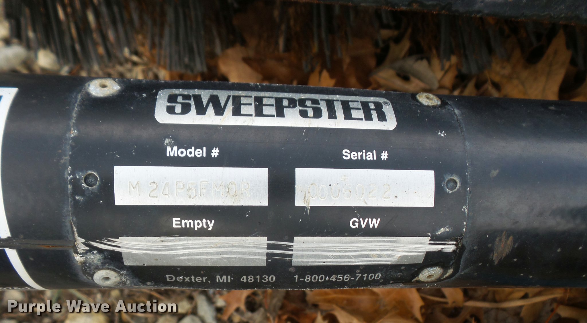Purple Wave is selling a used Broom in Kansas. This item is a Sweepster power broom with the following: Model M24P5FM0R, 60"W, Grasshopper mower attachment, Drive chain removed, Unknown operating condition, Serial 0006022