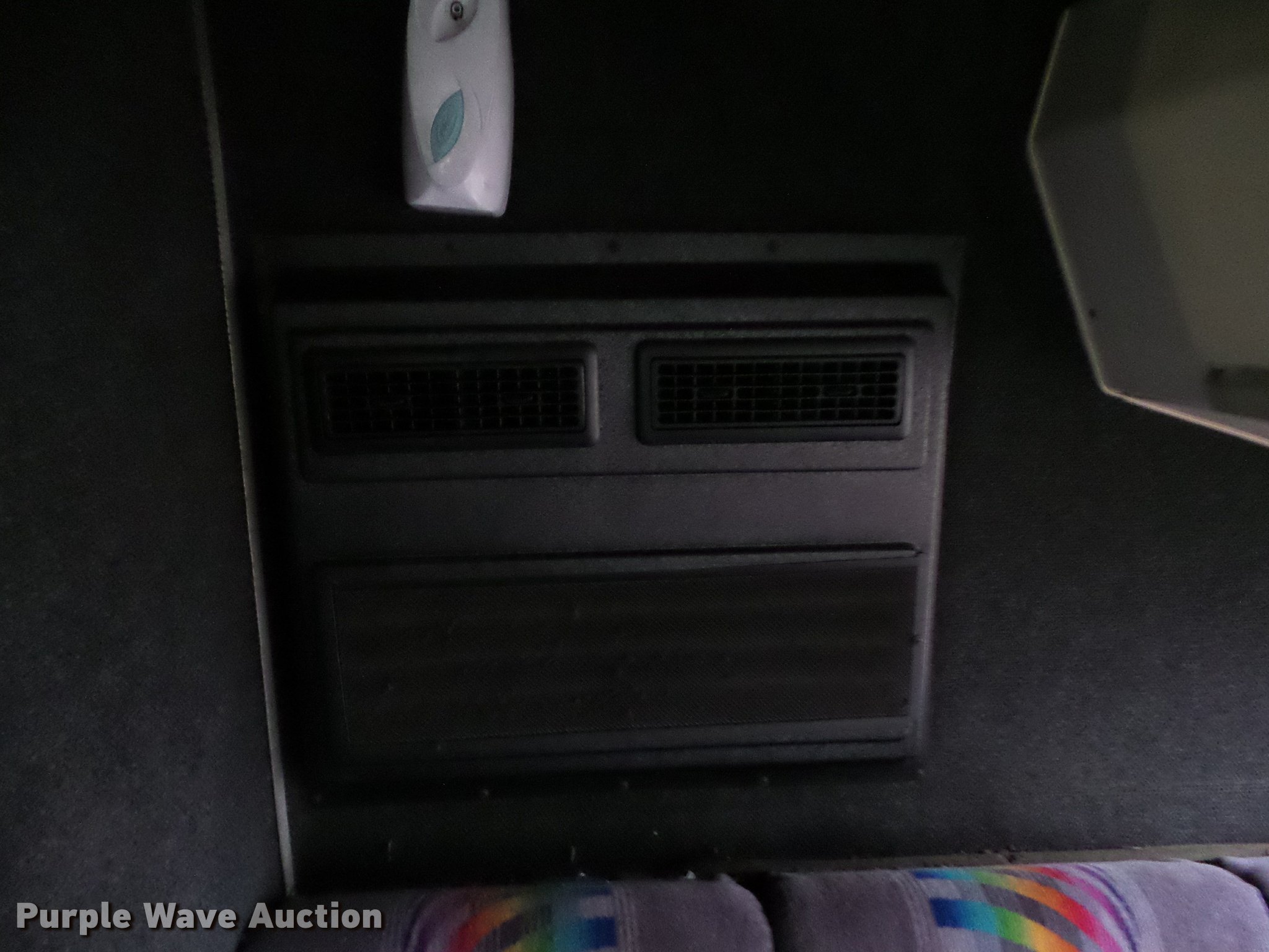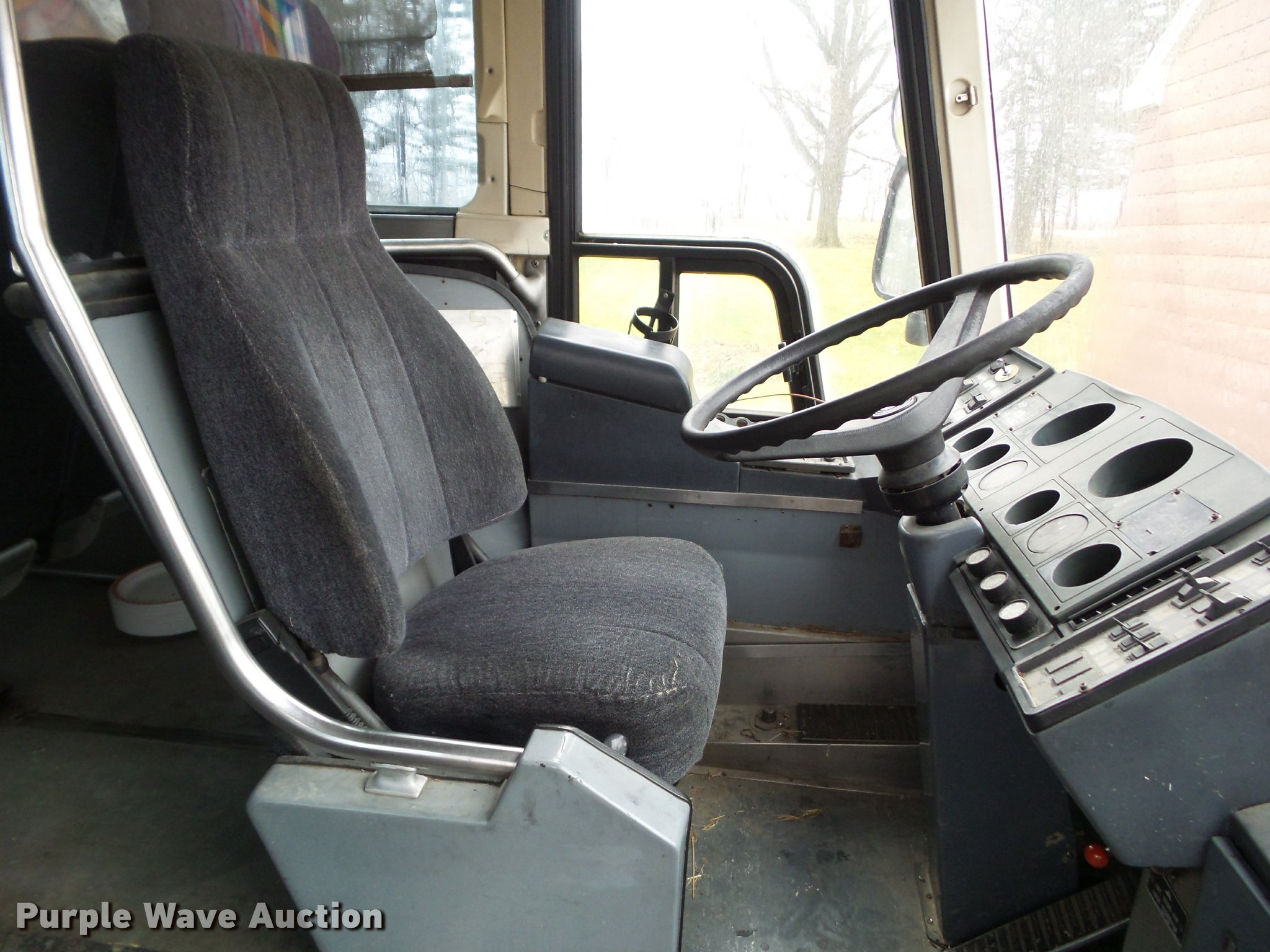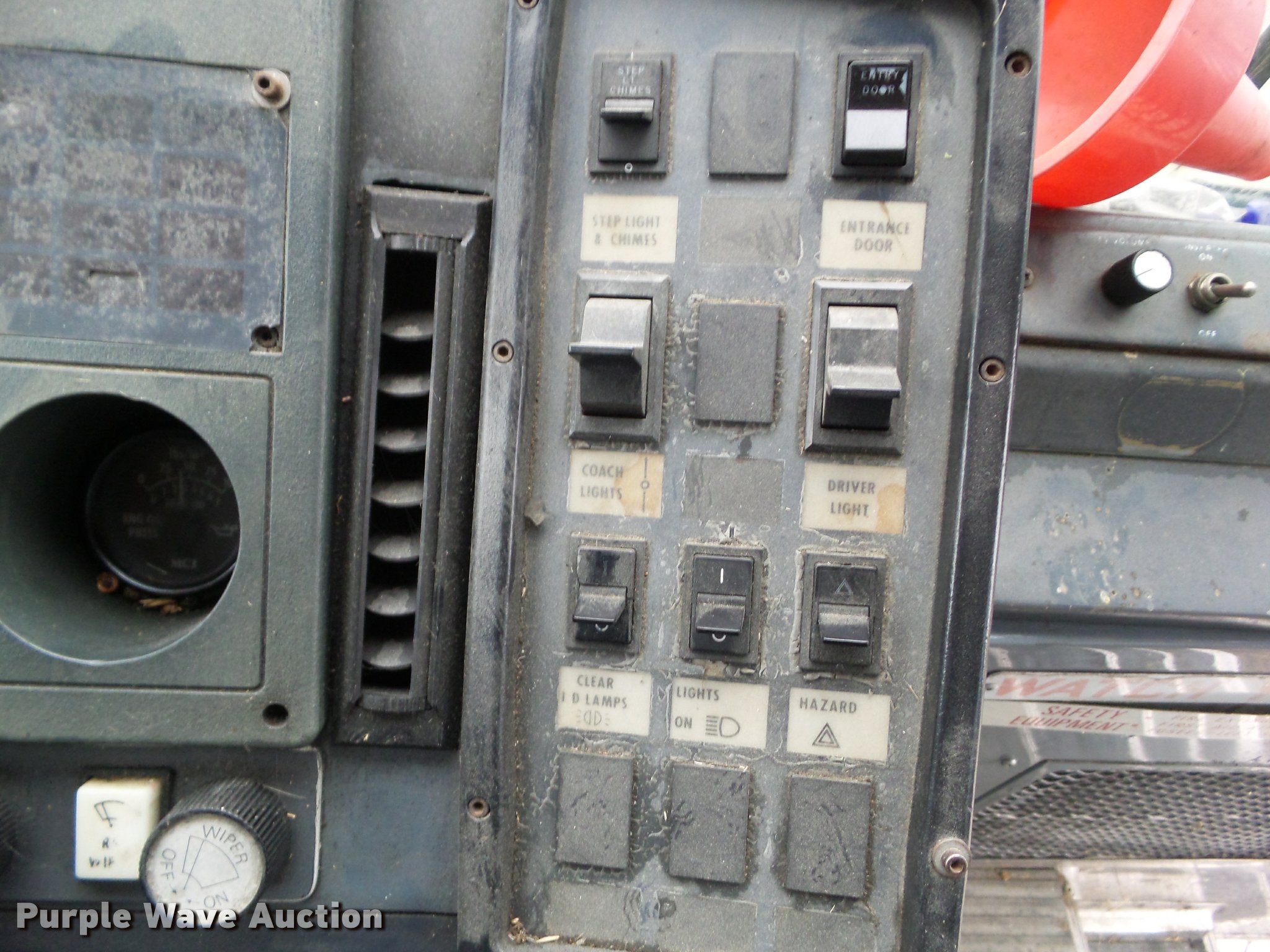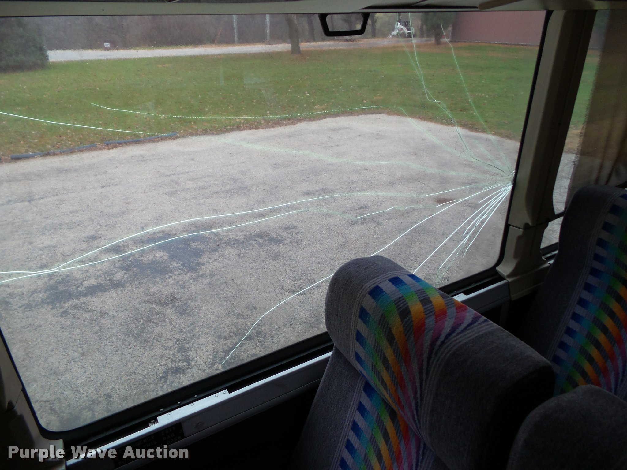Purple Wave is selling a used Bus in Iowa. This item is a 1986 MCI 102A3 bus with the following: Detroit Diesel 6V-92TA 9.0L L6 turbo diesel engine, Automatic transmission, Tandem axle, AC and heat, 47 passenger capacity, On-board restroom, Overhead storage, Stanley 800 watt converter, GE refrigerator, Ceiling and side emergency exits, Underside luggage storage, 285" wheelbase, Air suspension, Air brakes, Goodyear 315/80R22.5 tires, Window cracked, No odometer