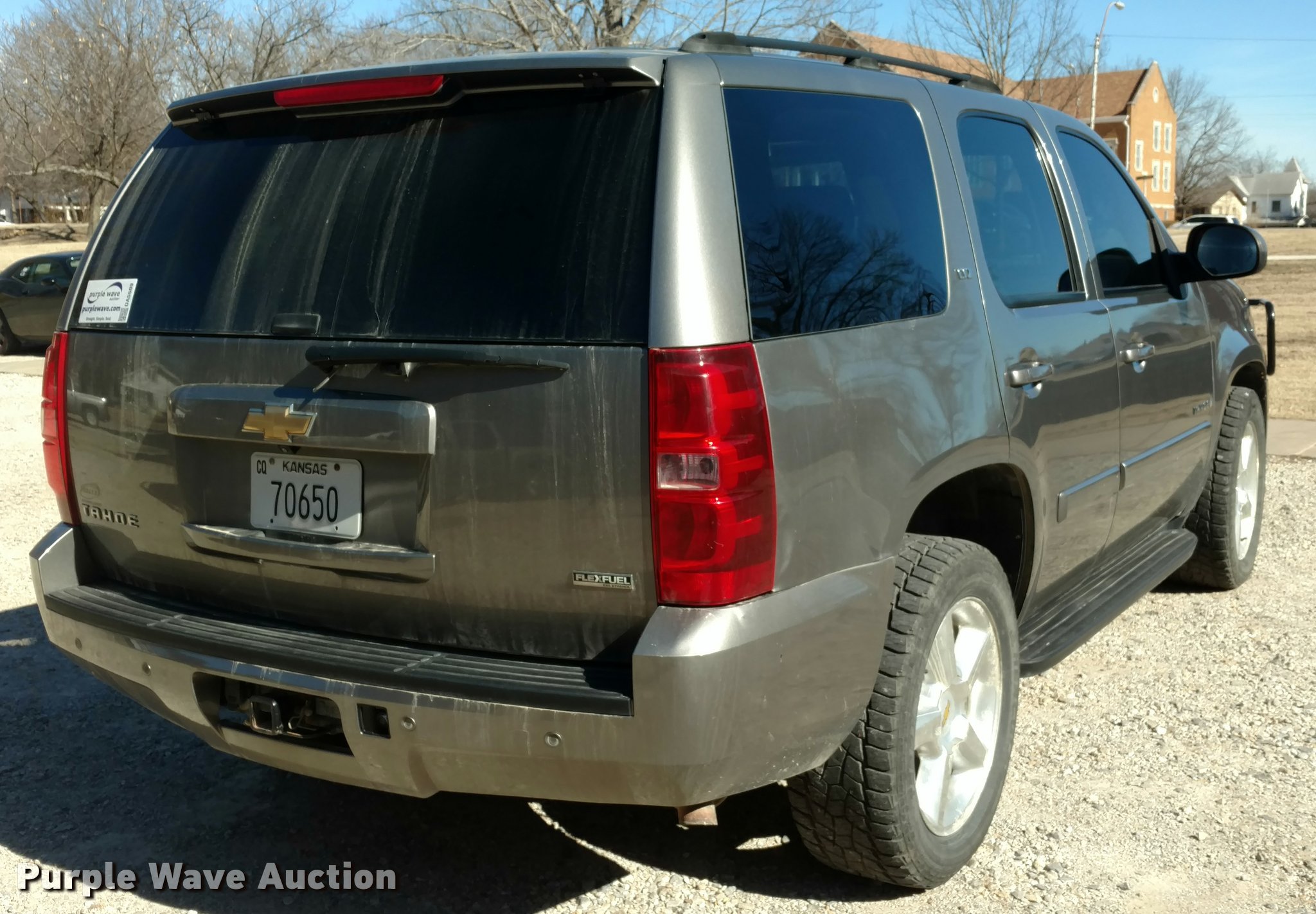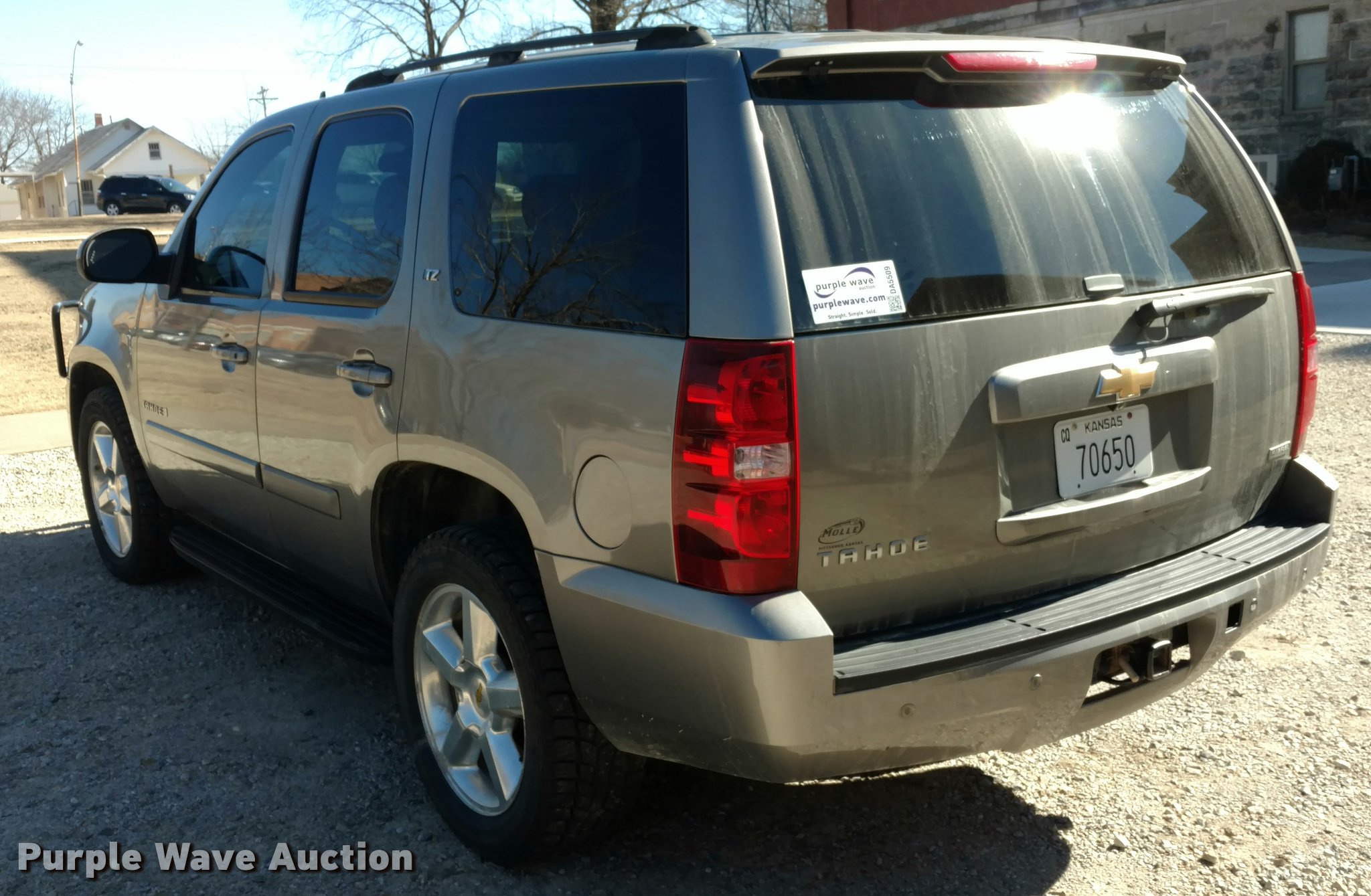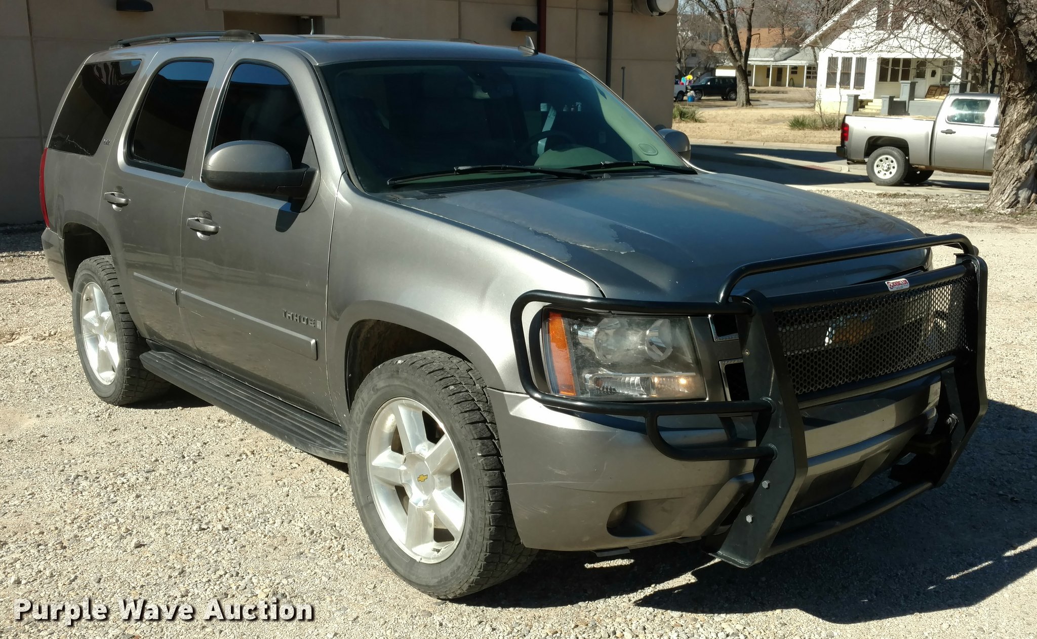 Purple Wave is selling a used Passenger Vehicle in Kansas. This item is a 2007 Chevrolet Tahoe LTZ SUV with the following: 147,383 miles on odometer, 5.3L V8 OHV 16V FFV gas engine, Automatic transmission, Four wheel drive, AC and heat, Tilt, Cruise, AM/FM/CD, Leather interior, 275/55R20 tires, Rear air shocks need to be replaced, Fuel door release button needs to be replaced, Check engine light on