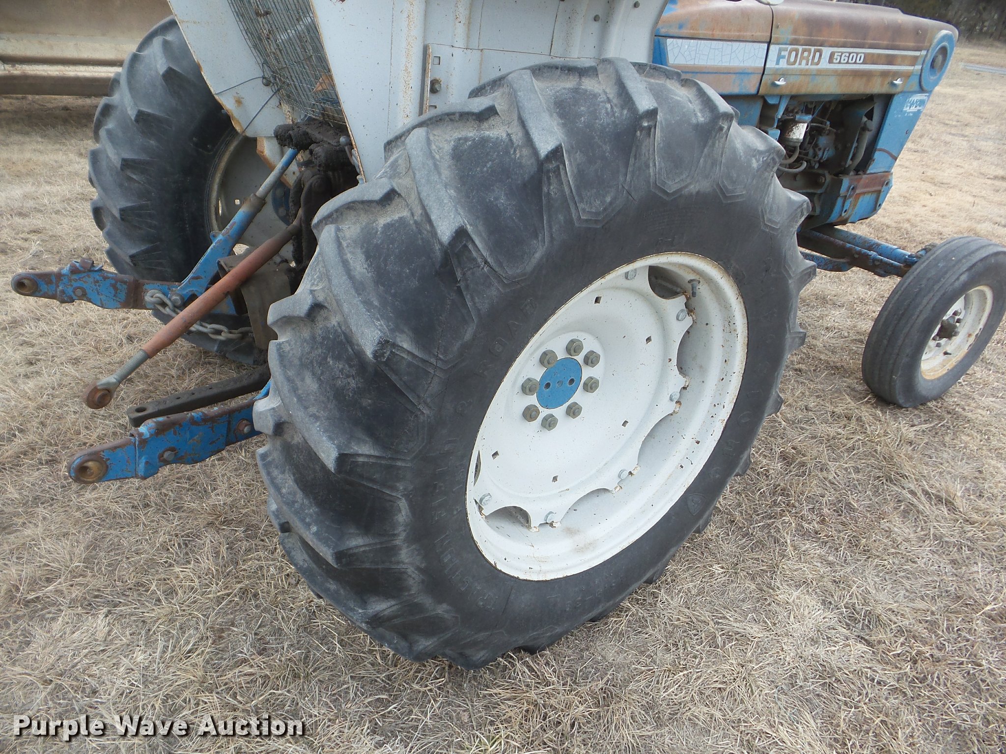 Purple Wave is selling a used Tractor in Kansas. This item is a Ford 5600 tractor with the following: 7,106 hours on meter, Four cylinder diesel engine, Manual transmission, 8F-2R gears, Suspension seat, Three point, 540 PTO, (2) rear hydraulic remote sets, 7.50-16 front tires, 16.9-30 rear tires, Seal between transmission and rear end needs to be replaced