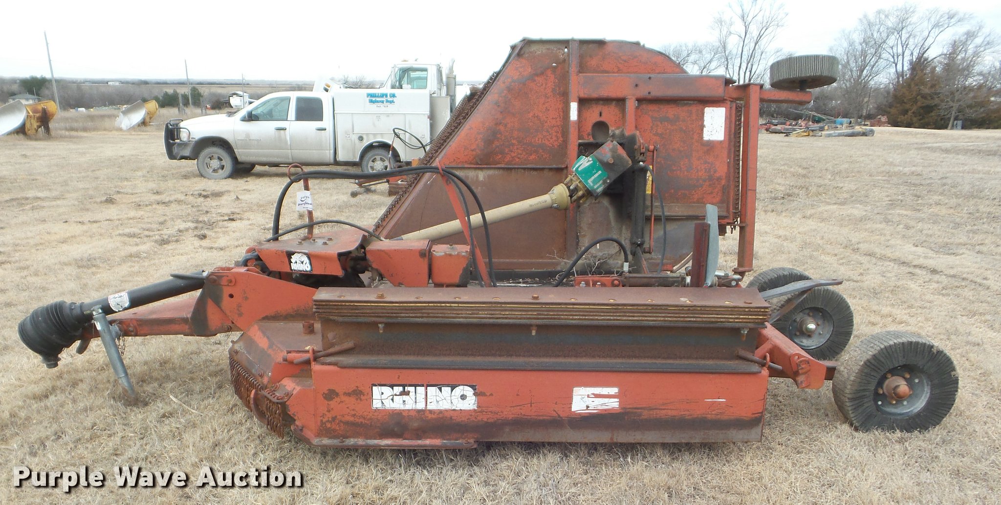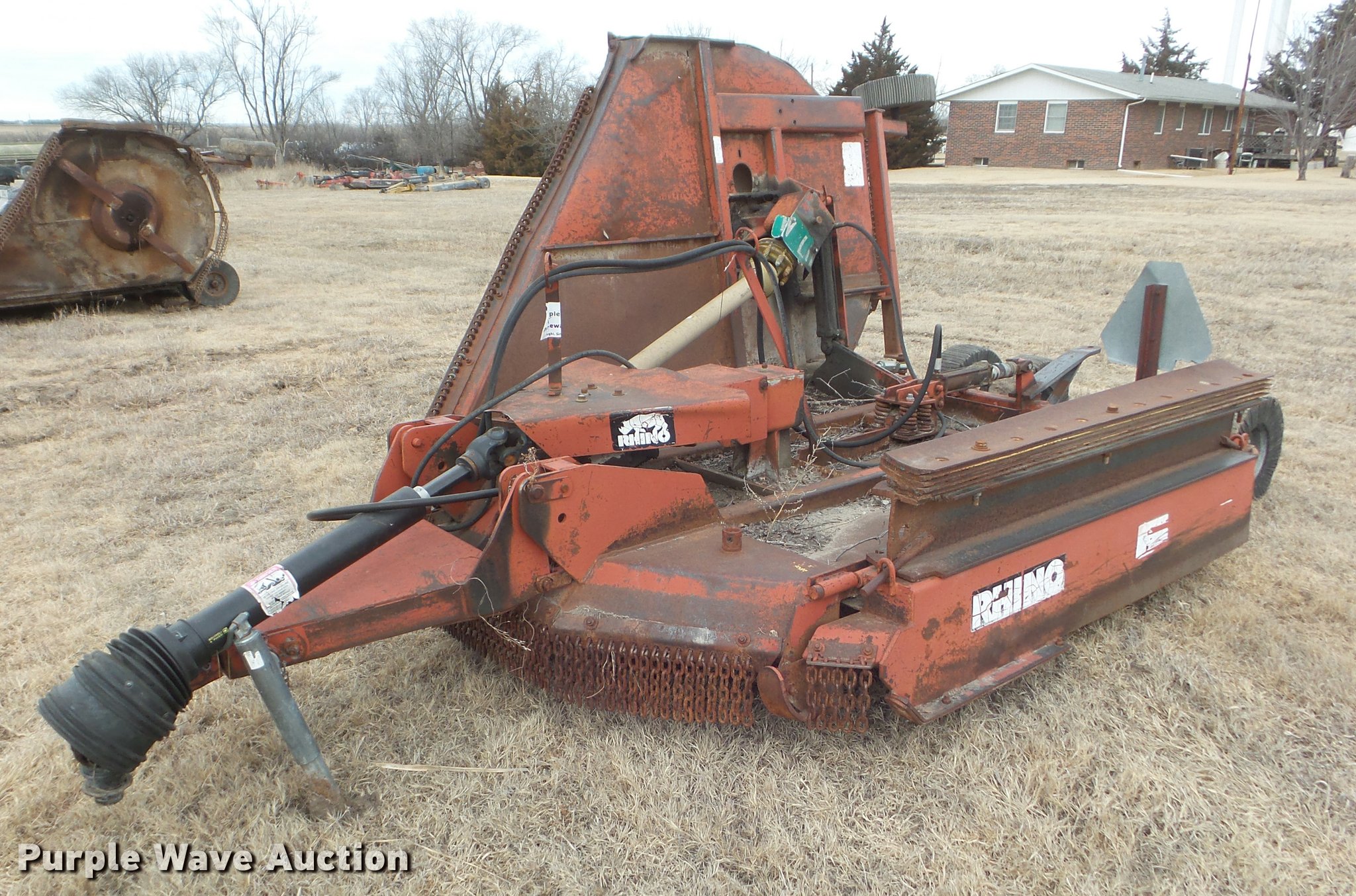 Purple Wave is selling a used Mower, Cutter, Shredder in Kansas. This item is a Rhino SR10M rotary mower with the following: 10'W, Hydraulic fold and lower, Counterweight, 540 PTO, Pin hitch, 10" wheels, Unit# 3