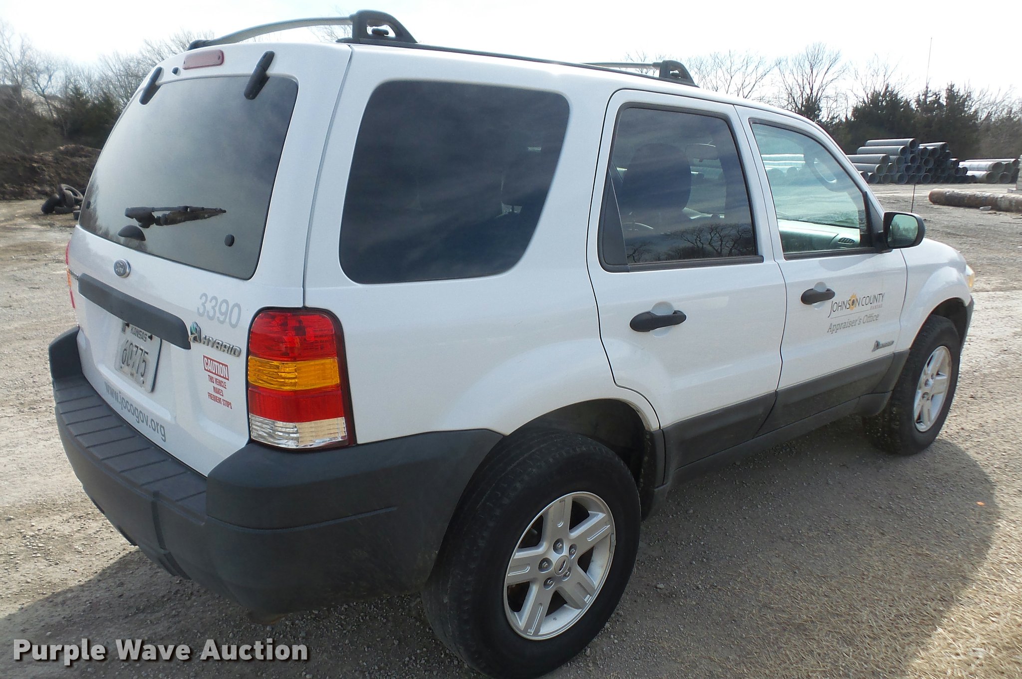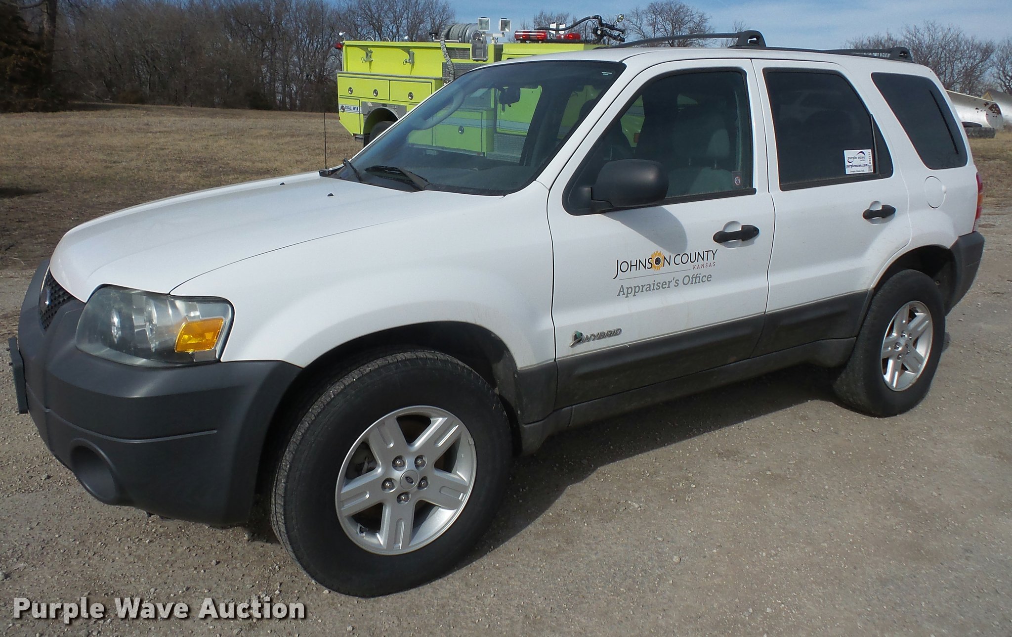 Purple Wave is selling a used Passenger Vehicle in Kansas. This item is a 2005 Ford Escape Hybrid SUV with the following: 87,480 miles on odometer, 2.3L L4 DOHC 16V hybrid gas engine, Automatic transmission, AC and heat, Tilt, Cruise, AM/FM/CD, Power windows, locks, mirrors, and seat, Cloth interior, 235/70R16 tires, Decals will be removed prior to auction, Brake issues, ABS brake controller needs replaced, Unit# APR3390