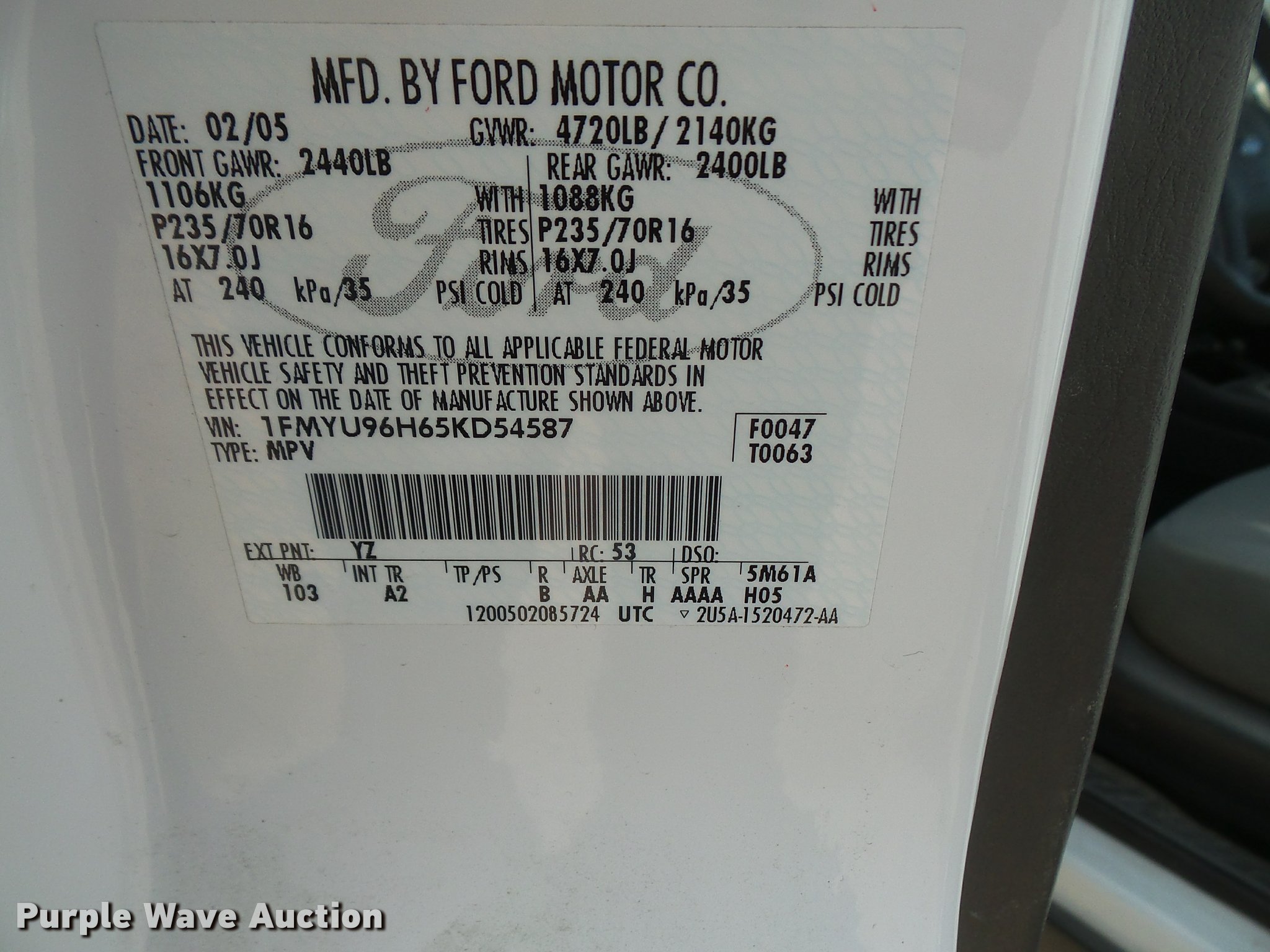 1FMYU96H65KD54587