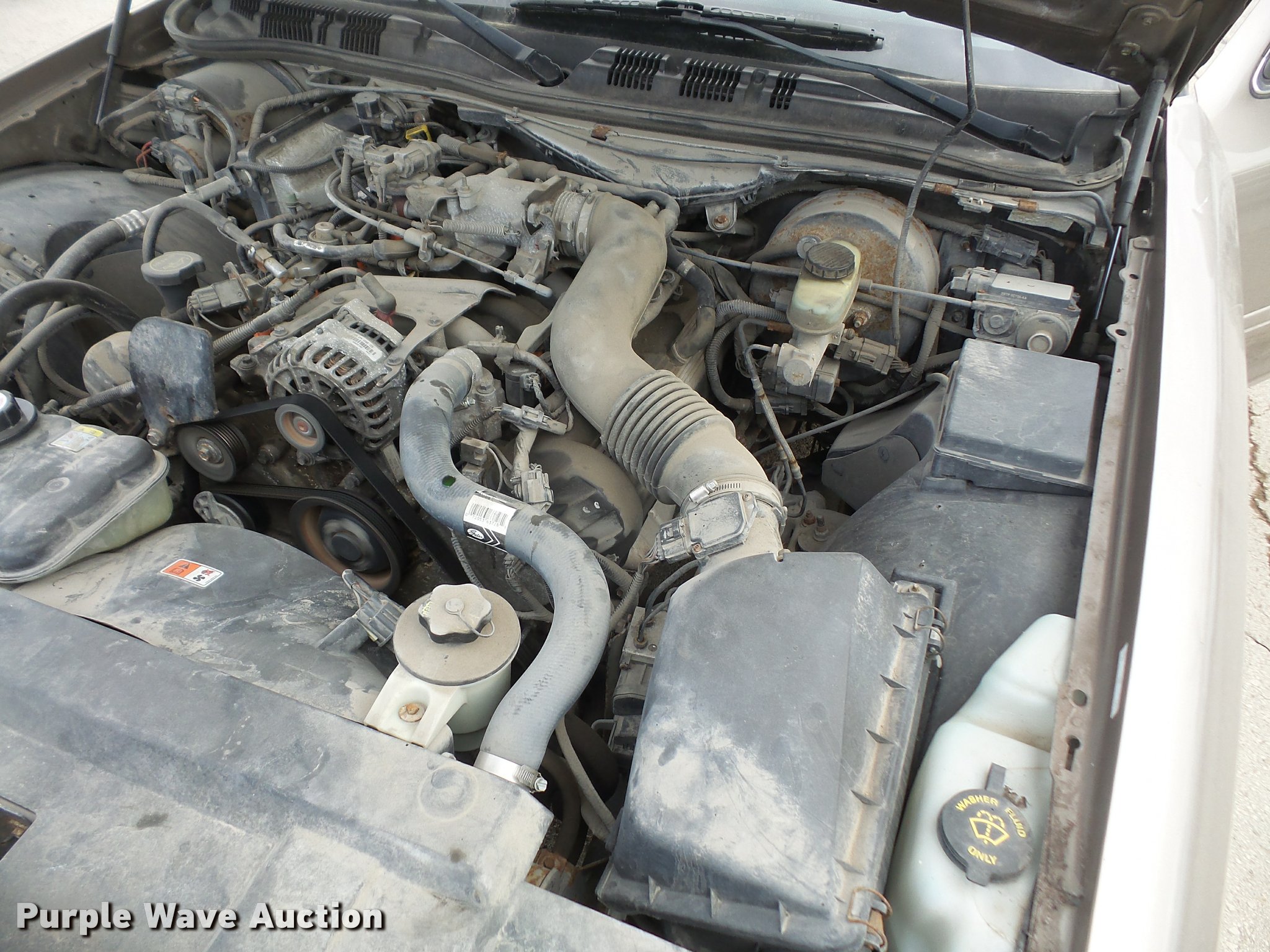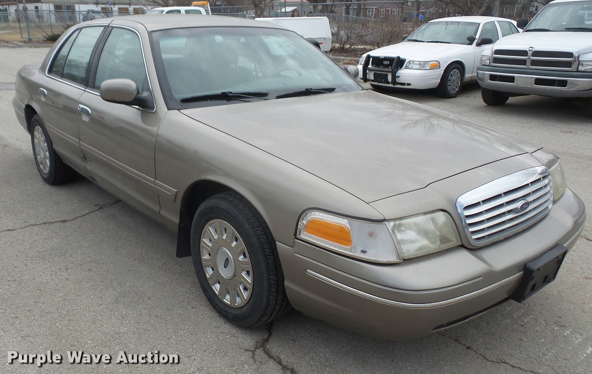 Purple Wave is selling a used Passenger Vehicle in Kansas. This item is a 2003 Ford Crown Victoria Police Interceptor with the following: 130,639 miles on odometer, 4.6L V8 SOHC 16V gas engine, Automatic transmission, AC and heat, Tilt, Cruise, AM/FM, Power windows, locks, and mirrors, Cloth interior, 225/60R16 tires, Water pump leaks and needs to be replaced, Alternator makes noise, Passenger side door damage, Unit# 775