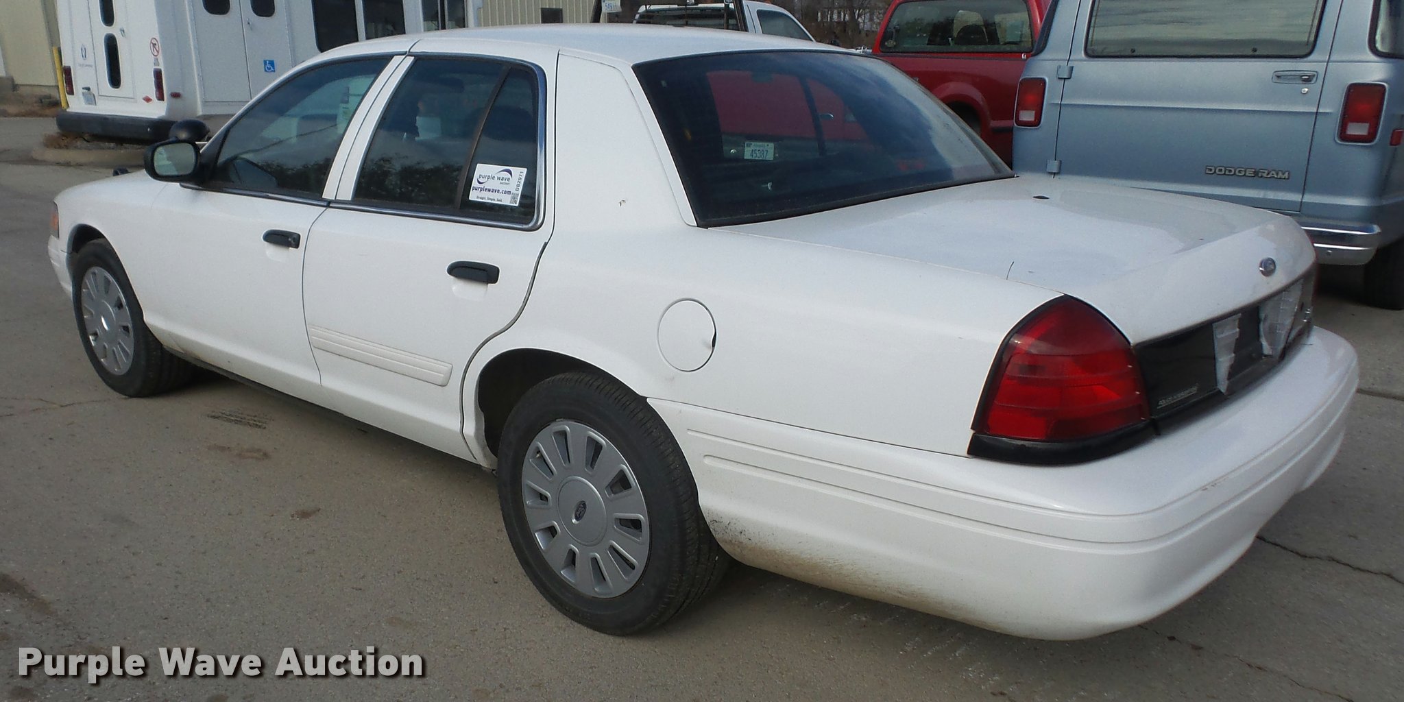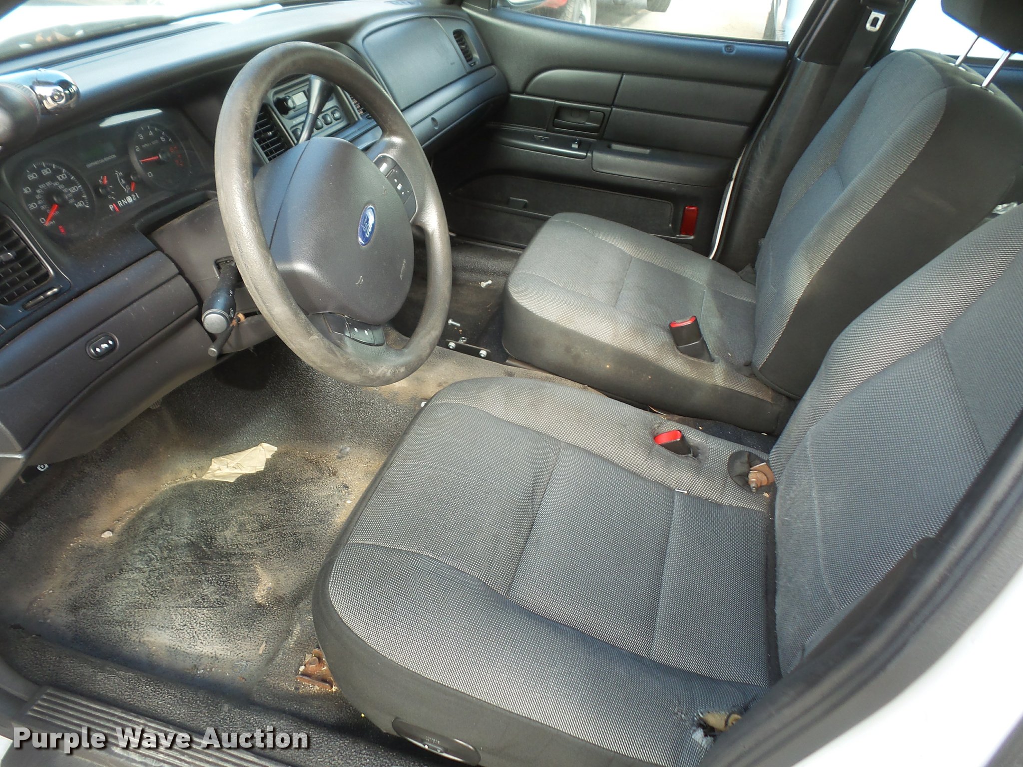 Purple Wave is selling a used Passenger Vehicle in Kansas. This item is a 2010 Ford Crown Victoria Police Interceptor with the following: 95,070 miles on odometer, 4.6L V8 SOHC 16V FFV gas engine, Automatic transmission, AC and heat, Tilt, Cruise, AM/FM, Power windows, locks, mirrors, and seat, Cloth interior, Spotlight, Push bar, 235/55R17 tires, Dead battery, Unit# 071