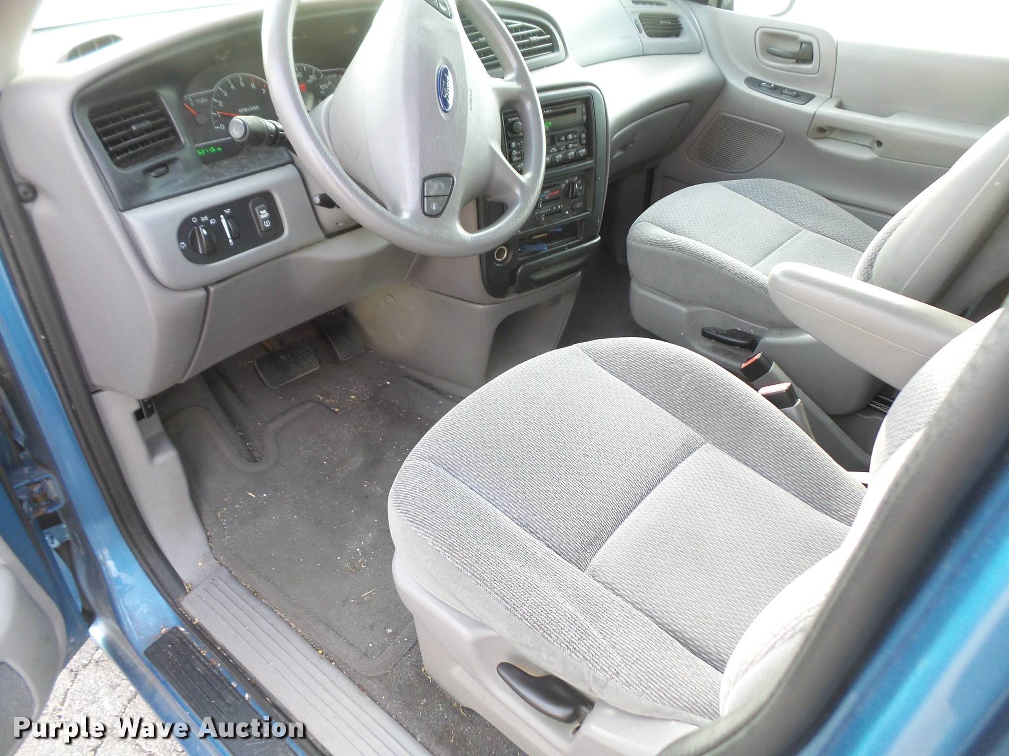 Purple Wave is selling a used Passenger Vehicle in Kansas. This item is a 2001 Ford Windstar van with the following: 105,211 miles on odometer, 3.8L V6 OHV 12V gas engine, Automatic transmission, AC and heat, Tilt, Cruise, AM/FM/CD/cassette, Power windows, locks, and mirrors, Cloth interior, 215/70R15 tires, Dead battery, Decals will be removed prior to auction