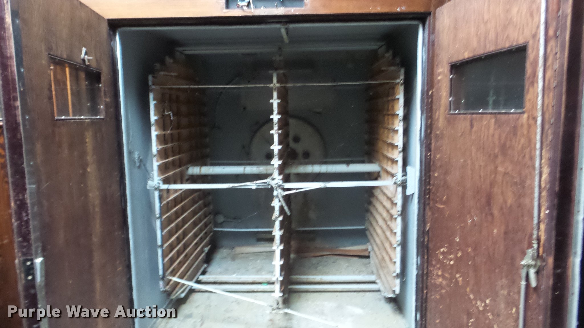 Purple Wave is selling a used Livestock Equip. in Kansas. This item is a Robbins hatchery incubator with the following: Approximately 11' x 7' x 7'H, Four door, Unknown operating condition, Control plates missing