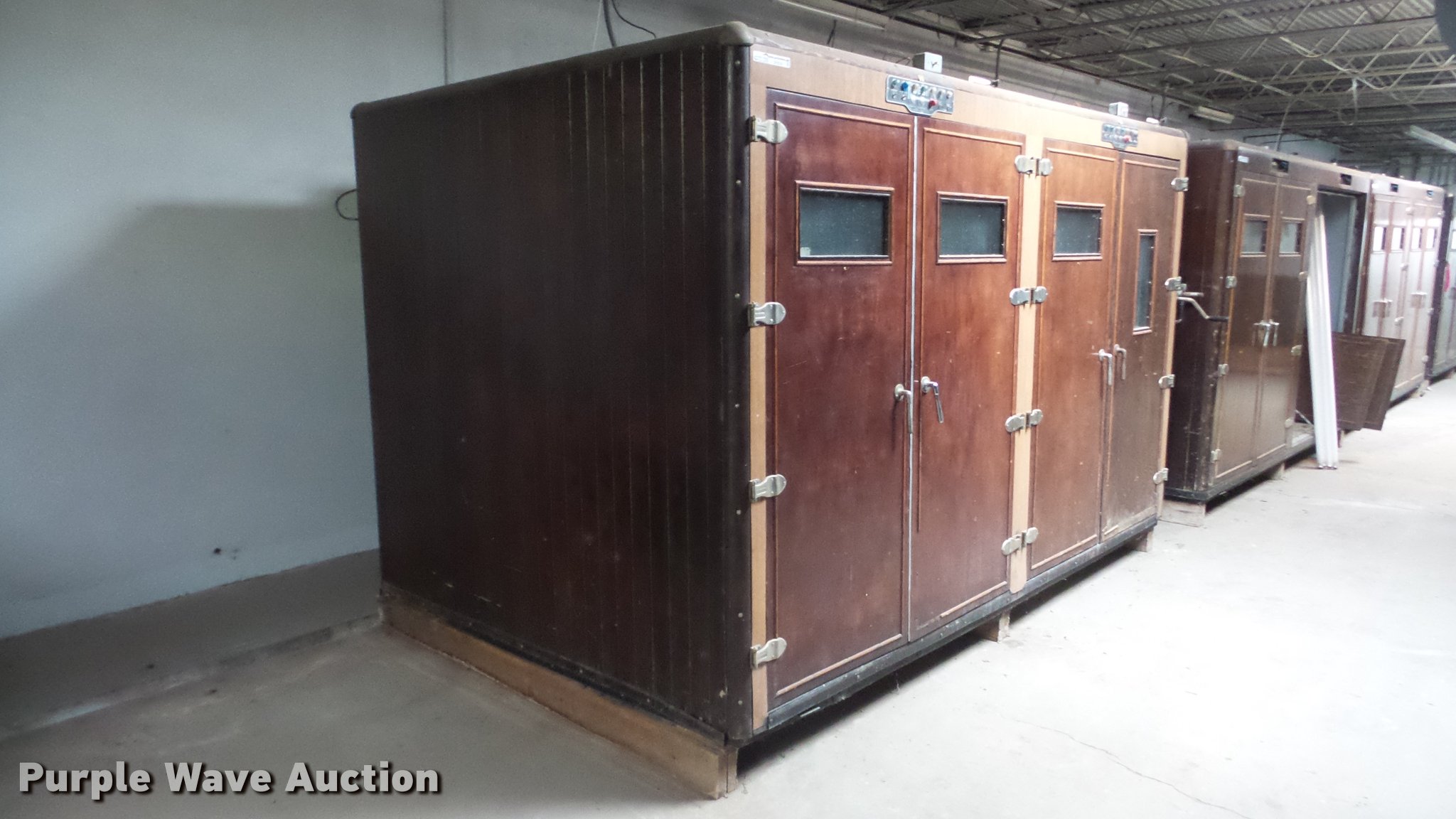 Purple Wave is selling a used Livestock Equip. in Kansas. This item is a Robbins hatchery incubator with the following: Approximately 11' x 7' x 7'H, Four door, Unknown operating condition