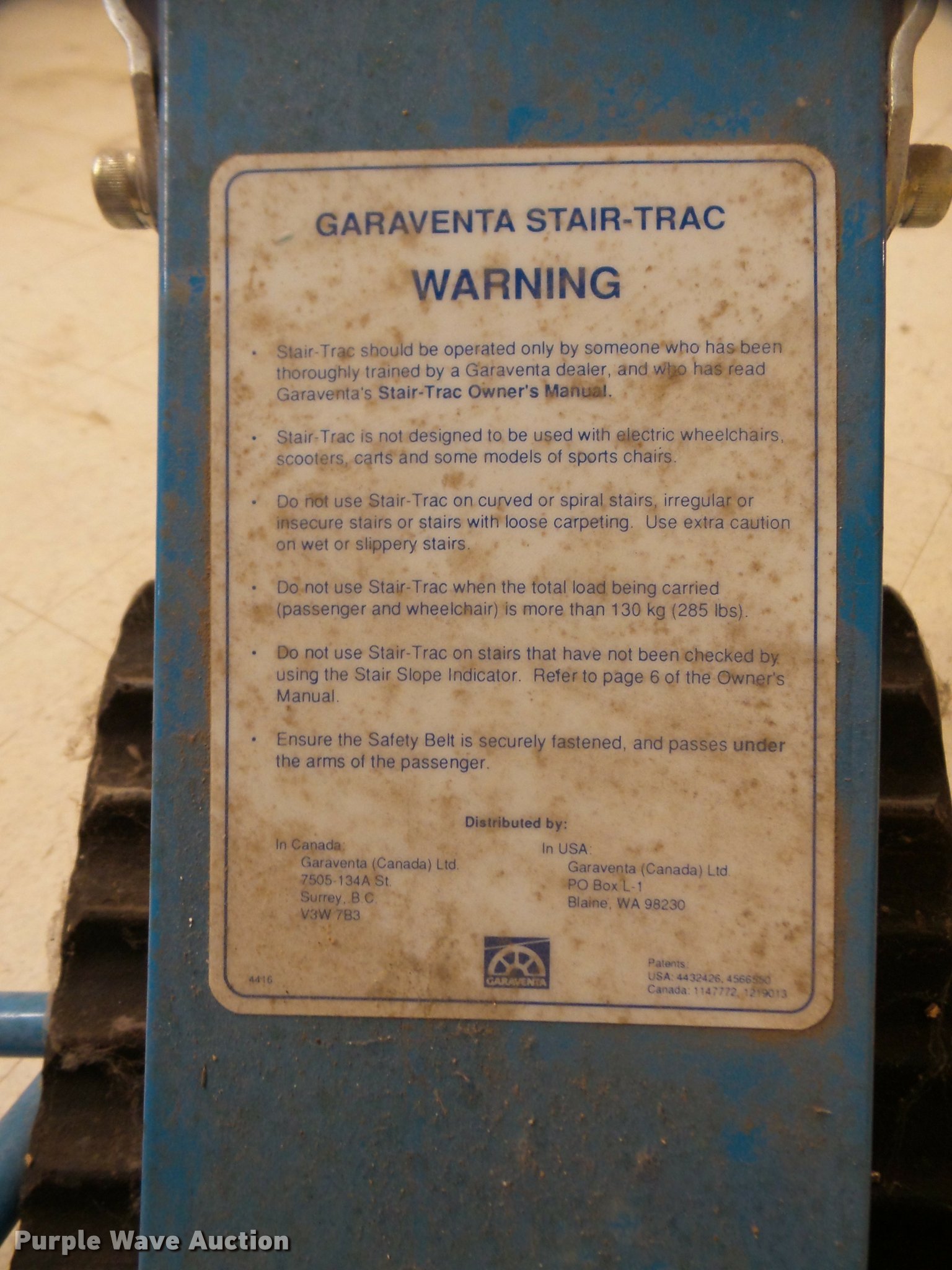 Purple Wave is selling a used Tools in Nebraska. This item is a Garaventa stair-trac with the following: 6V, 20 amp, Serial 101-04-04865