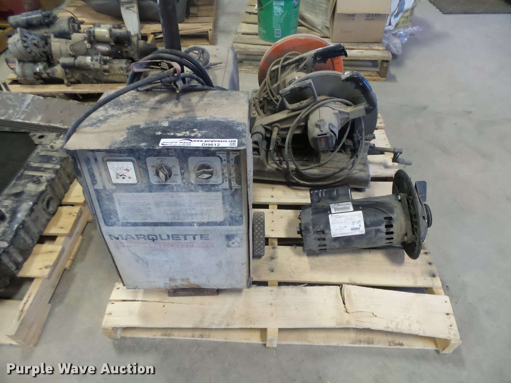 Purple Wave is selling a used Tools in Kansas. This item is a Tools with the following: (2) chop saws, Welder, Unknown operating condition, Battery charger, Unknown operating condition, Pertair pool pump