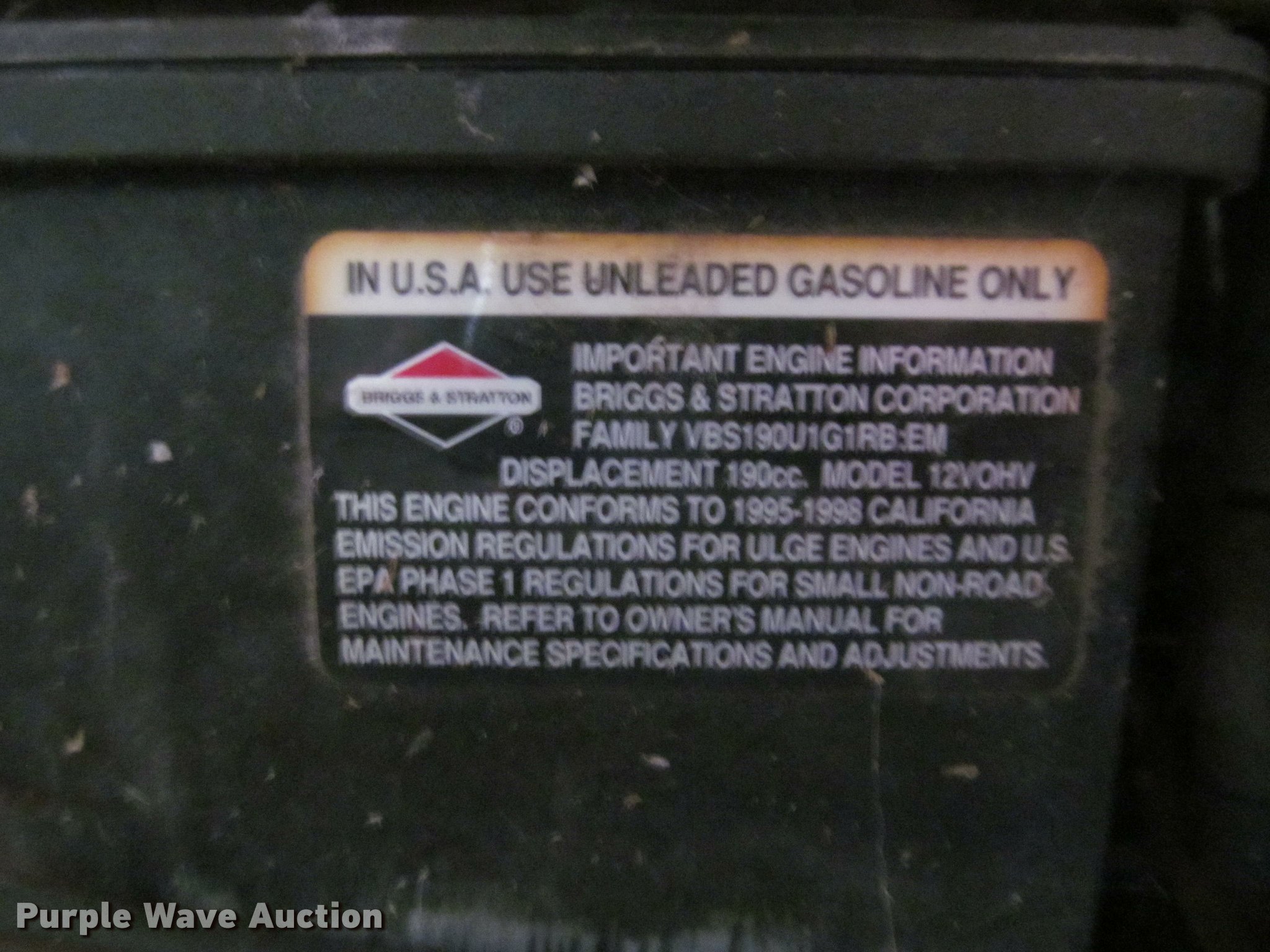 Husqvarna lawn mower. Briggs & Stratton Intek 190cc gas engine 6 HP, Family VBS190U161RB:EM, Serial 050798M001483. Community Healthcare Systems. 120 W 8th St. Onaga, KS 66521