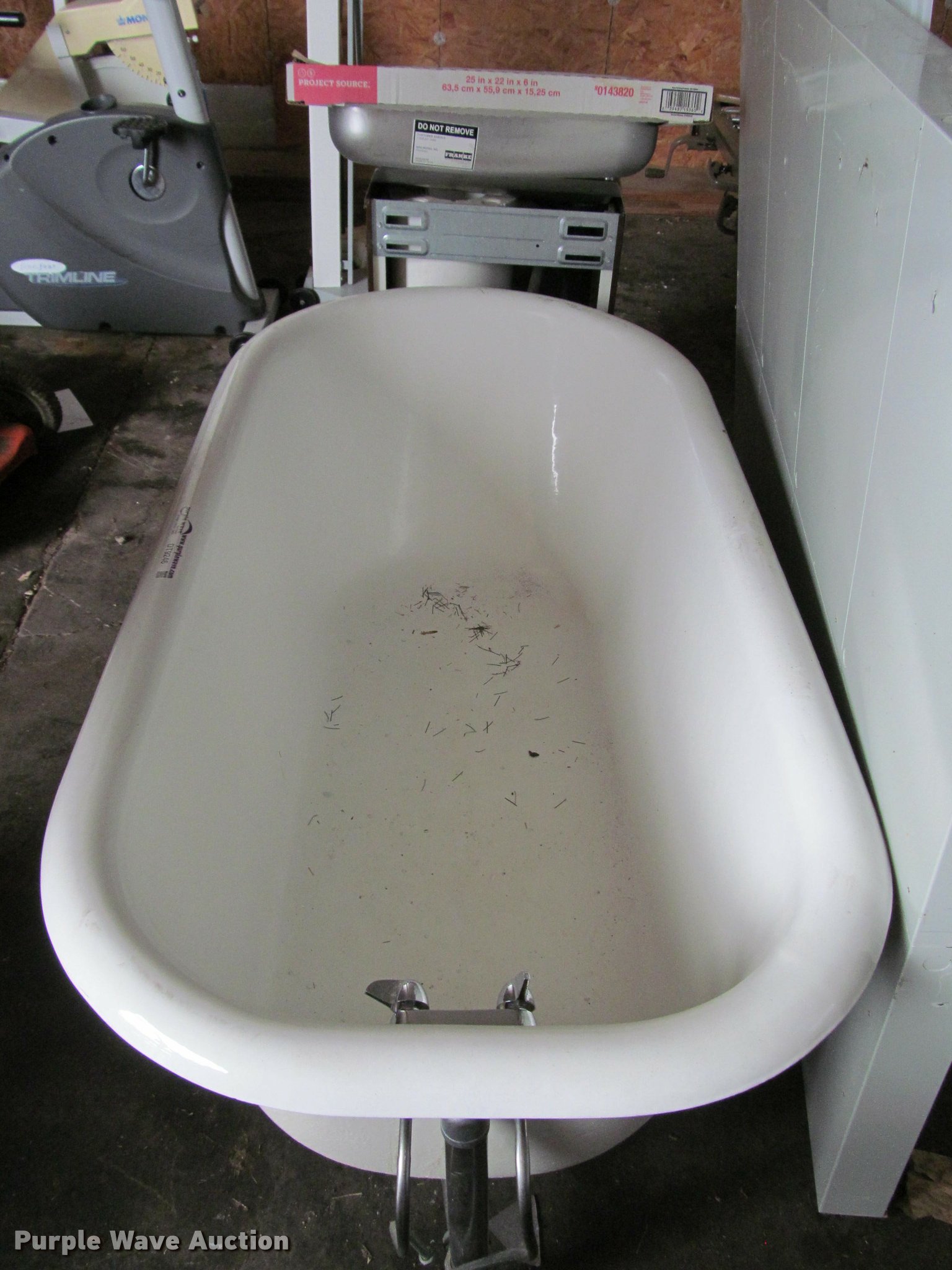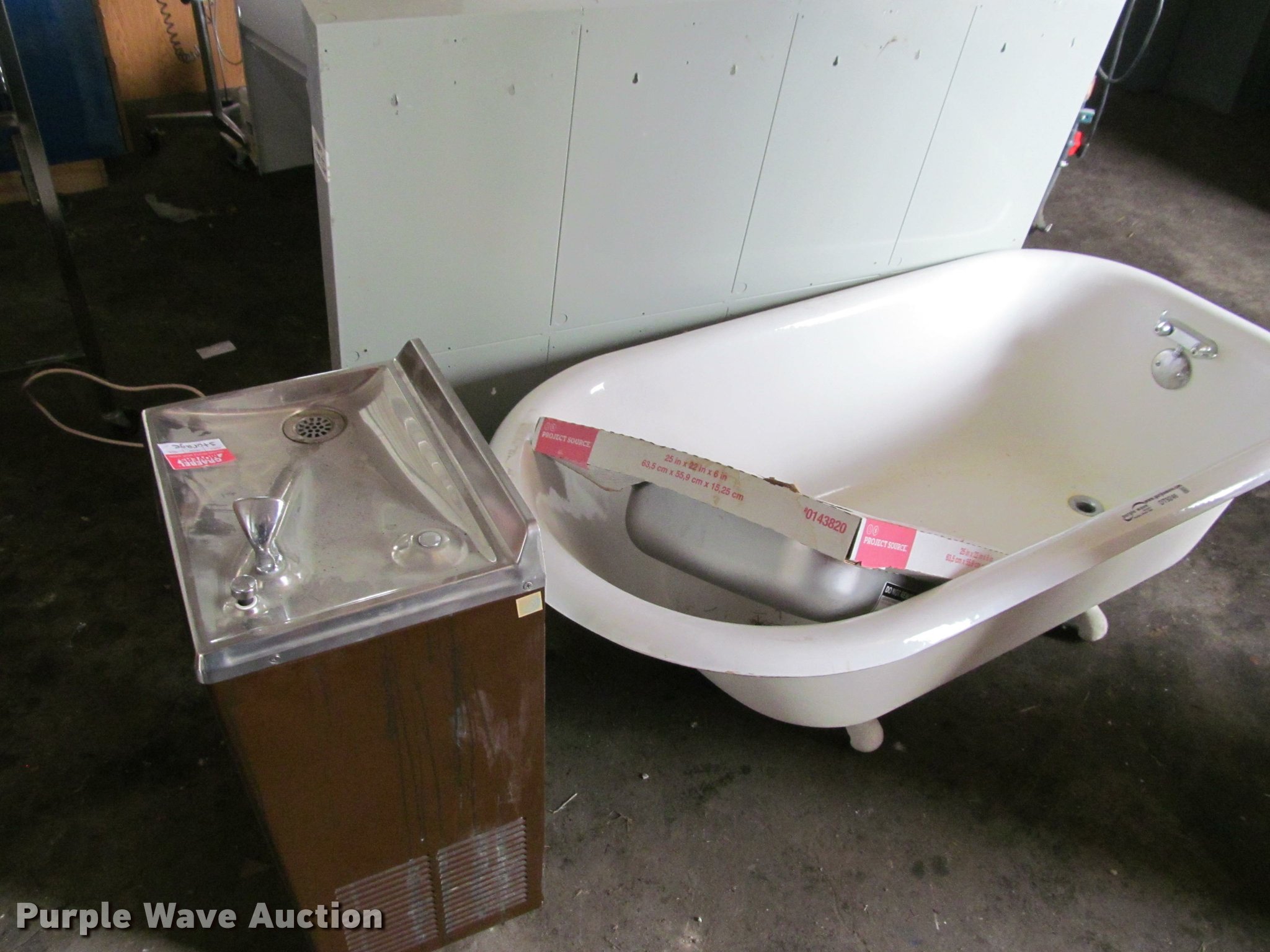 Purple Wave is selling a used Building Materials in Kansas. This item is a Building materials with the following: Bathtub, Halsey Taylor water fountain, Stainless steel sink, 25" x 22" x 6"