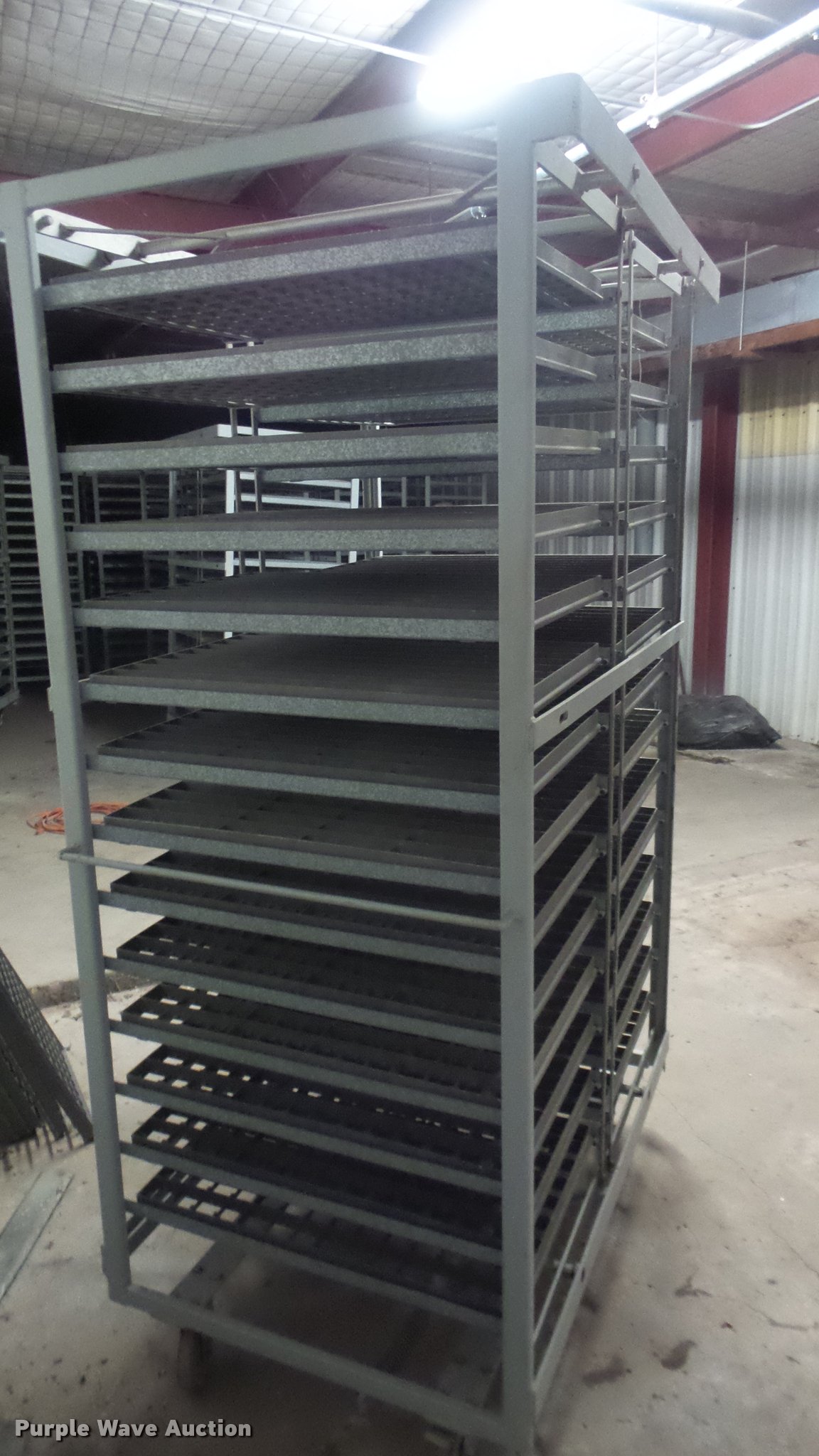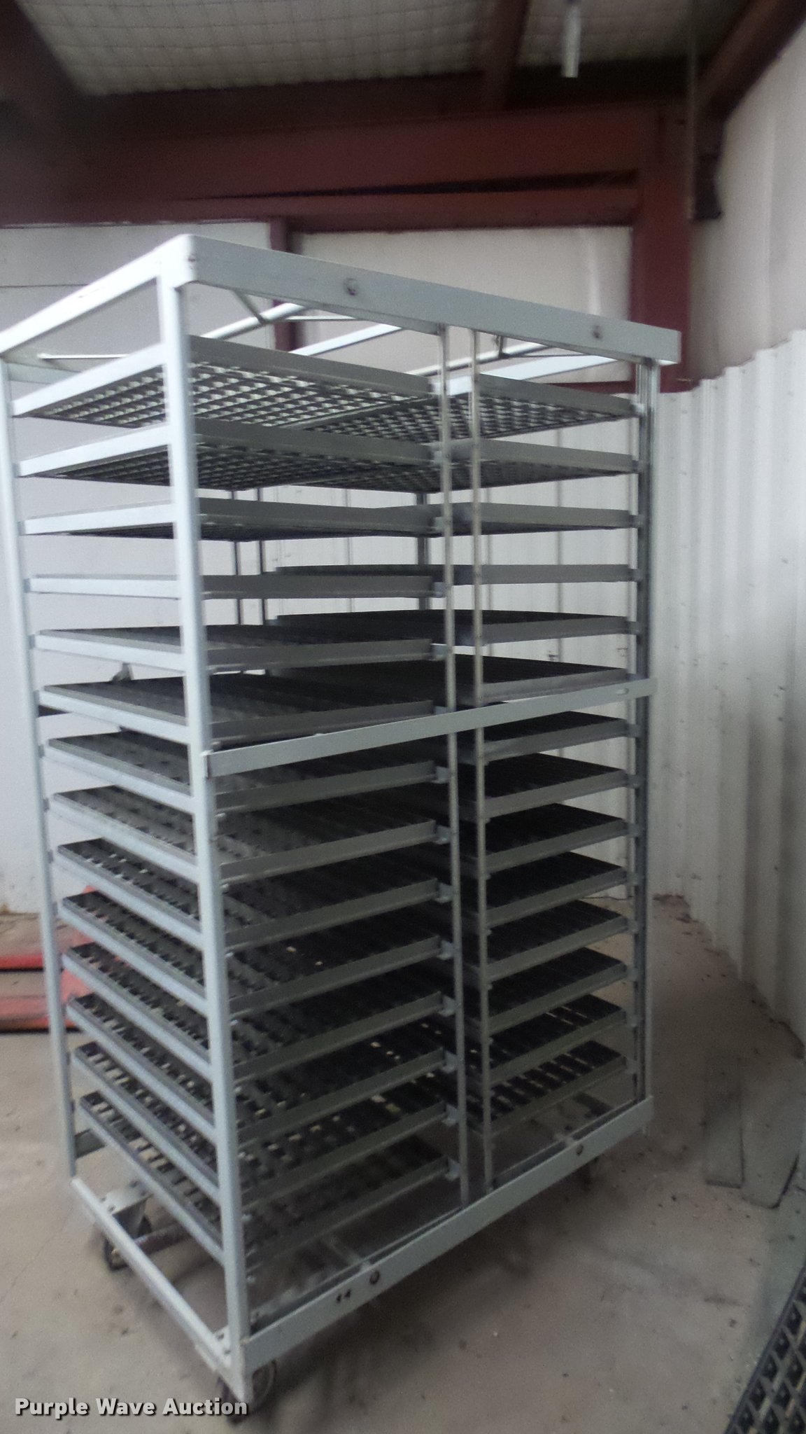 Purple Wave is selling a used Livestock Equip. in Kansas. This item is a (4) metal egg racks with the following: 32" x 46" x 82"H, Wheels