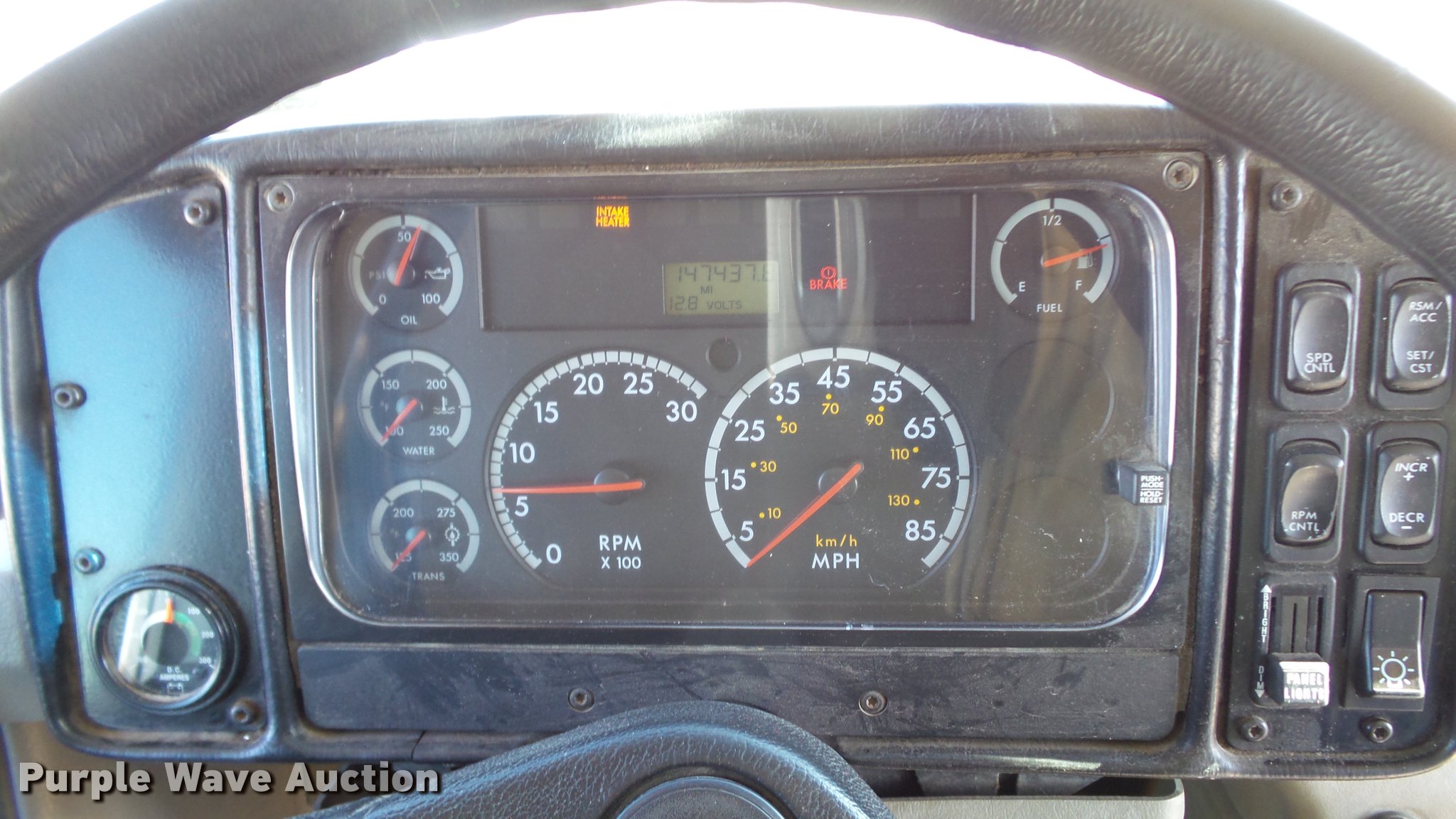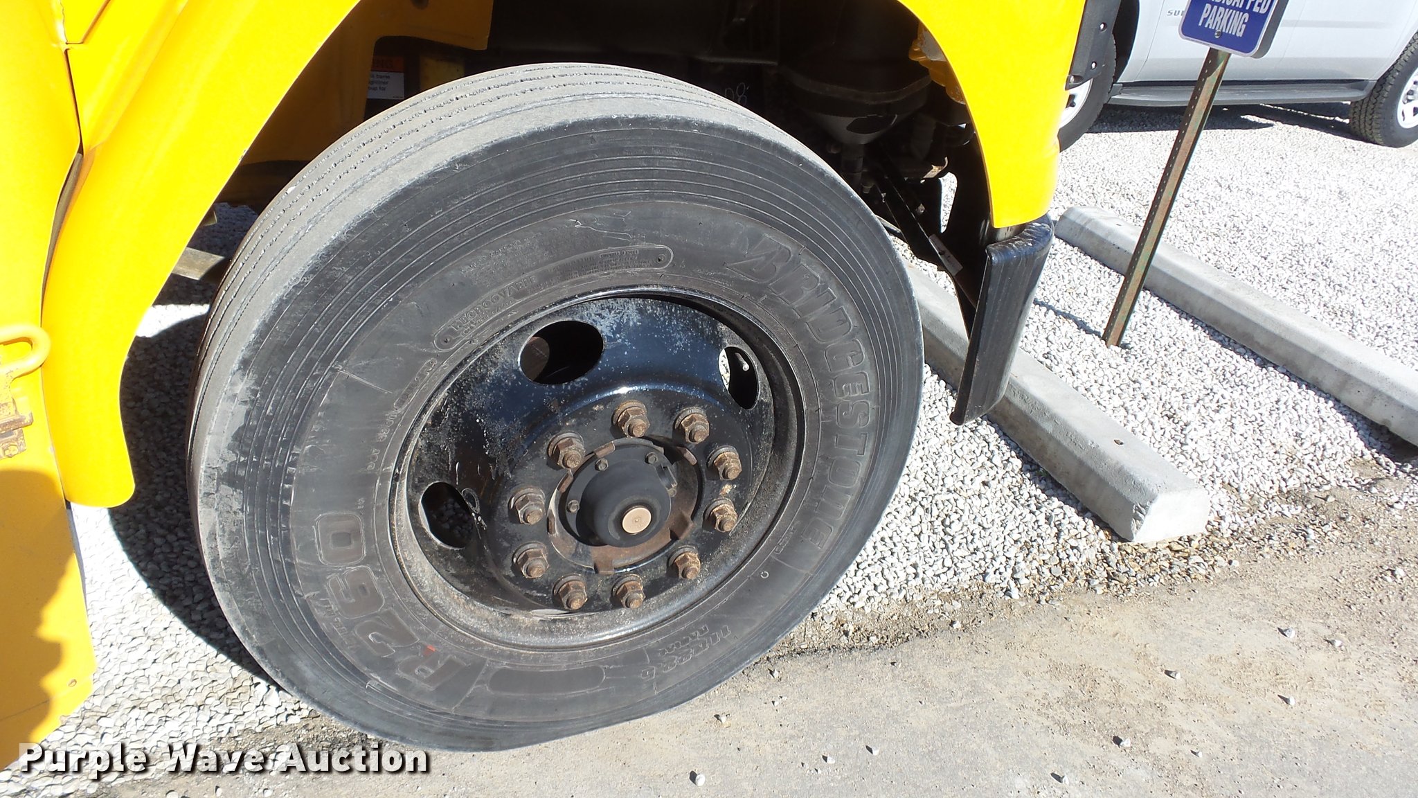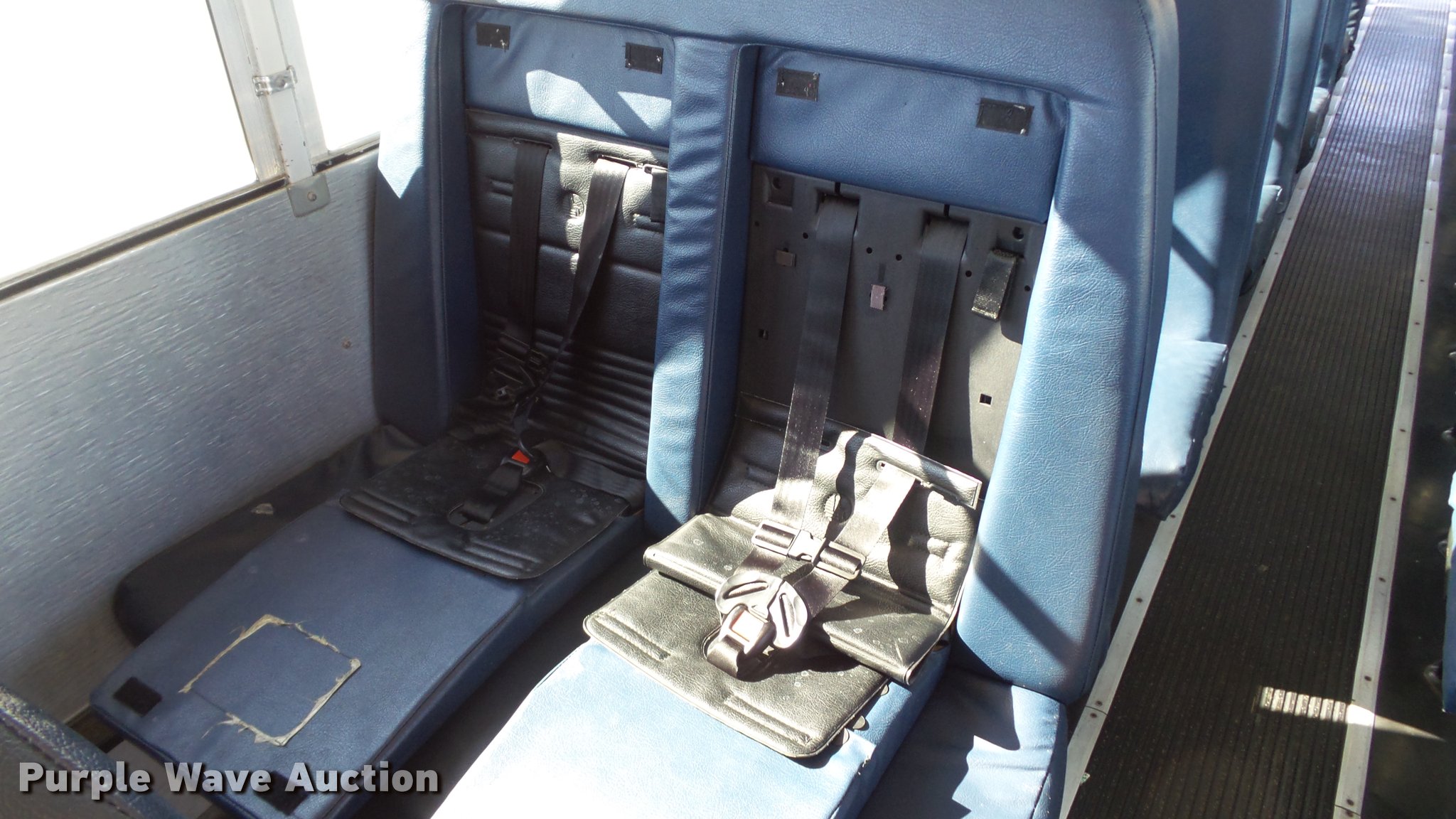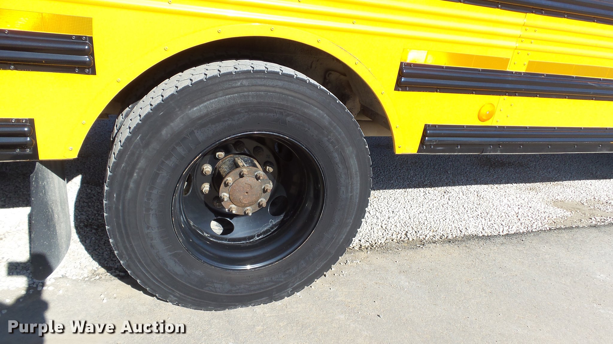 Purple Wave is selling a used Bus in Kansas. This item is a 2005 Freightliner FS65 Thomas school bus with the following: 147,437 miles on odometer, Caterpillar C7 7.2L L6 turbo diesel engine, Allison 2000 automatic transmission, Single axle, Heat, Cruise, AM/FM, Heated mirrors, Cloth drivers interior, Vinyl passenger interior, 65 passenger capacity, (2) child safety seats, Ceiling, rear, and side emergency egress, Lighted stop sign, Backup alarm, Block heater, Front and rear tow hooks, Spring suspension, Hydraulic brakes, 255" wheelbase, 11R22.5 tires, GVWR 29,999 lbs, Intake heater light on, Unit# 43-5