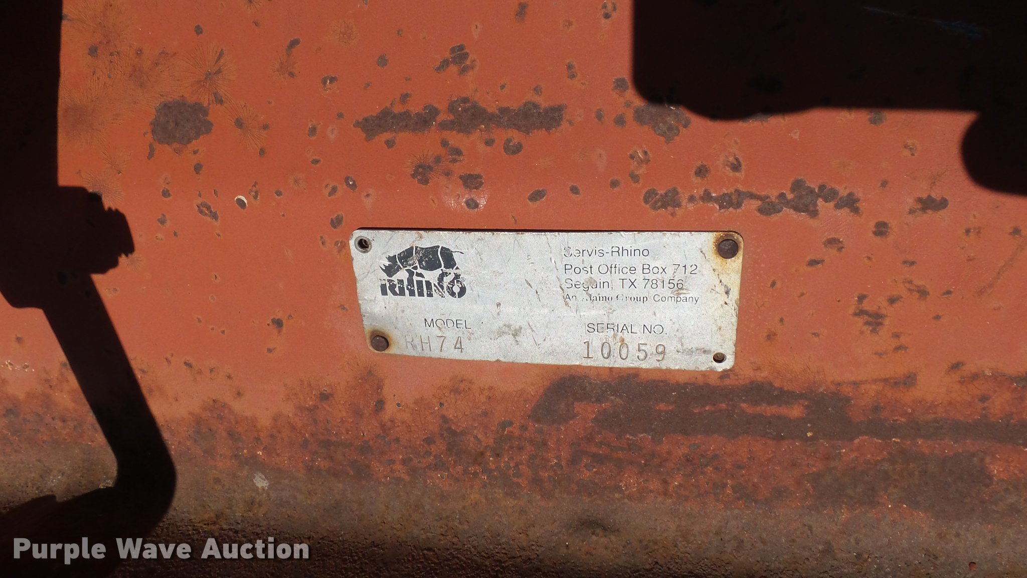 Purple Wave is selling a used Mower, Cutter, Shredder in Kansas. This item is a Rhino RH74 flail mower with the following: 79"W, 540 PTO, Three point, Serial 10059